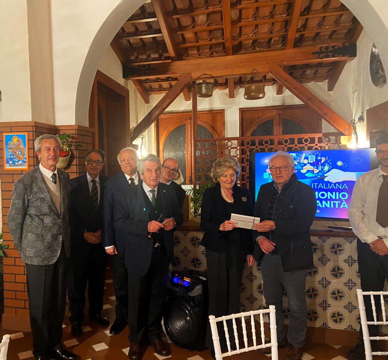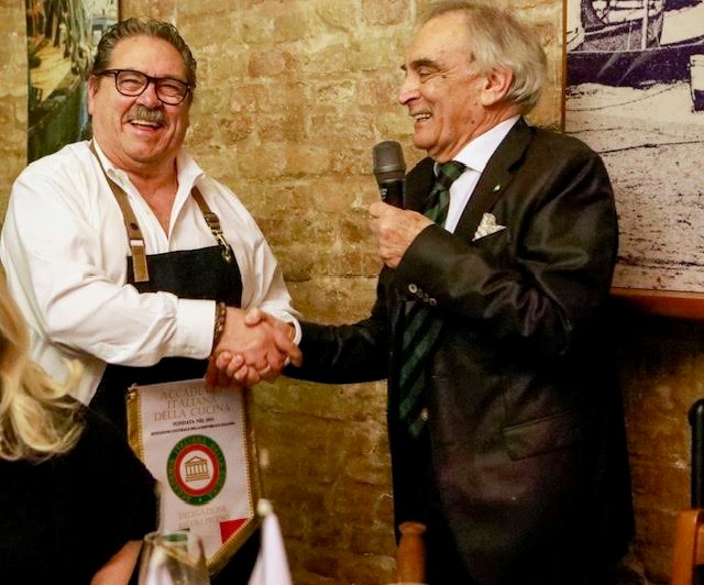 Per celebrare l’Ecumenica Straordinaria di riconoscimento della Cucina Italiana a Patrimonio Immateriale dell’Umanità, è stata scelta Villa Zucchero, una raffinata e accogliente dimora familiare, proprio per coniugare le motivazioni del tributo: saperi culinari, conviviali e sociali trasmessi di generazione in generazione su tutto il territorio nazionale, anche in ambito domestico. Il menu, attraverso ricette tradizionali trasformate dall’interazione affettuosa di diverse generazioni, è stato curato dall’Osteria Il Campanile, ristorante depositario, da oltre 40 anni, della tradizione gastronomica messinese. I piatti proposti da Mimmo Bonaccorso e dallo staff di cucina sono stati: l’antipasto rustico peloritano e il tagliere di formaggi e salumi del territorio; la pasta ‘ncaciata, il ricco timballo al forno siciliano, e le braciolette alla messinese con patate al forno. A completare la proposta, il tradizionale cannolo di ricotta, con l’iconica cialda fritta croccante e friabile farcita con crema di ricotta di pecora, e le zeppole di S. Giuseppe. Soddisfacente la proposta di un Nero d’Avola DOC Sicilia – Cantine Domina Miccina – Sambuca di Sicilia (AG). La riunione è stata aperta dall’intervento del Delegato sul significato del riconoscimento e sui passaggi che ne hanno caratterizzato il lungo iter, e dall’apprezzato videomessaggio del presidente Petroni, a cui ha fatto seguito la visione della clip di “Vai Italia”, l’inno di Mogol e Al Bano. La Consulta ha consegnato riconoscimenti e libri accademici a gestori e ristoratori.