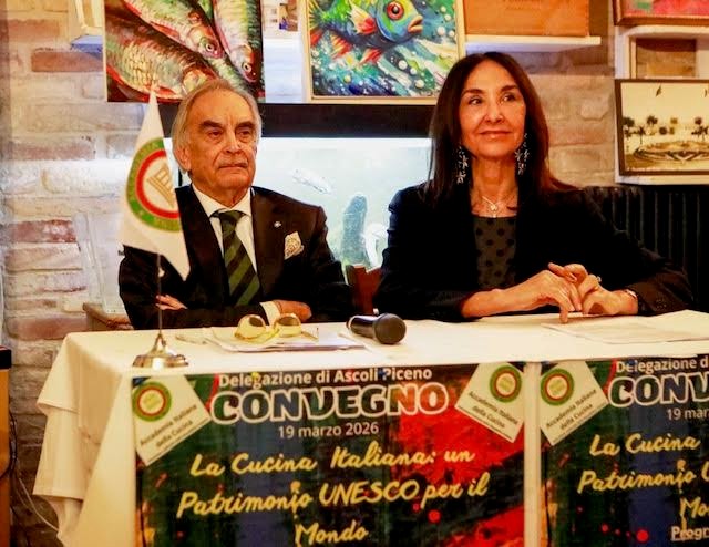 Presso l’Osteria Caserma Guelfa di San Benedetto del Tronto, la Delegazione, in collaborazione con la Simposiarca Daniela Fazzini, ha organizzato la Cena Ecumenica Straordinaria istituita dalla Presidenza per celebrare il recente riconoscimento UNESCO della cucina italiana a patrimonio immateriale dell'umanità. Il convivio è stato preceduto dal convegno “La cucina italiana: un patrimonio UNESCO per il mondo”, volto a sottolineare l’importanza di questo prestigioso risultato. Relatrice è stata la prof.ssa Donatella Ferretti, Assessore alla Pubblica Istruzione e all’Università del Comune di Ascoli Piceno. La sua relazione è stata molto apprezzata dal pubblico presente. Lo chef Federico Palestini dell’Osteria Caserma Guelfa, premiata nel 2025 dall’Accademia con il Diploma di Cucina Eccellente, ha proposto il piatto unico “brodetto alla sambenedettese”, preparazione complessa e impegnativa, particolarmente apprezzata all’unanimità dai numerosi partecipanti tra Accademici e ospiti. I vini del territorio, accuratamente selezionati, si sono rivelati ottimamente abbinati al menu. Nel corso della serata si è esibito il dott. Francesco Casagrande, che ha declamato poesie e poemetti in vernacolo sambenedettese dedicati al mare e ai marinai della pesca, riscuotendo grande interesse e partecipazione da parte del pubblico.