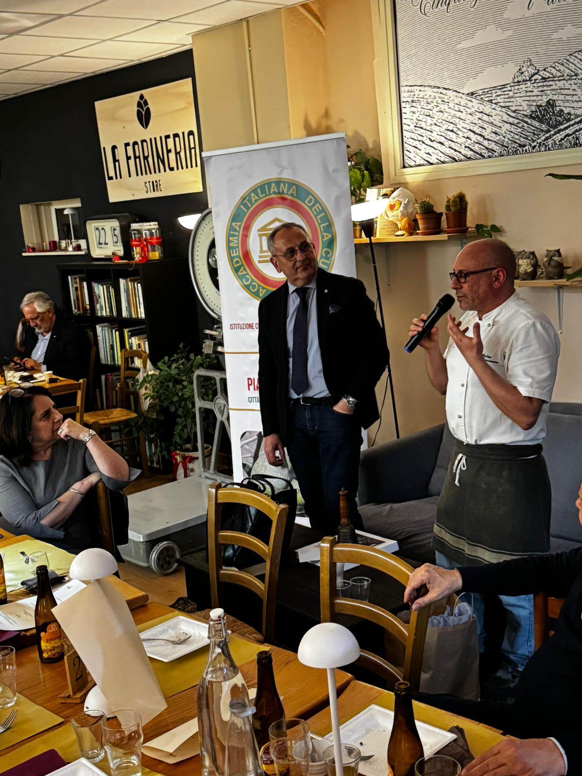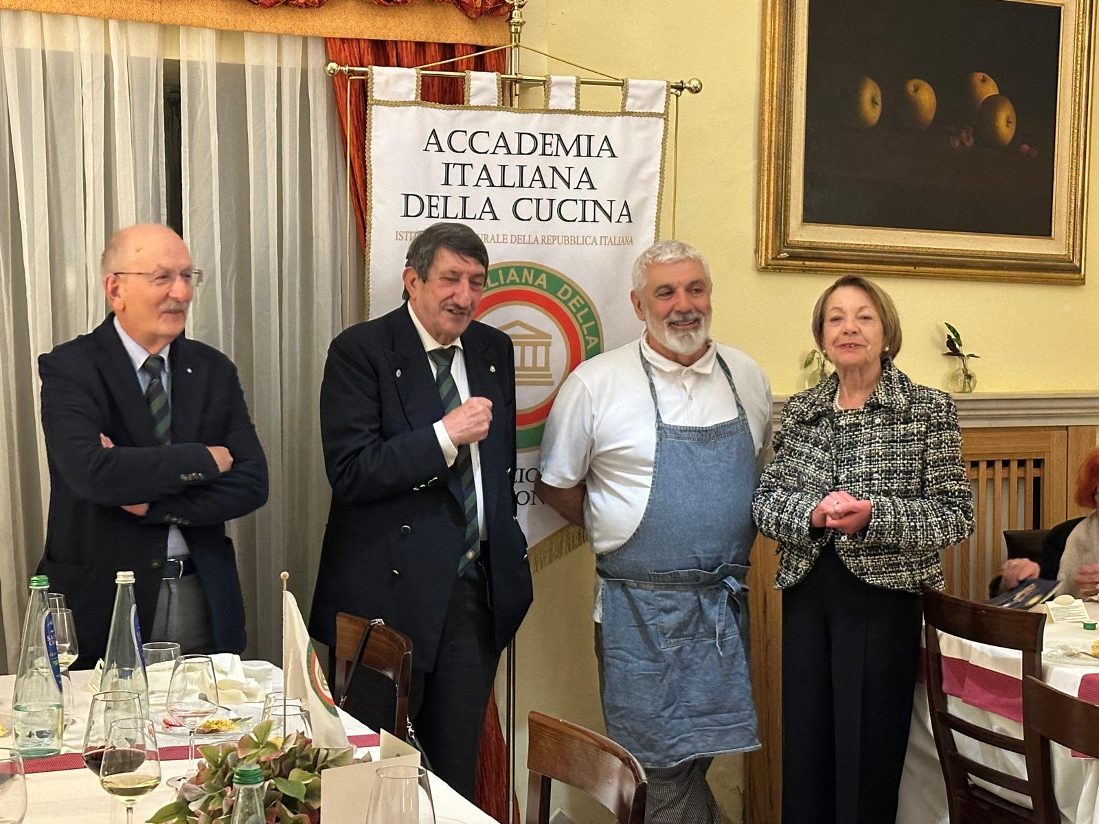 La Delegazione di Alessandria ha celebrato una conviviale ecumenica straordinaria al ristorante La Fermata per omaggiare il riconoscimento UNESCO alla cucina italiana. La serata si è aperta con il video saluto del Presidente Nazionale Paolo Petroni, seguito dalla relazione del cuoco Beppe Sardi, figura storica della ristorazione alessandrina e per oltre quarant’anni alla guida del ristorante “Il Grappolo”. Autore e divulgatore, Sardi ha illustrato con passione le eccellenze gastronomiche della provincia, soffermandosi sulle tipicità e sulle recenti De.Co. A guidare e accompagnare con equilibrio e piacevolezza i diversi momenti della serata è stato Matteo Pastorino, Delegato di Alessandria, che ha saputo condurre gli interventi creando un filo narrativo coinvolgente e armonioso. Il convivio è proseguito con un menu interpretato dallo chef Riccardo Aiachino, che ha valorizzato piatti della tradizione: capunet, ravioli alessandrini dal ripieno autentico e faraona ripiena. In chiusura, la polenta di Marengo, dessert identitario poco conosciuto. Ampio spazio è stato dedicato al riconoscimento UNESCO, frutto anche dell’impegno dell’Accademia Italiana della Cucina, tra i promotori della candidatura, traguardo che rappresenta un onore e uno stimolo a proseguire nella tutela e valorizzazione della tradizione gastronomica italiana.