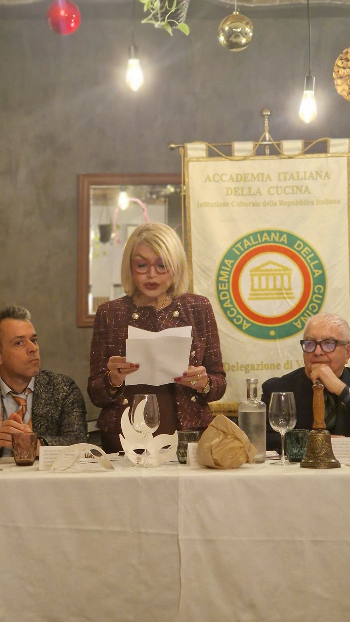 La Delegazione vastese si è riunita al ristorante Il Posticino di Vasto per celebrare la Conviviale regionale sul tema “Le tradizioni del Carnevale in Abruzzo”, condivisa in contemporanea con le nove Delegazioni abruzzesi per unire convivialità, ricerca storica e valorizzazione del patrimonio locale. Ogni Delegazione ha proposto un menu ispirato ai piatti tipici della festa, storicamente legata a riti di abbondanza prima del rigore quaresimale. Simposiarca della serata Anna Roselli, che ha illustrato il menu in continuità con la relazione introduttiva di Antonella Marrollo su “Le tradizioni del Carnevale nel territorio vastese”. Nel suo intervento, Marrollo ha evidenziato che il Carnevale vastese non è un insieme di ricette ma un sistema culturale legato a stagioni, comunità, attesa e rinuncia; ricordare queste pietanze significa riconoscerle come parte dell’identità e del patrimonio gastronomico. Nel Vastese si mangiava di più per rito, non per gola, e riproporre oggi quei piatti vuol dire conservarne la memoria e il valore culturale. Il Delegato Adri Cesaroni ha sottolineato che celebrare il Carnevale è un omaggio alle radici agrarie e sociali del territorio e che custodire queste tradizioni consente di mantenere vivo il legame con la storia, evitando che vadano perdute.