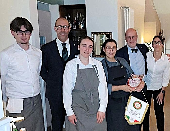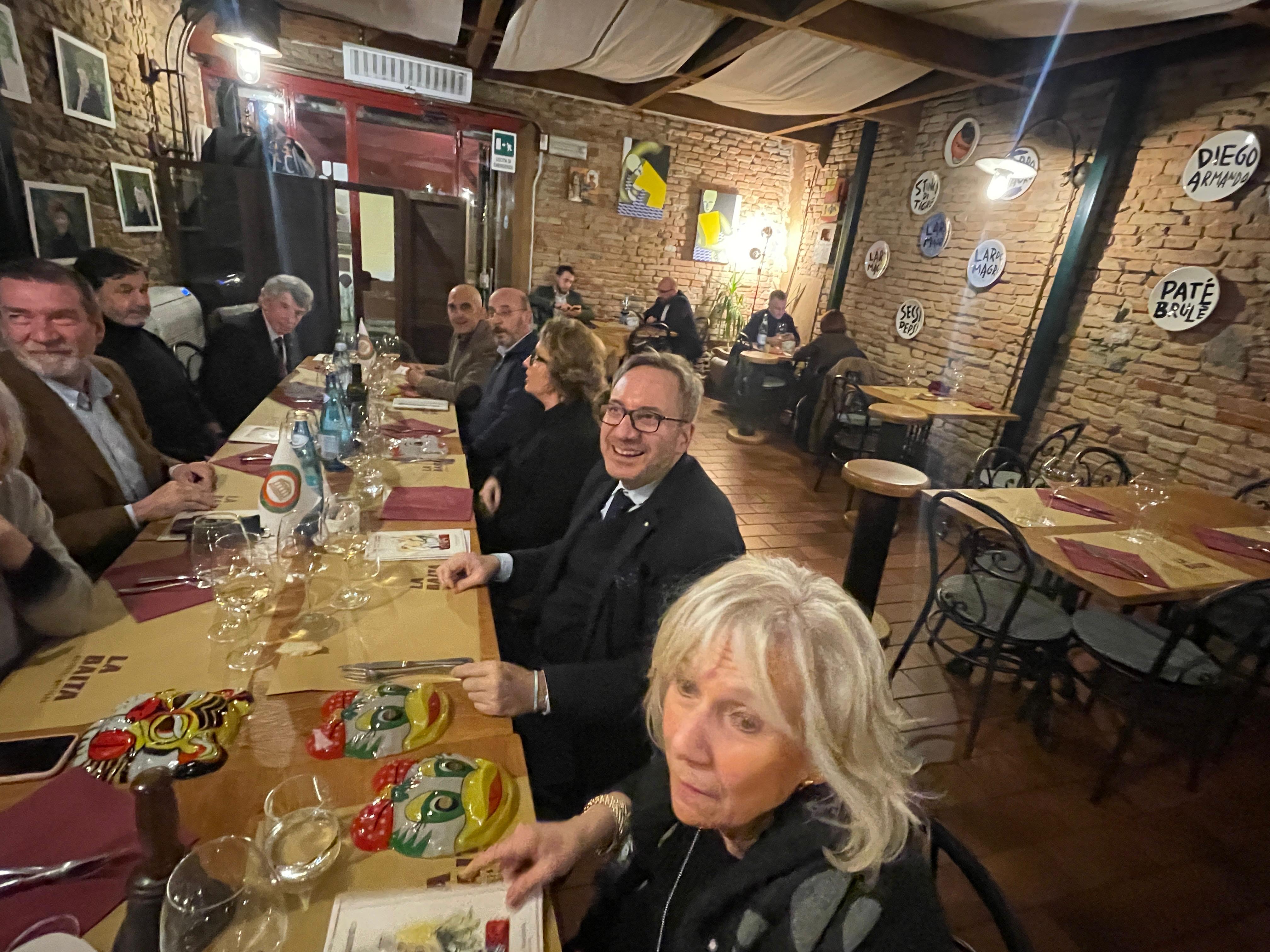 La Delegazione è tornata, dopo qualche anno, all’Osteria La Baita con una serata di fine carnevale straordinaria che ha visto il meglio della tradizione gastronomica unita all’arte dei piatti presentati e ben abbinati ai vini. L’Osteria ha ottenuto prestigiosi riconoscimenti di settore. Serata molto piacevole grazie alla compagnia di tutti gli Accademici in un’atmosfera di vivace convivialità resa più scenografica dalle maschere carnevalesche che abbellivano la tavola. Sempre una sorpresa il menu realizzato dall’Accademico Giovanni Collina, con impiego e adattamento della propria collezione che in questo contesto ha presentato un menu del 1° maggio 1972 estremamente scenografico. Positiva valutazione dei piatti, della location e del servizio molto attento e curato. Durante la serata sono state consegnate al ristorante le pubblicazioni "Le ricette della nostra infanzia", curate da Leonardo Colafiglio e Giovanni Collina, e "A tavola, storia di un cartoncino", sempre a cura di Giovanni Collina. Con i ringraziamenti di tutti e delle Simposiarche Raffaella Visani e Romana Selli, è stato consegnato alla brigata di cucina il guidoncino della Delegazione.