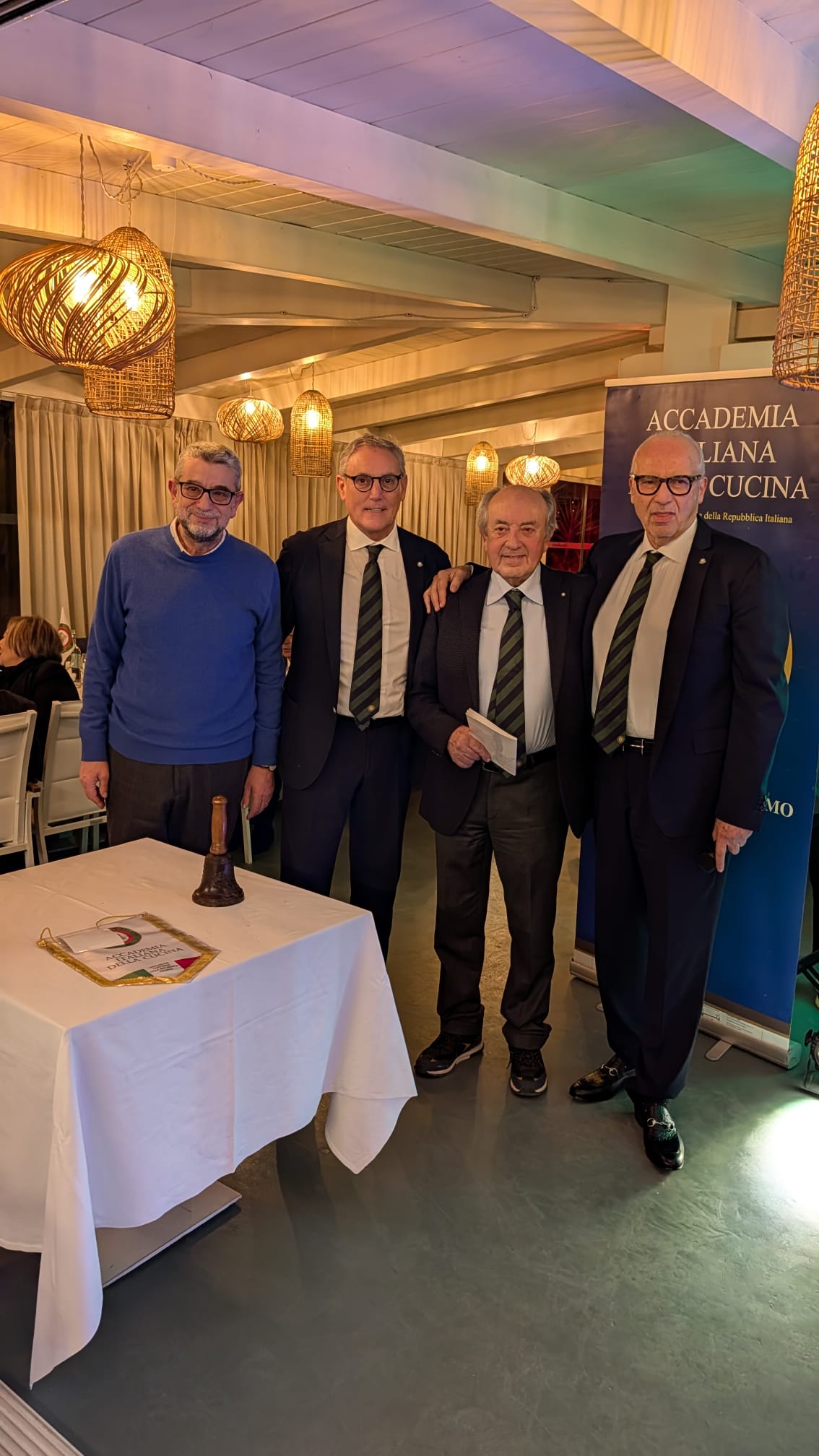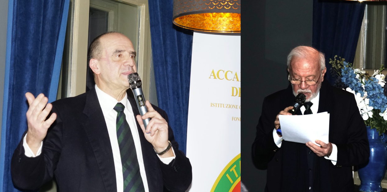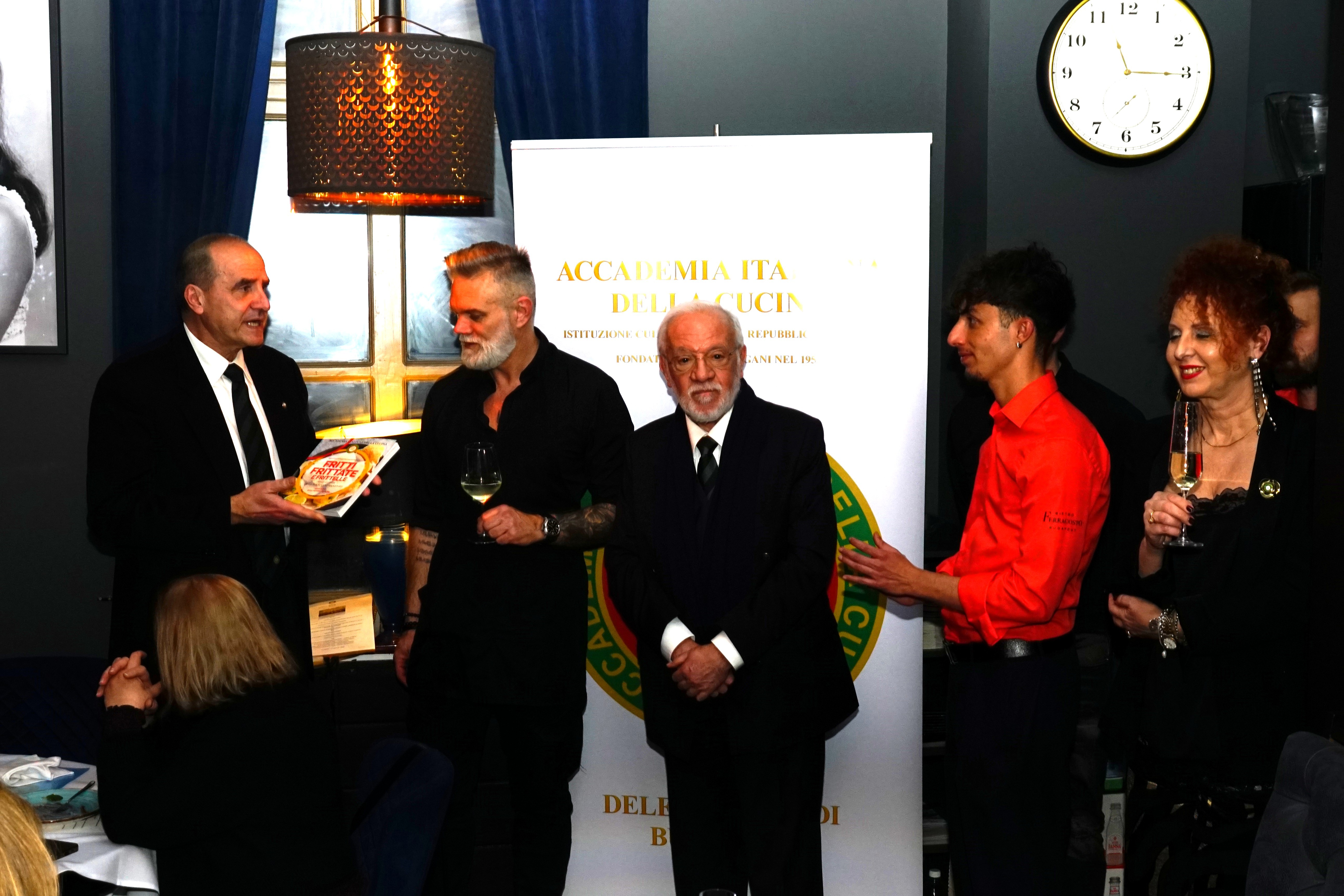 La riunione conviviale per la consegna dei Premi 2025 si è svolta presso il Blue Canada Israel a Tel Aviv, alla presenza dell’Ambasciatore d’Italia in Israele, S.E. Luca Ferrari, dei principali membri dell’Ambasciata e di numerose personalità della vita culturale locale, oltre a quasi tutti gli Accademici. I destinatari del Premio Massimo Alberini (2025) sono stati il pasticcere Davide Dorbini, con la pasticceria "Casa Tua", e il vivaio/orto "Ale’ ad Habaita" di Yuval e Gidon Hellman, per la produzione unica in Israele di verdure italiane. Durante la serata è stato fatto un brindisi per celebrare il riconoscimento UNESCO della cucina italiana come patrimonio immateriale dell’umanità, con interventi della Delegata Cinzia Klein e dell’Ambasciatore S.E. Luca Ferrari. L’Accademico Roberto Della Rocca ha presentato un breve simposio sulle verdure nella cucina italiana. Il cibo della serata, molto apprezzato, è stato preparato dalla chef Totem Fadlun, proprietaria del catering "Momenti" di Tel Aviv. Di particolare rilievo il dolce di Dorbini: un “cornettone” di 70 cm ripieno di panna montata e frutti di bosco.