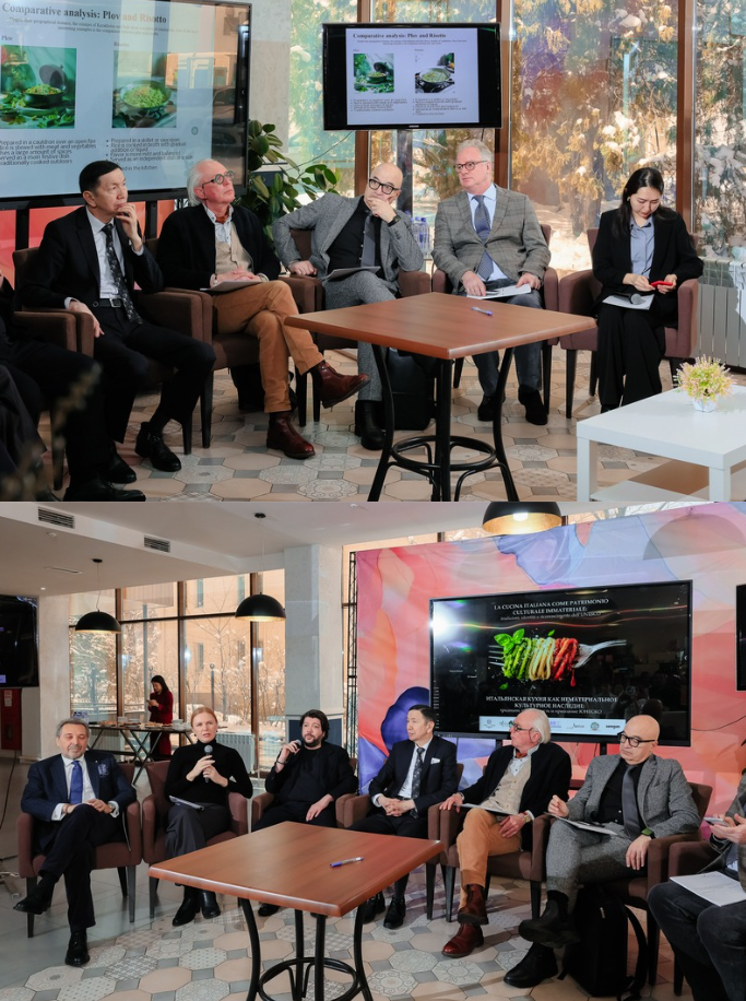 Presso l’Almaty Technological University (ATU) si è svolto un forum dedicato al riconoscimento della Cucina Italiana come Patrimonio Culturale Immateriale UNESCO, organizzato dall’Ambasciata d’Italia in Kazakhstan tramite l’Istituto Italiano di Cultura, con la partecipazione dell'AIC-Legazione di Almaty. L’evento ha riunito studenti, accademici e rappresentanti istituzionali, inserendosi nelle celebrazioni internazionali successive al riconoscimento. Ad aprire i lavori è stato Philippe Delanghe, Central Asia Regional Cultural Director UNESCO, che ha evidenziato l’importanza della tutela del patrimonio immateriale per salvaguardare l’identità culturale e favorire il dialogo tra i popoli. Gli studenti dell’ATU hanno presentato ricerche sugli scambi agroalimentari tra Italia e Kazakhstan, evidenziando la crescente interconnessione tra i due Paesi. Maurizio Aronica, Legato AIC e Presidente della Foundation for United Nations Sustainable Development Goals, ha sottolineato che la cucina italiana è un sistema di valori fondato su convivialità, territorio e trasmissione del sapere. L’Accademico Edoardo Crisafulli, Direttore dell’Istituto Italiano di Cultura, ha ricordato il ruolo della Fondazione Casa Artusi tra i promotori della candidatura UNESCO, insieme all’Accademia. In chiusura, il Viceambasciatore Petito ha ringraziato l’ATU per l’ospitalità e i relatori per il contributo. La giornata si è conclusa con la conviviale dell’Accademia al ristorante Bella Ciao per celebrare il riconoscimento, in un clima di autentica convivialità.