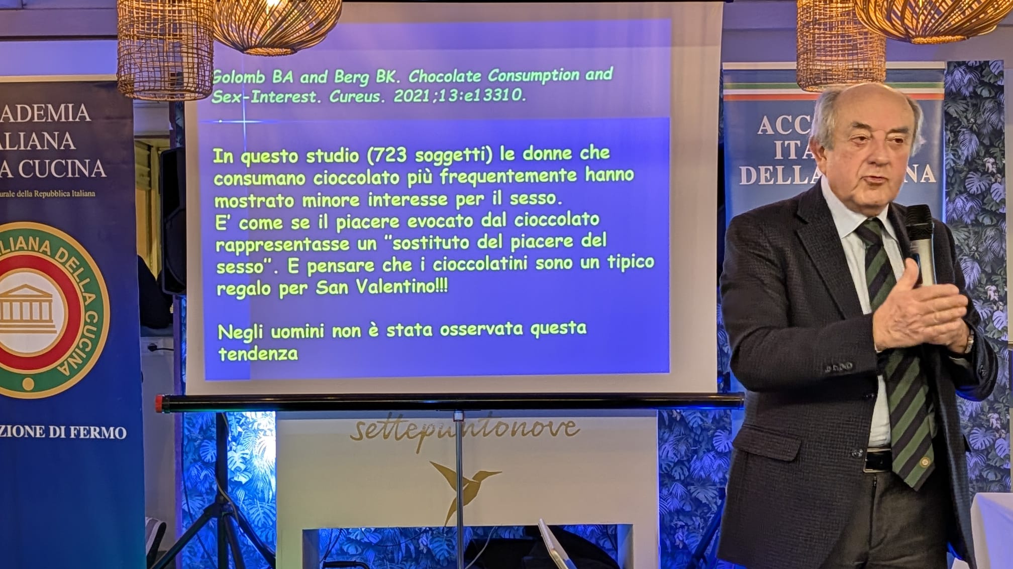 Partecipatissimo l’appuntamento del 14 febbraio presso lo Chalet Settepuntonove di Porto San Giorgio, che ha riunito le Delegazioni di Ancona e Fermo per celebrare San Valentino e il Carnevale. Simposiarche la Consultrice Adriana Botticelli e l’Accademica Stefania Budassi, che hanno ideato una serata molto apprezzata. Dopo il saluto dei Delegati Sandro Marani e Fabio Torresi e il tocco della campana, è stato servito un menu di pesce, concluso con le tradizionali fritture carnevalesche. Relatore l’Accademico maceratese Maurizio Massi, che ha intrattenuto i convenuti sui cibi afrodisiaci, tema ripreso nell’illustrazione del menu da parte dell’Accademica Stefania Budassi. Gradita la presenza del Delegato di Macerata Pierpaolo Simonelli Paccacerqua e signora. Una serata conviviale e partecipata conclusasi nel segno dell’amicizia accademica.
