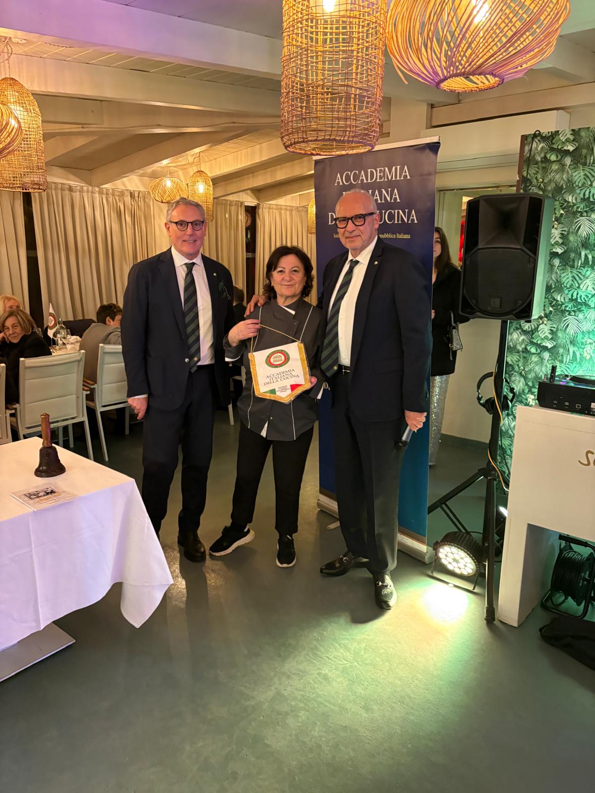 La Delegazione ha avviato gli appuntamenti 2026 visitando un ristorante specializzato nella cucina di pesce, guidato da una giovane imprenditrice, tesoriera dell’Associazione Provinciale Cuochi e Pasticceri di Messina: Carlotta Andreacchio, lady chef e patron de “La Trattoria del Marinaio” di Galati Marina, insignita nel 2025 dell’Arcimboldo d’Oro. Gli Accademici hanno verificato il menu degustazione elaborato, composto da 14 antipasti di mare crudi e cotti, calamarata dolcemare, risotto burrata e gamberi e gelato alla malvasia delle Lipari con crumble agli agrumi del maestro gelatiere Giuseppe Arena. Fondata nel 2013, la trattoria è divenuta un punto di riferimento per la ristorazione a base di pesce e, con il passaggio dell’attività dal padre nelle mani della figlia Carlotta, sono stati rinnovati i locali mantenendo un saldo legame con la memoria. Nel luglio 2020, l’offerta si è arricchita di piatti contemporanei e di una apprezzata cantina. In cucina, le regole sono quelle dettate dalla natura e dagli umori del mare, rispettando l’andamento delle stagioni, rimodulando il menu per far conoscere e apprezzare la varietà del patrimonio ittico dell’Isola e raccontare il territorio. Una suggestione che ha convinto gli Accademici, espressisi con una lusinghiera votazione anche per il servizio di sala, poi certificata dalla consegna del guidoncino, della vetrofania e di un libro dell’Accademia.