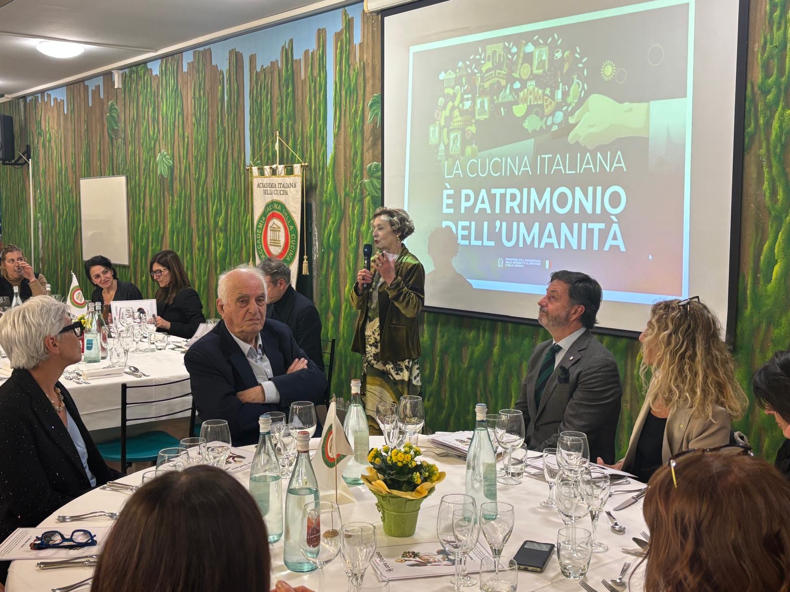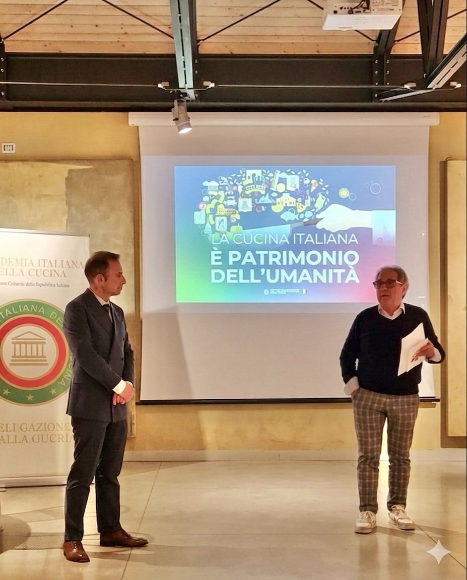 La prestigiosa sede della Società Letteraria di Verona ha ospitato la Delegazione di Verona per un incontro dedicato al riconoscimento della Cucina Italiana quale Patrimonio Culturale Immateriale dell’Umanità dell’UNESCO. Un traguardo storico che celebra un modello culturale basato su convivialità, stagionalità, sostenibilità, rispetto della biodiversità e trasmissione dei saperi tra generazioni. L’Italia, unica al mondo, ottiene il riconoscimento per l’intera cucina, valorizzando il ruolo identitario del cibo e del pasto. Ospite e relatore il Sottosegretario alla Cultura con delega UNESCO, On. Gianmarco Mazzi. Al tavolo dei lavori Daniela Brunelli, Presidente della Società Letteraria di Verona, Fabrizio Farinati, Coordinatore Territoriale del Veneto e Delegato di Verona, e Beppe Menegardi, Presidente del Club per l’UNESCO di Verona. Brunelli e Farinati hanno sottolineato la competenza e la determinazione con cui il Sottosegretario Mazzi ha sostenuto la candidatura italiana, che gli è valsa l’assegnazione del premio Orio Vergani 2025 dell’Accademia. L’on. Mazzi ha ricordato il rapporto di collaborazione con il Presidente Paolo Petroni e il valore del riconoscimento, unico accettato durante il suo incarico. Tra le autorità presenti anche l’associazione “Bottega dei Talenti Caterina e Francesca”, rappresentata da Sergio Santin, a cui è stata devoluta la somma in denaro del premio. Il successo della manifestazione conferma che quanto l’Accademia Italiana della Cucina promuove da oltre settant’anni è la giusta strada verso il rafforzamento della nostra cultura gastronomica e della nostra vita sociale.