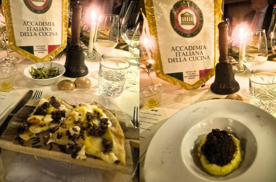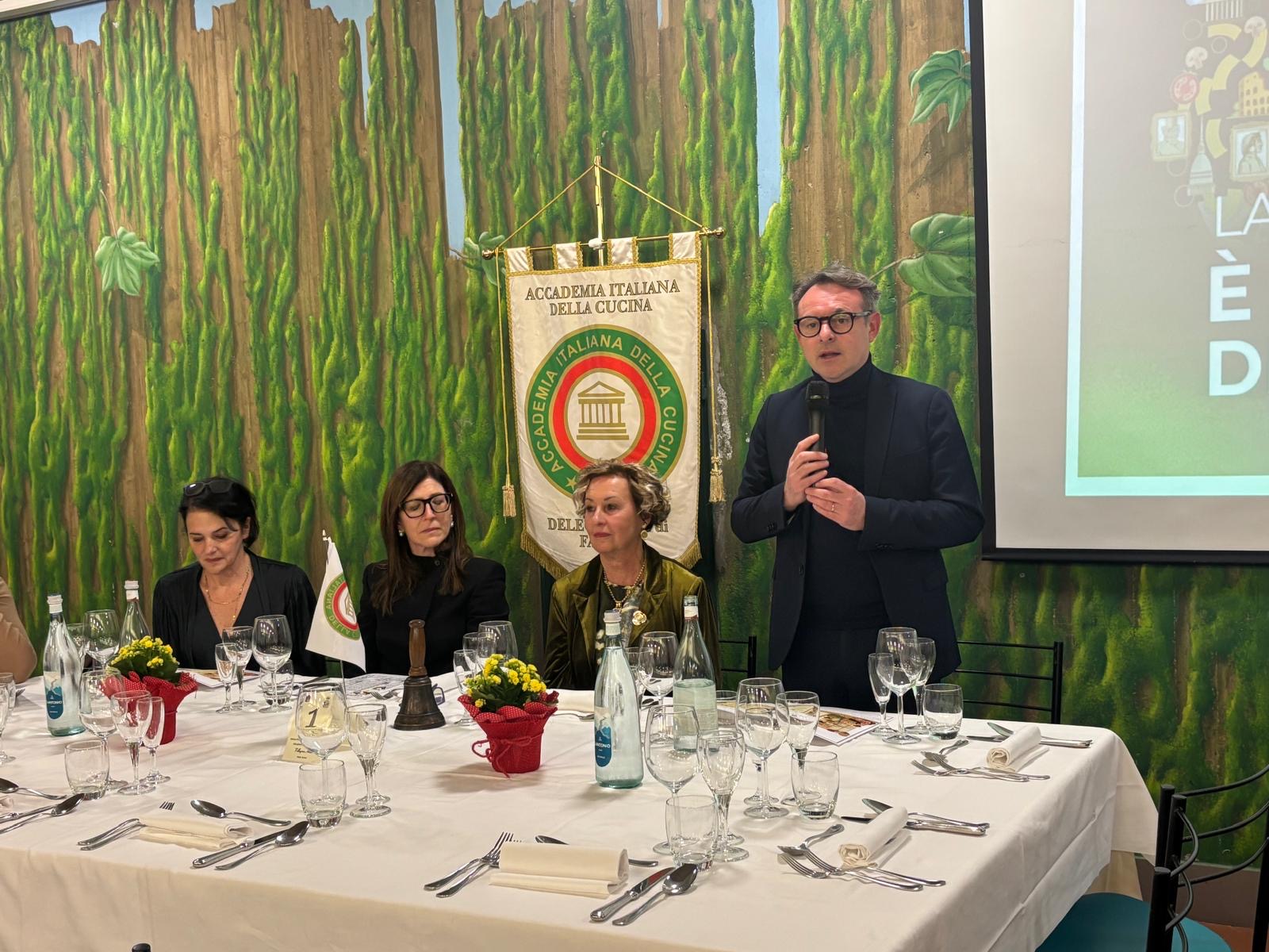 La Delegazione Valdarno Fiorentino ha organizzato la Conviviale Ecumenica Straordinaria nel locale Casa MeMà di Figline Valdarno per onorare l’importante riconoscimento ottenuto dalla cucina italiana quale bene immateriale dell’Unesco. È stato motivo di orgoglio per gli Accademici condividere un menù originale e creativo, ispirato alla tradizione del territorio e alle ricette dei nonni, realizzato con ingredienti tipici a km 0. Le pietanze hanno saputo armonizzare la tradizione toscana e quella campana, con proposte quali polpette di lesso di bistecca rifatto con le cipolle, pizza di grani antichi con formaggio acido, patate e bardiccio, e peposo all’Imprunetina su crema di patate del Pratomagno. Il tutto è stato accompagnato da vini prodotti con metodi antichi, tramandati da esperti enologi della zona. La serata ha inoltre offerto l’occasione per approfondire gli aspetti più significativi legati al raggiungimento di questo primato e per ribadire l’entusiasmo e l’impegno degli Accademici nel mantenerne alto il nome e il prestigio.