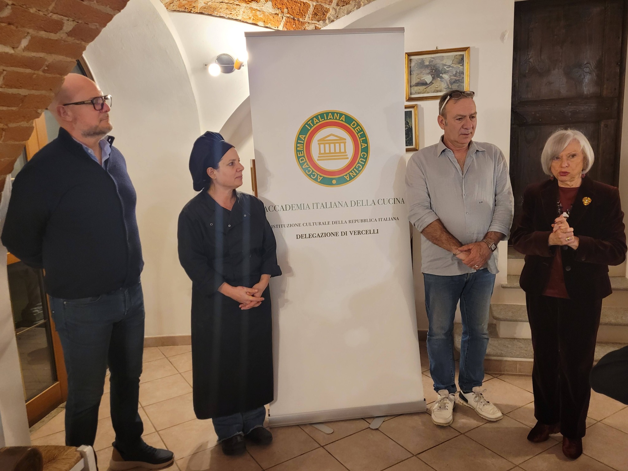 Il convivio di Carnevale della Delegazione di Vercelli si è svolto nell’Home Restaurant La Taranta di Pezzana. Un nuovo modello di ristorazione che ha incuriosito e lasciato positivamente il segno negli Accademici. I proprietari Carlo Bellone e la compagna Stefania Tarantino, pugliese d'origine e titolare quest’ultima anche di un ristorante nel Salento, hanno aperto le porte della loro taverna, ristrutturata e ricavata da una vecchia stalla: gli Accademici hanno preso posto attorno ad un lungo tavolo, di oltre 5 metri, per una serata confortevole in un ambiente tranquillo dove viene servito unicamente pesce che Stefania ha imparato a conoscere e cucinare dal padre pescatore. Nel menu servito, gamberoni al brandy con burrata su pesto di pistacchio, paccheri con seppia e taralli, filetto di branzino al sale affumicato, il tutto accompagnato da vini pugliesi com Il santo Stefano Igp e il Calavento, malvasia bianca Conti Zecca. La Taranta è di recente apertura: ha infatti inaugurato ai primi di novembre 2025.