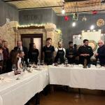 La Delegazione del Monferrato ha aperto il nuovo anno con una riunione conviviale presso l’Osteria Bar Sport di San Germano, frazione di Casale Monferrato. Il locale è stato recentemente celebrato come ristorante con il miglior rapporto qualità-prezzo della zona; si distingue per un appeal informale ma al tempo stesso di grande consistenza, con la cucina a vista dello chef Tommaso Negri, dotato di molta fantasia e rispetto della tradizione. Nel corso della serata sono stati serviti il lievitato dell’osteria con canditi e pancetta, un cotechino accompagnato da crema di porri, crudo di Mazara e topinambur croccante, il risotto alla Sofora, la noce di animella con carciofo candito e salsa périgourdine, per concludere con la nocciola. Il tutto è stato accompagnato dai vini di Cascina Montecchio, in particolare Grignolino, Barbera e spumante. L’accostamento del classico cotechino con il gambero crudo ha destato grande interesse e apprezzamento. La relazione della riunione conviviale ha rievocato la storia di alcuni ristoranti ormai chiusi ma di grande tradizione, e in particolare del Ristorante Sofora, che è stato un punto di riferimento per la buona cucina e nel quale lo chef Tommaso ha appreso dalla nonna Mariuccia molti dei segreti che caratterizzano la sua cucina attuale.