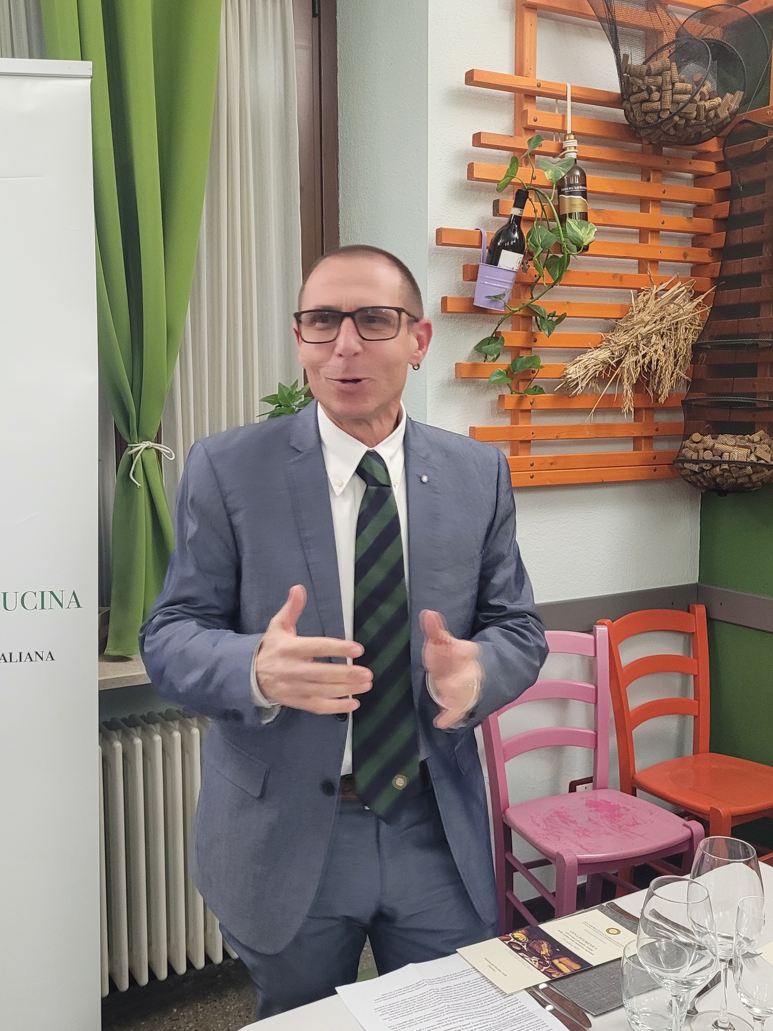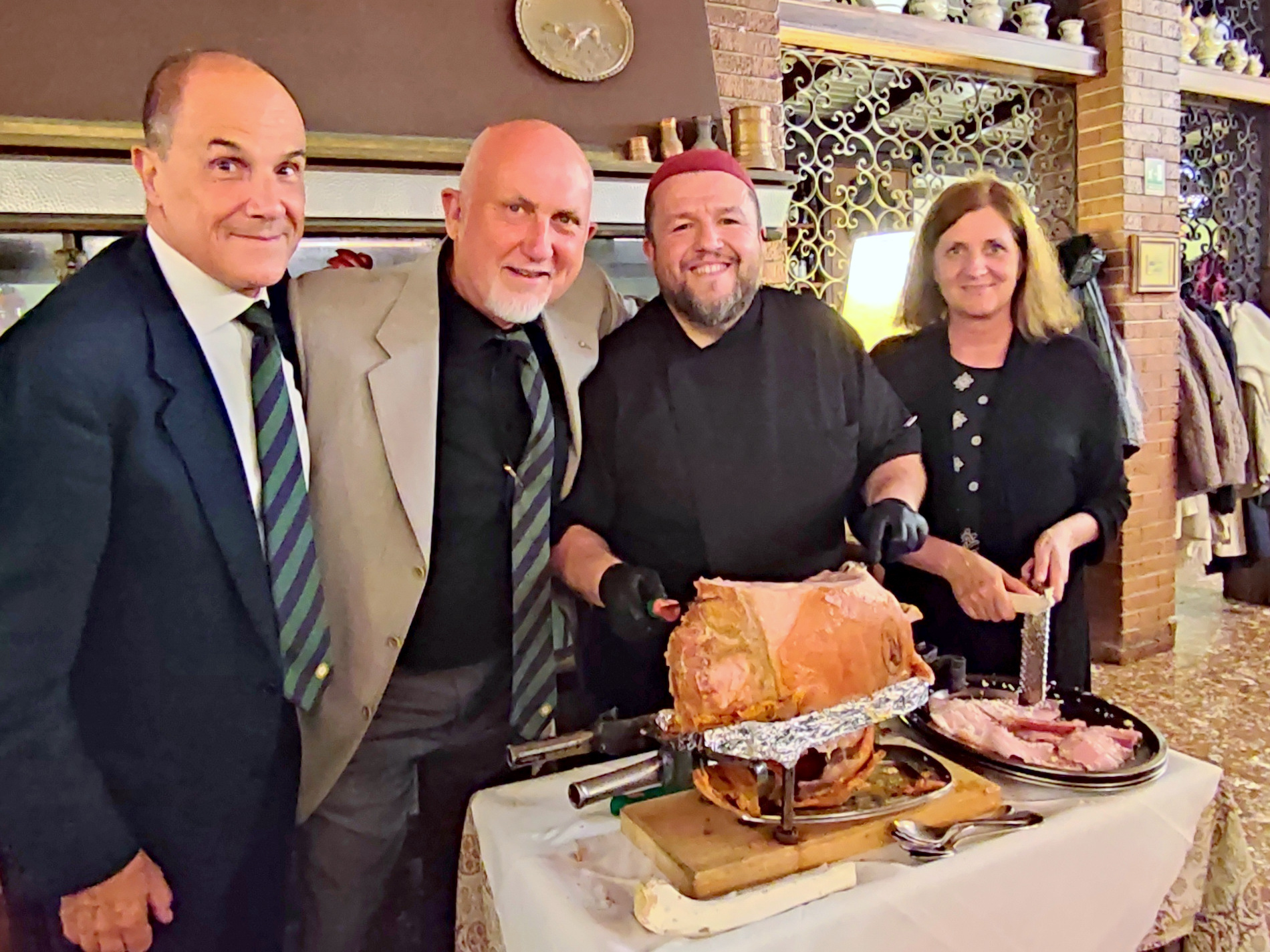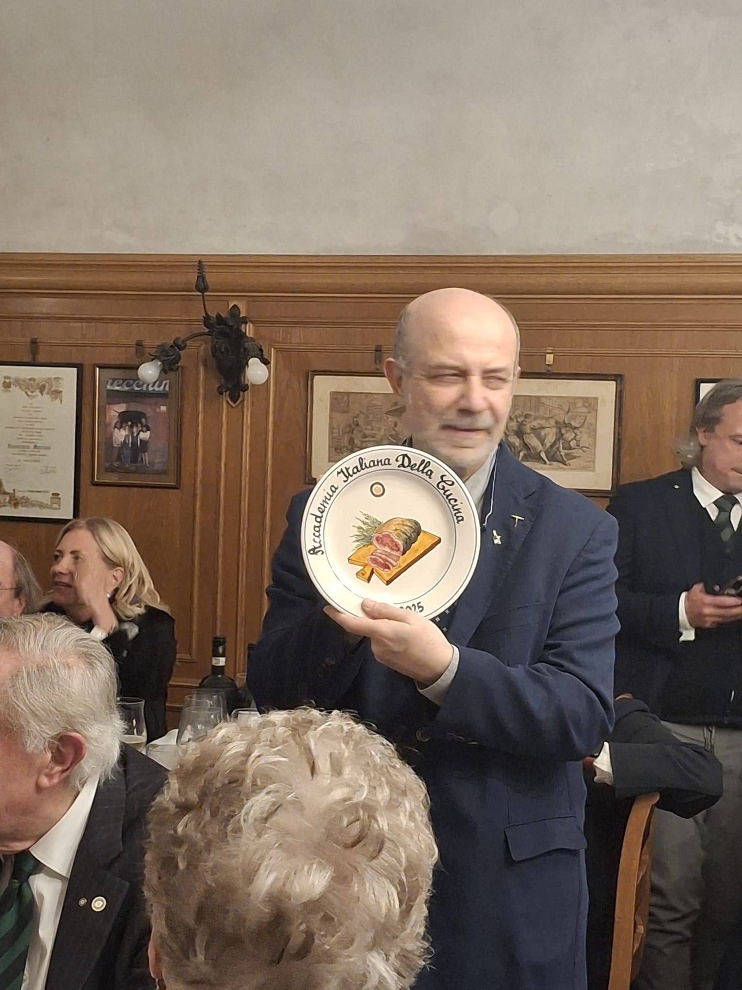La Cena Ecumenica, magistralmente organizzata dal Simposiarca Ernesto d’Amico presso il ristorante Cantina Battisti di Vago di Lavagno, si è svolta in un clima di grande convivialità e partecipazione. La sua relazione, dedicata al tema dell’anno, è stata condotta con notevole capacità espressiva, coinvolgendo l’intera Delegazione con conoscenza, autorevolezza e simpatia. La serata è stata ulteriormente impreziosita dalla cerimonia di consegna delle insegne accademiche al nuovo Accademico Tony Pagone. Un caloroso e prolungato applauso lo ha accolto, testimoniandogli fin da subito l’affetto e la stima di tutti i presenti. Uno straordinario carrello fumante di bolliti e arrosti, accompagnato dalla amata salsa Pearà, ha coronato una serata davvero gioiosa e gustosissima.