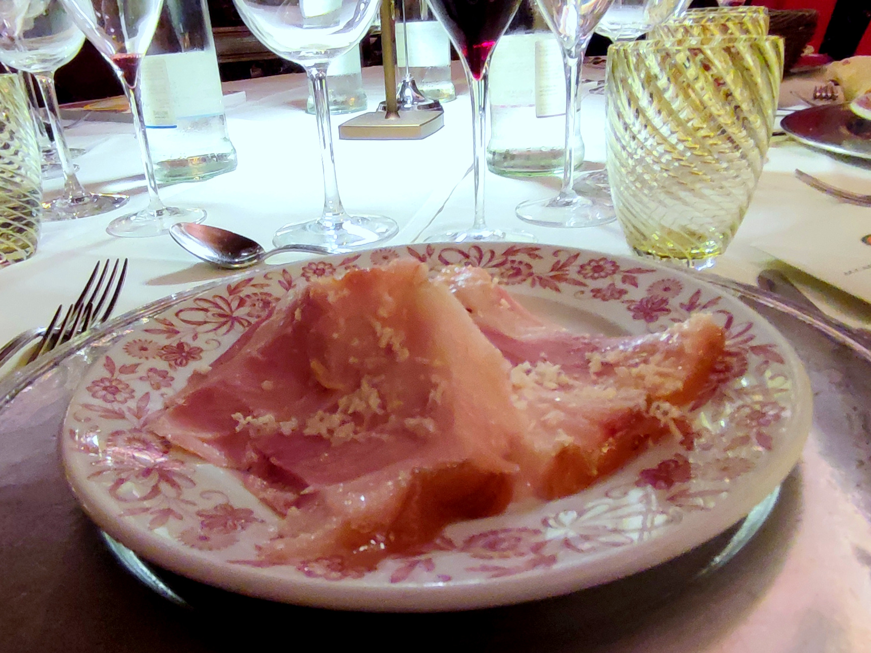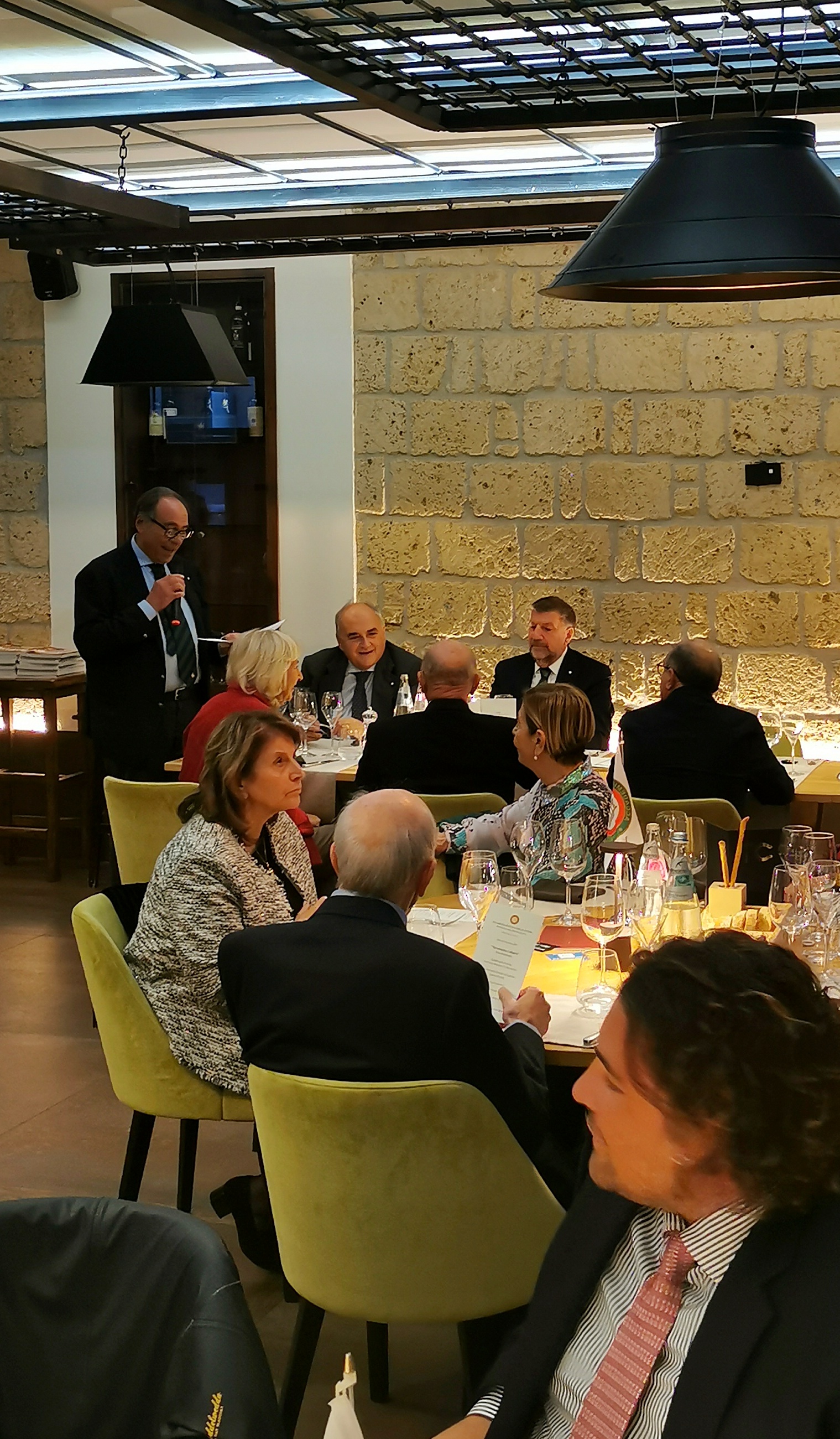 Per celebrare la Cena Ecumenica gli Accademici si sono ritrovati a Villa Cerreto nella frazione di Ronta a Borgo San Lorenzo (FI). Di proprietà della famiglia Marrani che, giunta alla quinta generazione, gestisce l’omonimo ristorante, la villa è stata riservata per l’occasione alla Delegazione. Dopo l’aperitivo di benvenuto, il tema dell’anno è stato pregevolmente illustrato dal Vice Delegato Renzo Bartoloni, membro del Centro Studi Toscana Est, che ha evidenziato le tante preparazioni tipiche del territorio, soprattutto di arrosti e ancor più di umidi, anche come riuso delle carni avanzate. La brigata di cucina ha sapientemente interpretato il tema con un menu comprensivo delle varie gustose preparazioni di carne: dalla lingua bollita con la sua delicata salsa verde al cappone del ripieno della squisita pasta in brodo, dal saporito ragù di capriolo per le pappardelle alla rosticciana in umido con le biete per finire con un sontuoso carré di vitella arrosto. Una serata che ha riscosso l’alto apprezzamento degli Accademici, presenti nella quasi totalità, e dei numerosi ospiti tra cui l’Accademico di Shanghai Maurizio Lupi con la moglie Manuela. Con i ringraziamenti anche per la bellissima accoglienza, la Delegata ha consegnato in dono ai ristoratori il Volume della Biblioteca di Cultura Gastronomica e il piatto dell’anno.