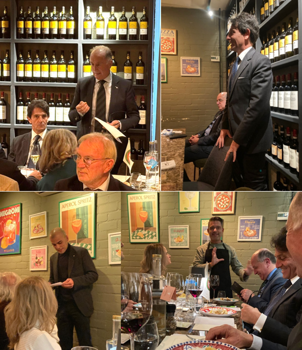 In occasione della Cena Ecumenica, la Delegazione visita il ristorante Retrogusto. Ha l’onore di condividere la tavola con l’Ambasciatore d’Italia nei Paesi Bassi, S.E. Augusto Massari. Lo staff del Retrogusto, guidato dal patron e chef Angelo Sciacchitano, si distingue offrendo una cena indimenticabile, perfettamente in linea con il tema dell’anno e arricchita da un’interessante relazione dell'Accademico Lapo Mughini-Gras. I vini abbinati alle diverse portate si rivelano di assoluta eccellenza. Il percorso gastronomico si apre con un’amuse servita su pane fatto in casa, seguita da una squisita caponata accompagnata da una fettina di porchetta. Prosegue con ravioli al taleggio e porcini, adagiati su un ragù di stracotto di guancia di cinghiale di qualità invidiabile. Eccellente, per cottura e sapore, il bollito misto alla piemontese, pietanza ormai introvabile nei Paesi Bassi. A chiusura, una panna cotta con fragole stufate conclude il menù con delicatezza. Per la costanza, la volontà di migliorarsi e l’utilizzo di ottimi e genuini prodotti italiani, la Delegazione di Utrecht ha deciso di promuovere il ristorante assegnando due tempietti.