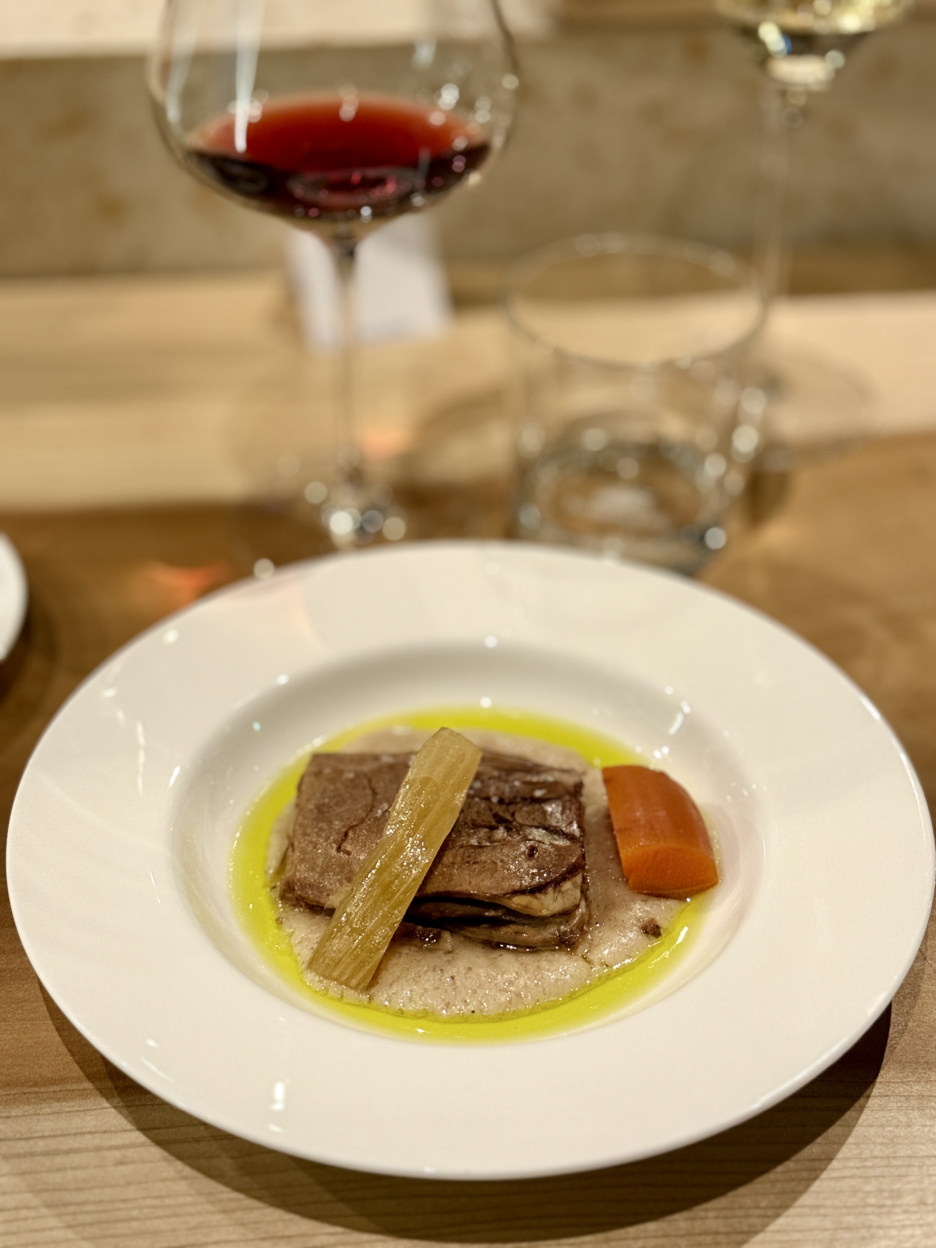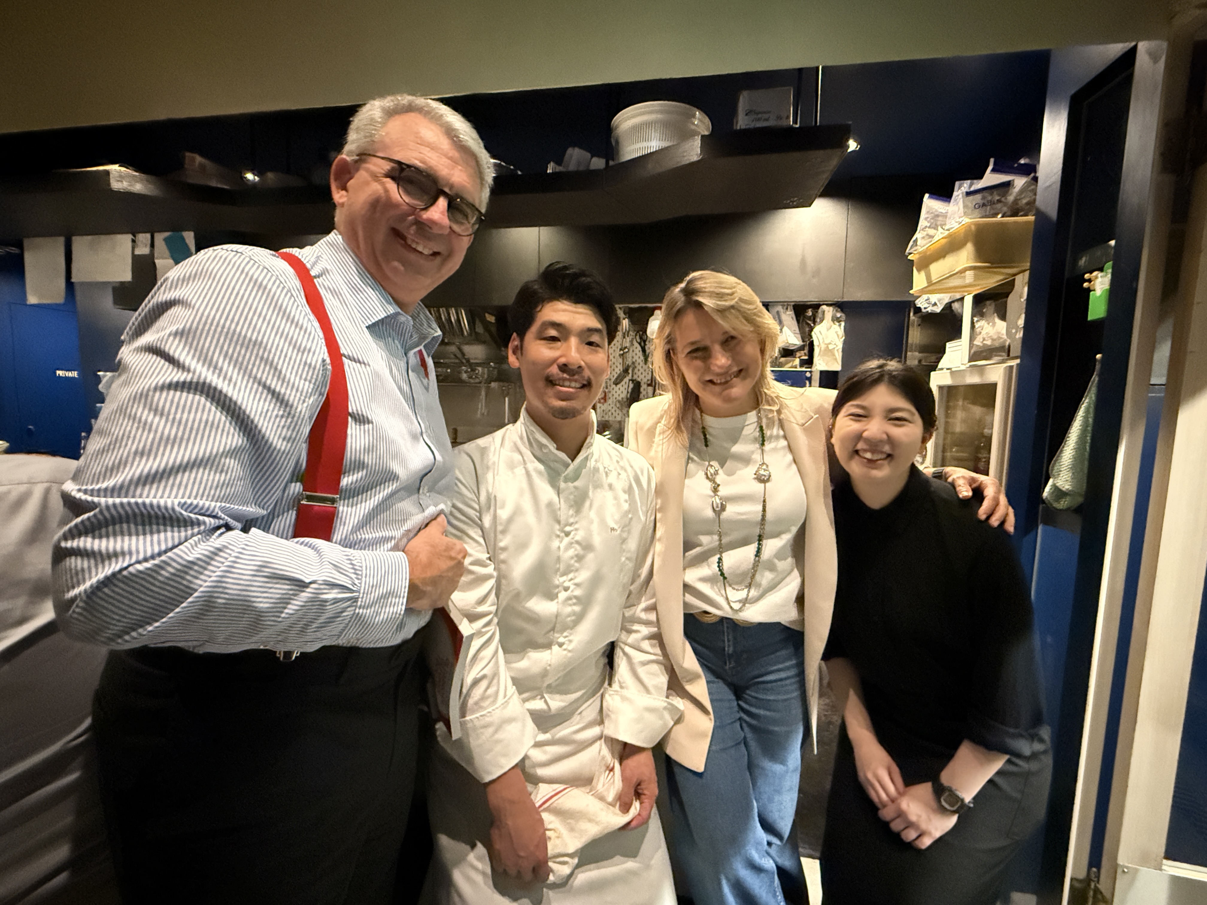 Il locale, molto accogliente, ha ospitato numerosi invitati, tra cui l’Ambasciatore SE Gianluigi Benedetti e l’Accademica Onoraria Sabina D’Antonio. Le adesioni, così numerose, hanno richiesto una chiusura anticipata. Protagonisti della cena i bolliti, reinterpretati dallo Chef: accanto a un classico molto apprezzato, è stata servita un millefoglie di muscolo e lingua con salsa e verdure, un piatto originale e sorprendente. Prima, un tagliolino in brodo ha colpito per l’insolito abbinamento di note affumicate e acidule. La serata si è chiusa con un tiramisù con polvere di caffè, che ha fatto onore ai tiramisù di tutto il mondo. Chef Ho Yoshikawa, tornato in Giappone circa due anni fa per aprire il suo locale, vanta un’esperienza quasi decennale in rinomati ristoranti italiani come Le Calandre e La Ciau del Tornavento. La Cena Ecumenica ha anche segnato l’accoglienza in Delegazione della nuova Accademica Anna Iele.