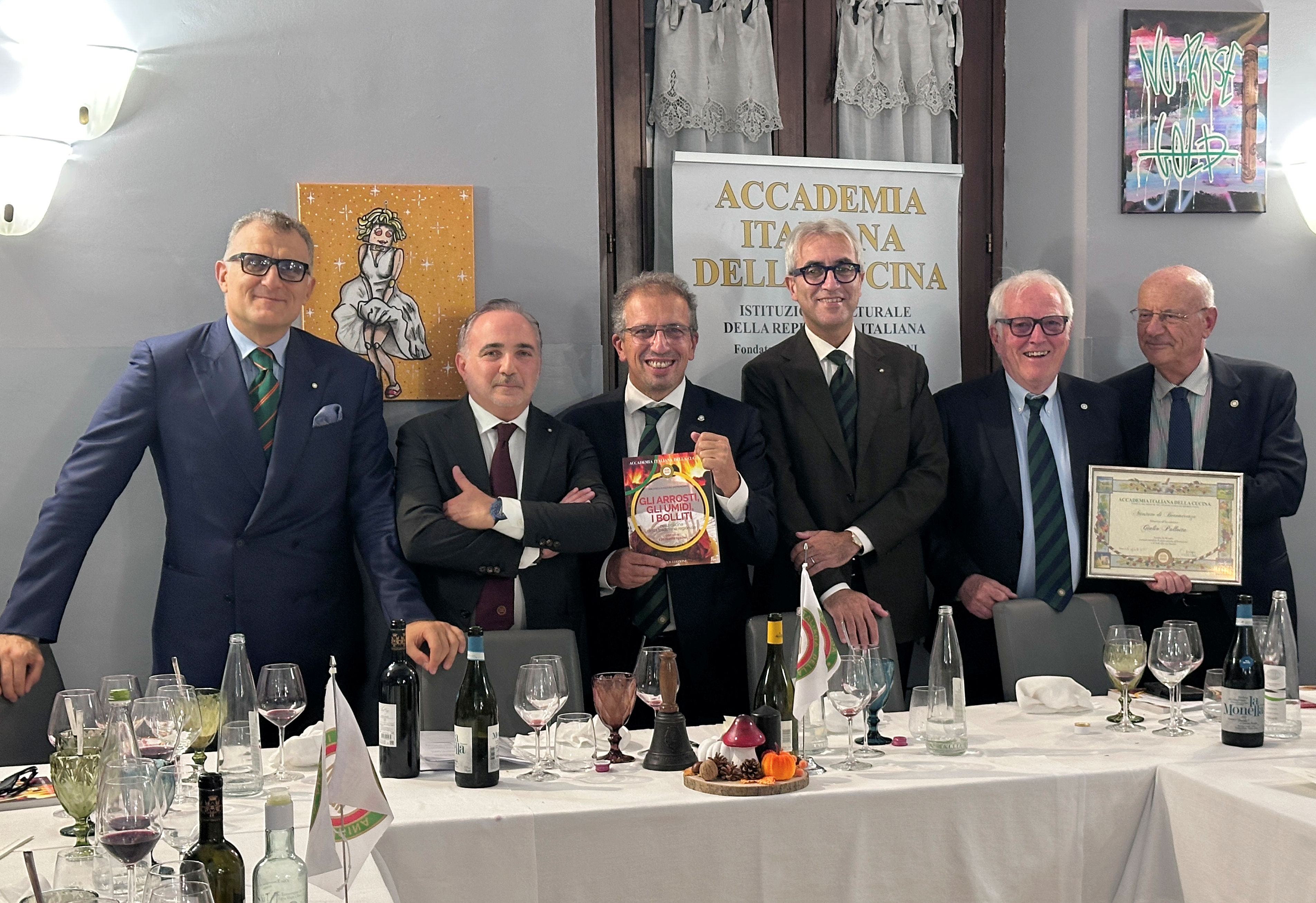 Tradizione nella tradizione per la Cena Ecumenica della Delegazione Napoli ospitata, per il secondo anno consecutivo, dalla “Tavernetta Colauri”. Incastonata sul versante più rustico della collina vomerese, la Tavernetta si è confermata il locale perfetto per l’interpretazione del tema ecumenico del 2025. Tra carni pregiate, fuoco vivo e atmosfere agricole, il tema è stato esaltato dal menu ispirato al bollito del gambongello di manzo col balsamico, all’arrosto del vitello podolico con la salsa all’Aglianico speziata e agli umidi della morbidissima guancia di maiale e del dessert di castagne con la mousse di bufala e la tartelletta di frolla fragrantissima. Prima della cena Massimo Franco, Direttore del Centro Studi Territoriale della Campania, ha ripercorso insieme agli Accademici le tappe editoriali della pubblicazione sul tema ecumenico raccontando aneddoti e curiosità sulle ricette campane presentate. Infine, degno di menzione, l’ingresso nella Delegazione di Angelo Cortile.