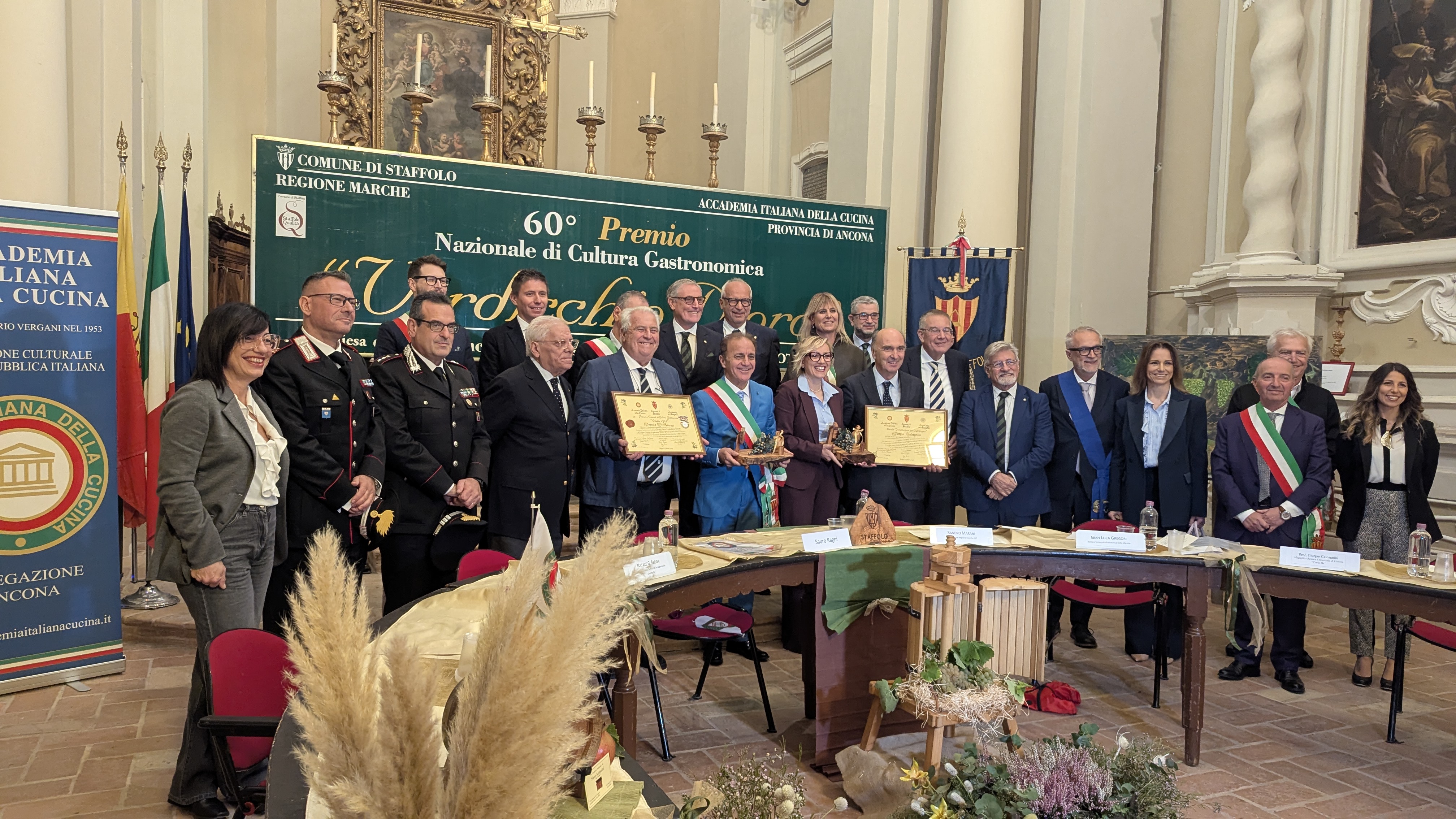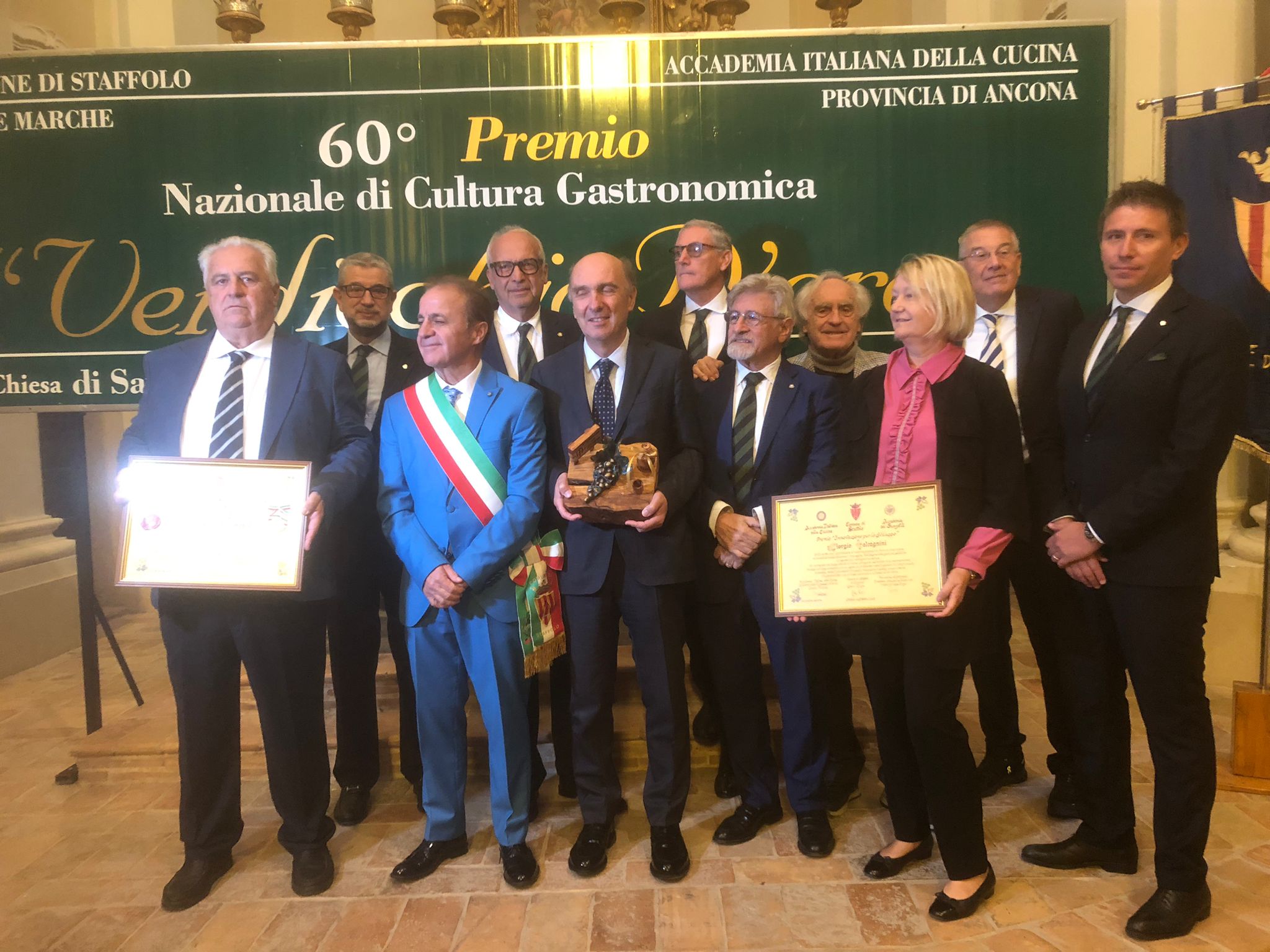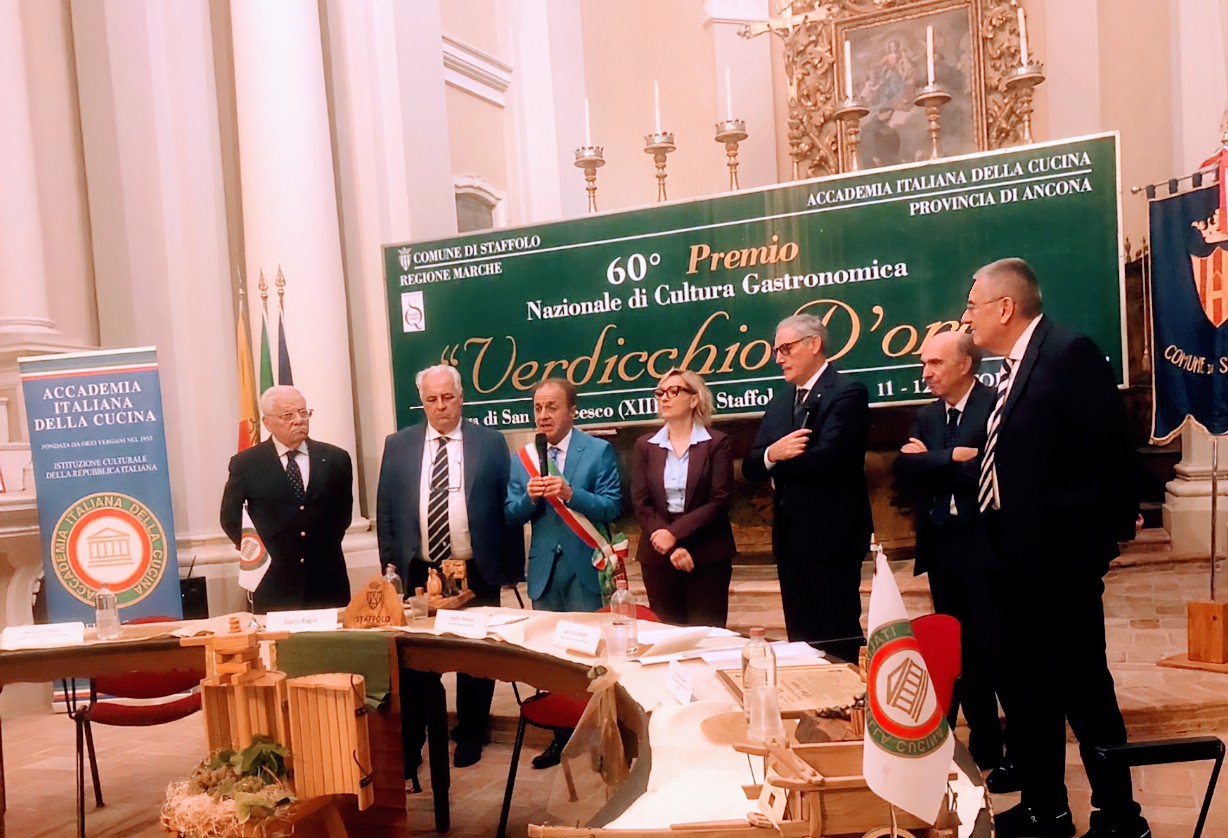 Senigallia e Staffolo hanno celebrato i 60 anni del Premio Verdicchio d’Oro, promosso dalla Delegazione di Ancona dell’Accademia Italiana della Cucina con Comune di Staffolo, Accademia dei Georgofili e Università Politecnica delle Marche. L’11 ottobre, all’Auditorium San Rocco di Senigallia, si è svolto il convegno “Intelligenza artificiale: quali possibili applicazioni in agricoltura”, con docenti e ricercatori. Il 12 ottobre, a Staffolo, la tavola rotonda “Sostenibilità e territorio” e la cerimonia del premio hanno visto protagonisti il professor Rosario Di Lorenzo, Presidente dell’Accademia Italiana della Vite e del Vino, e Giorgio Calcagnini, rettore dell’Università di Urbino “Carlo Bo”. Il sindaco Ragni e il consigliere regionale Tiziano Consoli hanno sottolineato il valore culturale e generazionali del premio, mentre il Delegato e CT Marche Sandro Marani ha ricordato il ruolo dell’Accademia nella promozione di tradizione, innovazione e qualità. Di Lorenzo e Calcagnini hanno ringraziato per il riconoscimento, apprezzando il sostegno del territorio e l’iniziativa che valorizza giovani e imprese locali, confermato anche dai consiglieri Tiziano Consoli e Pieramelio Baldelli, che hanno definito il premio simbolo di identità e sviluppo delle Marche.