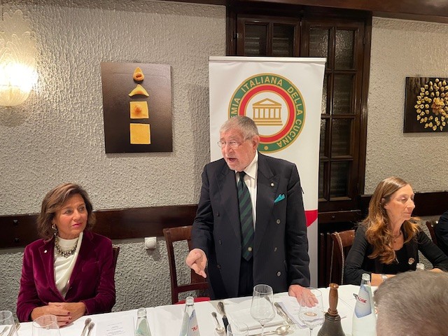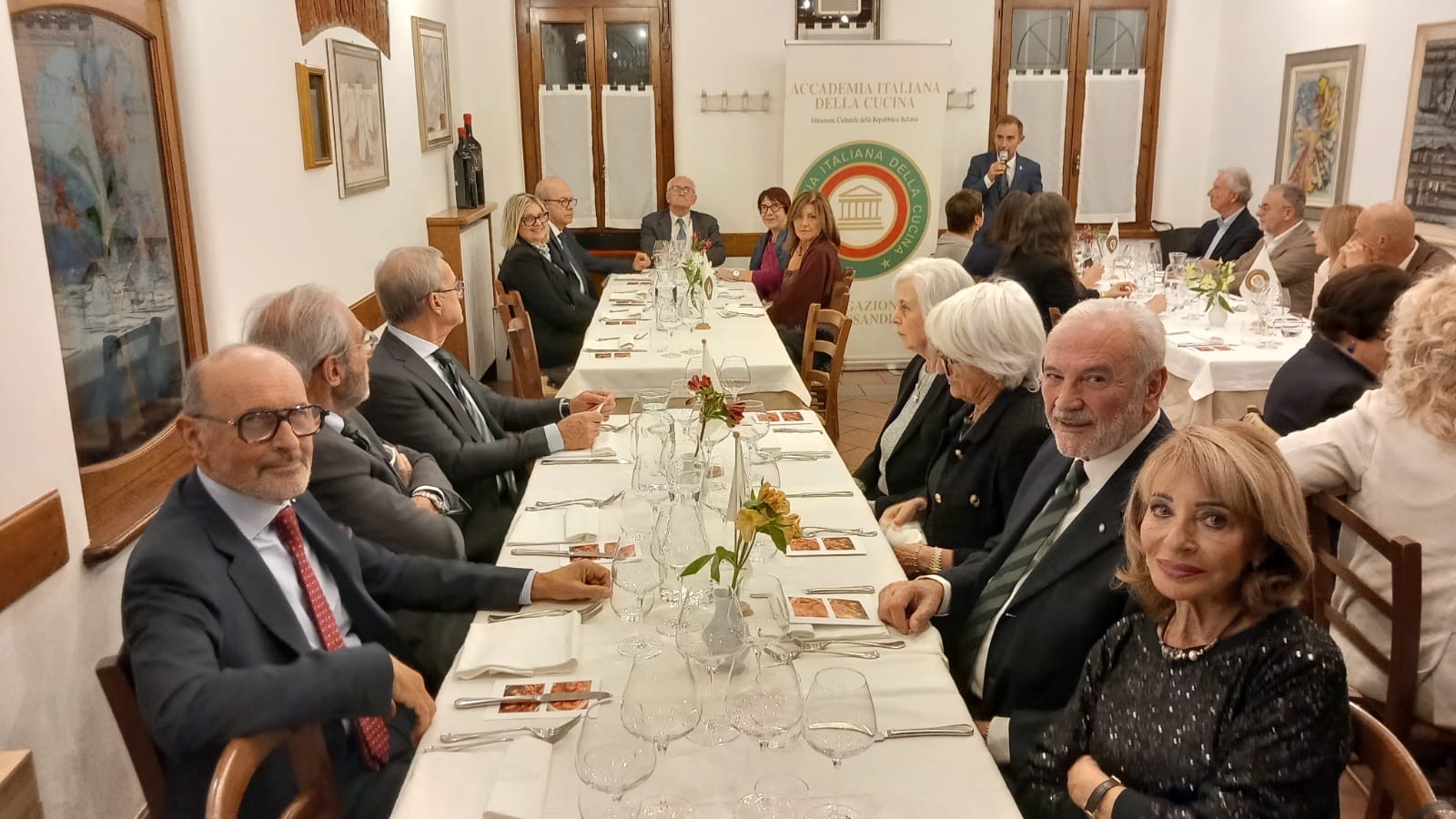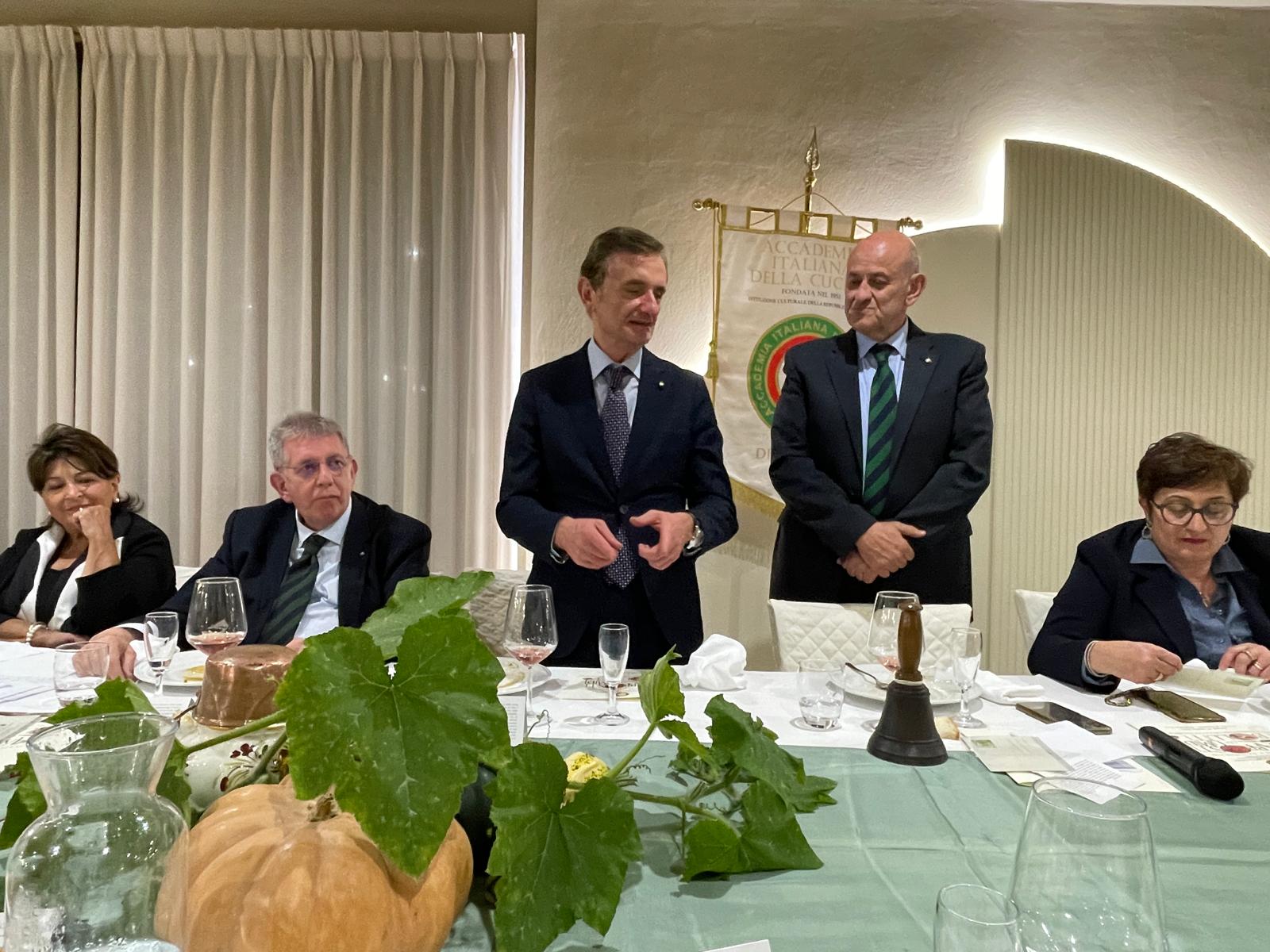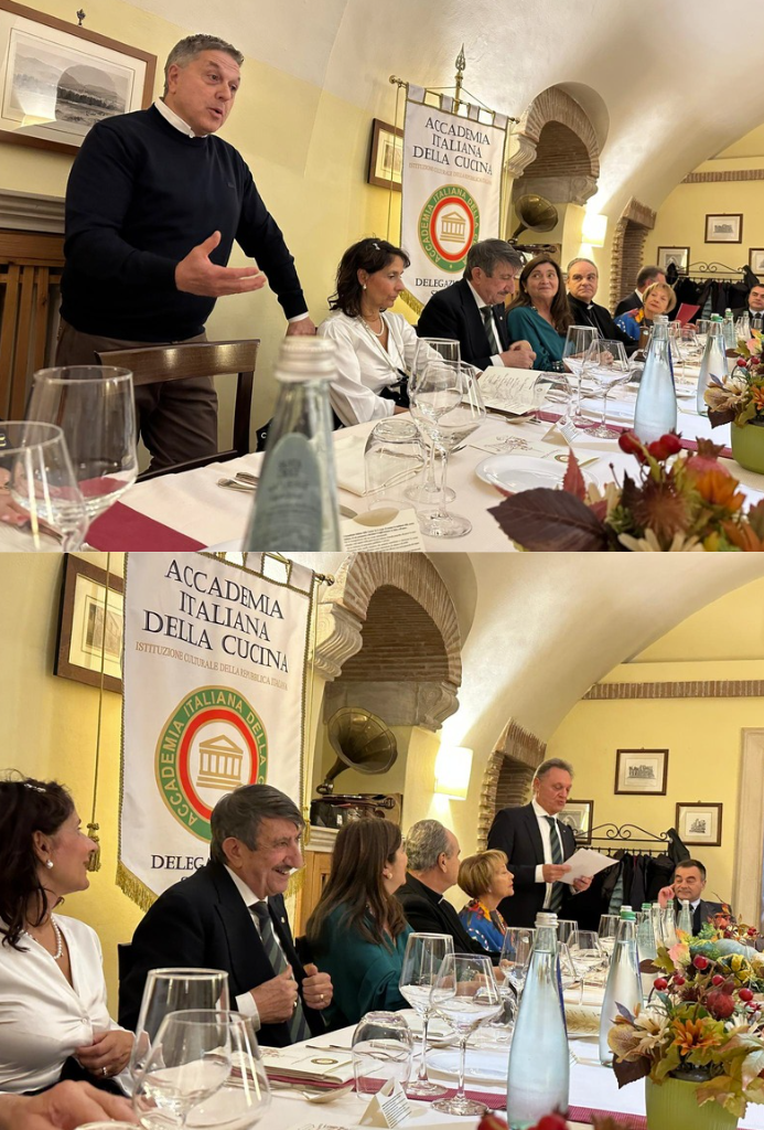 Un’occasione di ripasso e di crescita culturale per gli ospiti presenti: questo è stato, in sintesi, lo spirito della Conviviale Ecumenica 2025 nella Delegazione di Chieti. Gli Accademici si sono riuniti presso il ristorante “Il Casolare” di Miglianico, insignito proprio quest’anno dall’Accademia del “Diploma di Buona Cucina”. Durante la serata hanno potuto ascoltare la dotta relazione del Direttore del Centro Studi Territoriale, Maurizio Adezio, il quale, presentando il volume relativo al tema scelto per il 2025, ha chiarito i termini arrosto, bollito, umido, fricassea, salmì, brasato, stracotto, stufato, spezzatino e civet, collocando così nella giusta dimensione ogni riferimento alle preparazioni culinarie che la chef Antonina Di Giacomo ha dedicato all’ecumenica, sapientemente selezionate dal Simposiarca Rocco Del Conte. La serata è risultata gradevole e di alto livello, tecnico e culturale, impreziosita dalla presenza del prefetto di Chieti, Gaetano Cupello.