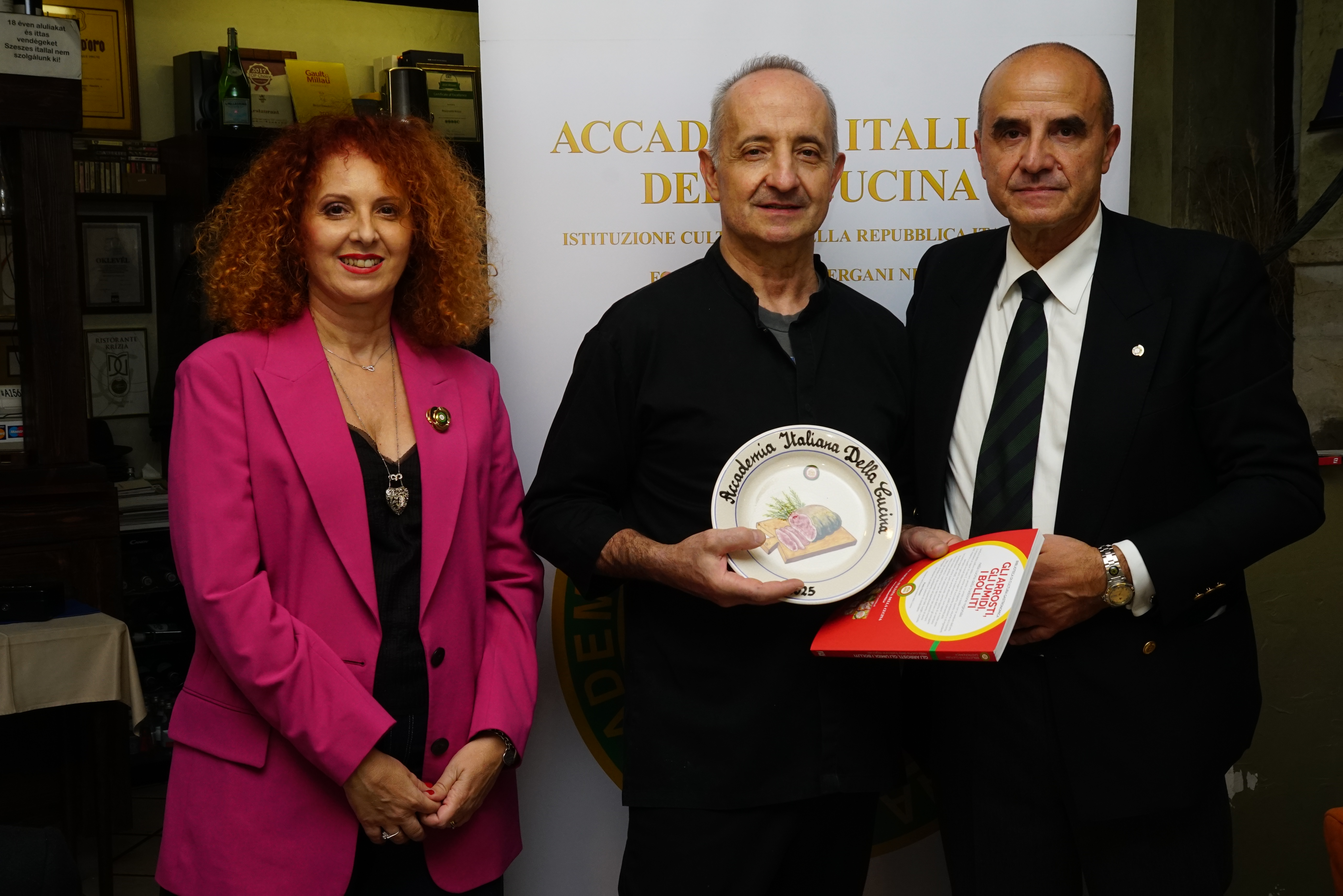 L’interessante tema della Conviviale Ecumenica ha esaltato le indubbie abilità di Graziano Cattaneo, veterano degli chef a Budapest ed importante punto di riferimento della identità gastronomica italiana nel Paese. Alla presenza del neo Ambasciatore S.E. Giuseppe Scognamiglio e di un buon numero di Accademici e ospiti, il Simposiarca Vice Delegato Maria Carmela Gaetani Aronica ha gestito l’evento in maniera impeccabile. Attenta e meticolosa, ha declinato con chiarezza espositiva le varie portate del menu, risultato di altissima qualità per sapiente combinazione di gusti e sapori tradizionali. Relatore il Delegato e unanime il giudizio di apprezzamento anche per l’ottimo servizio e gli eccellenti vini serviti.