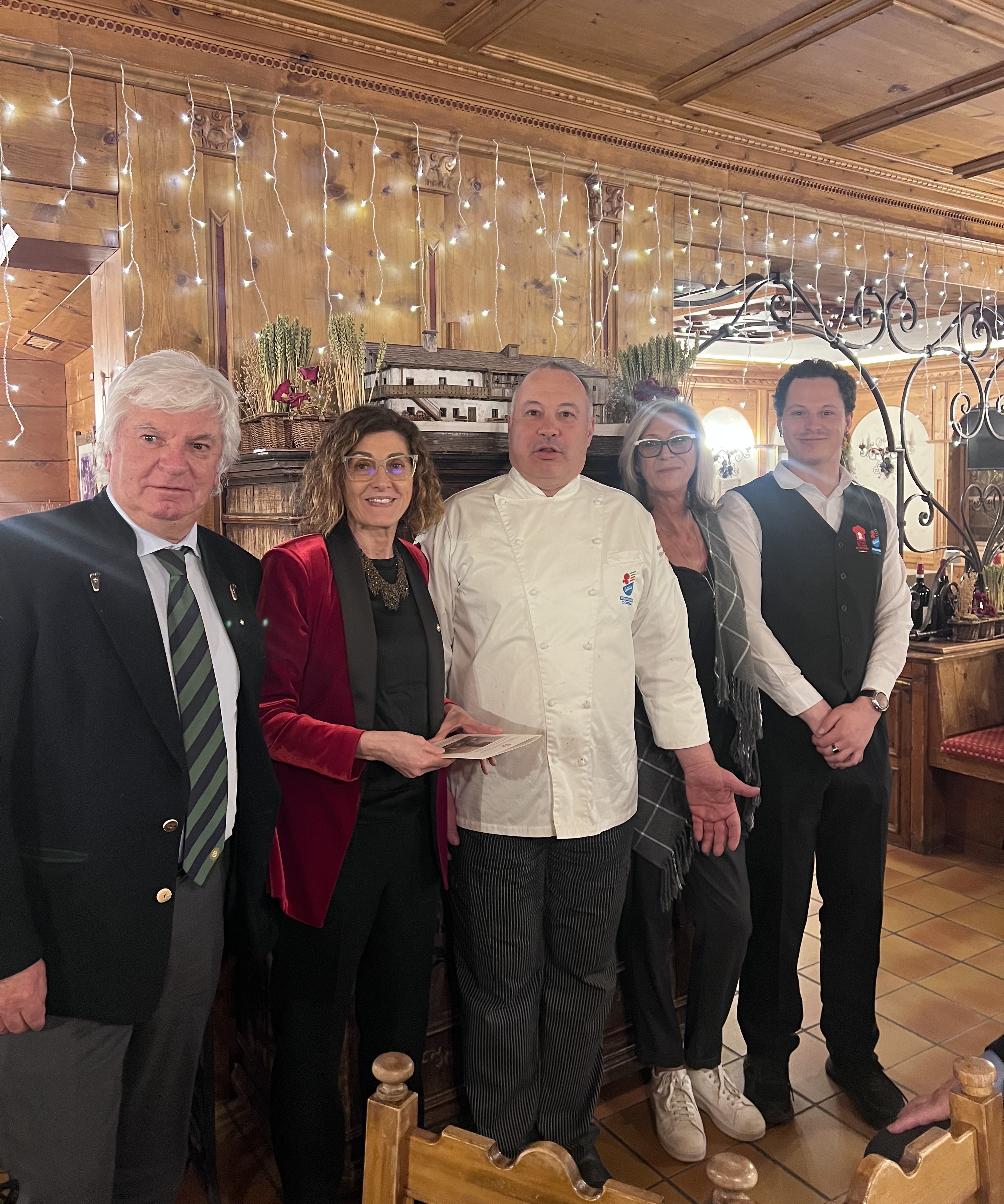 In occasione della Conviviale Ecumenica Straordinaria, la Delegazione di Cortina d’Ampezzo si è riunita presso il ristorante Rio Gere, appartenente alla famiglia Bellodis sin dal 1957 e gestito a quel tempo dai nonni dell’attuale proprietario e cuoco: luogo perfetto per portare in tavola piatti della tradizione ampezzana, come casunziei e kaiserschmarnn. La cucina locale nasce in una zona di passaggio con scambi commerciali fin dall’epoca romana. Cortina fu sotto la Repubblica di Venezia dal 1420, e poi sotto gli Asburgo dal 1511 fino al 1919, per questo la cucina unisce influenze venete e mitteleuropee. In origine era una cucina povera, legata alla sopravvivenza e alle risorse locali. Tra i piatti tipici ci sono casunziei, chenedi (canederli) e goulash. Molti dolci derivano dalla tradizione austro-ungarica, come strudel e kaiserschmarrn. La cucina ampezzana è quindi il risultato di tradizione locale e influenze storiche esterne, ed è necessario ricordarne le origini per non perdere identità e cultura.