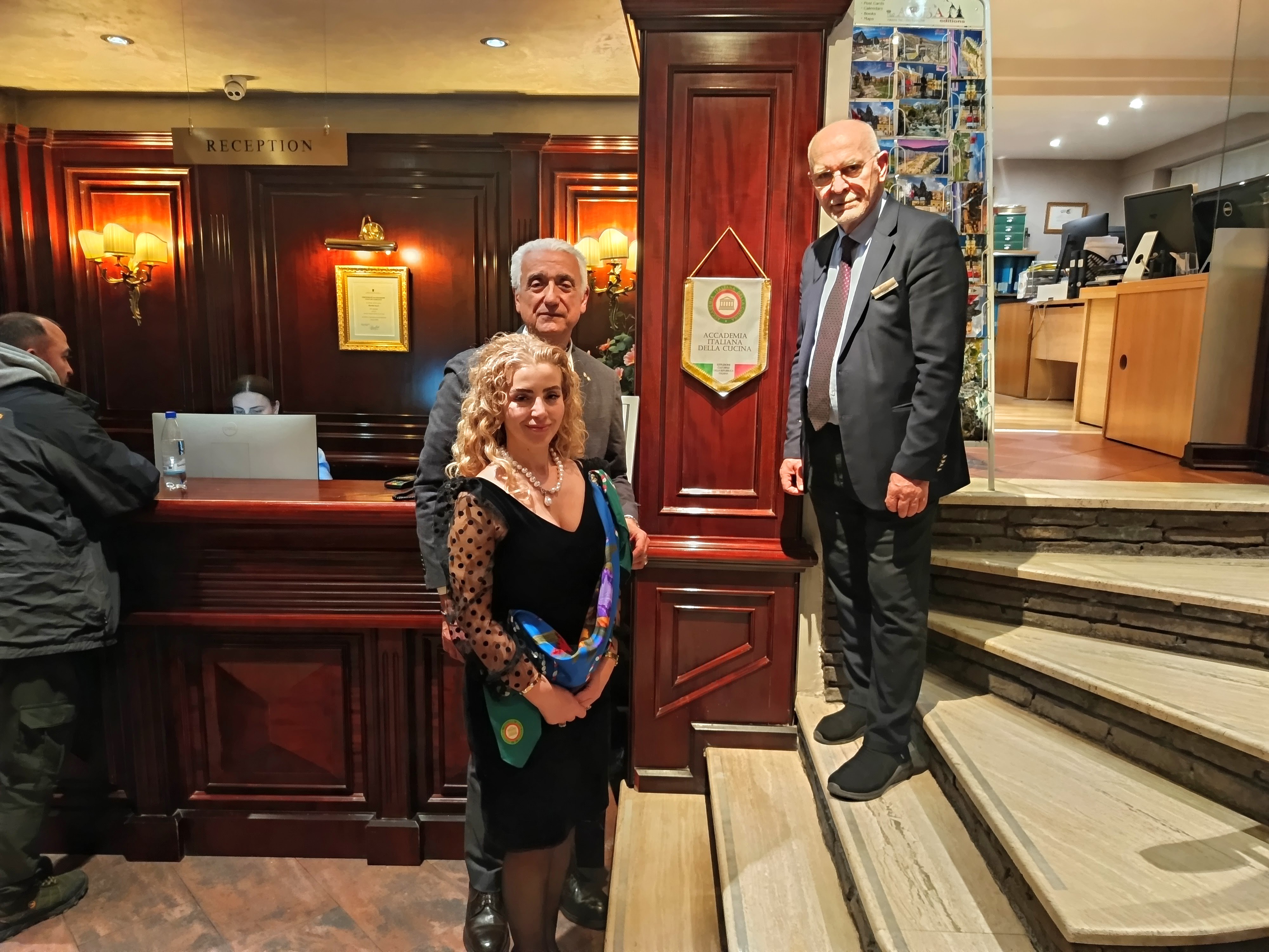 Conviviale Ecumenica Straordinaria della Delegazione di Rieti presso il ristorante La Foresta. Dopo il saluto iniziale del Delegato Francesco Maria Palomba, indirizzato a tutti i presenti, tra cui molte autorità civili, militari ed il Console Generale del Marocco, ha fatto ingresso nella Delegazione la neo Accademica Nadia Mazzilli ed è stato proiettato il videosaluto del Presidente Paolo Petroni. Il Delegato ha quindi spiegato nei dettagli il significato della serata, della Cena Ecumenica ed ha illustrato, come Simposiarca, il menu scelto per l’occasione. La parola è quindi passata all’Accademico Alessandro Pitotti, funzionario del MAECI, che ha illustrato questo riconoscimento. Nel corso della serata Elia Grillotti, presidente dell’Associazione Cuochi Rieti, ha consegnato al Delegato un attestato di ringraziamento per il lavoro svolto per la promozione della Cucina.