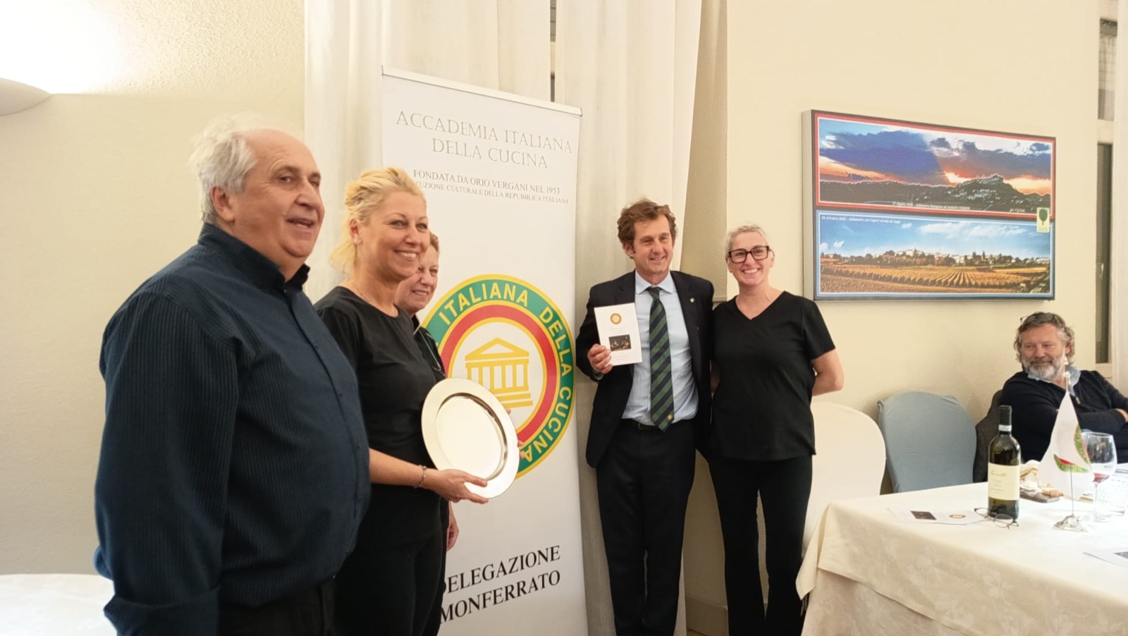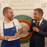 Gli Accademici della Delegazione di Ascoli Piceno hanno organizzato, come ogni anno, la tradizionale Cena Ecumenica presso il ristorante “Blobcaffè” di Offida (AP), dove il giovanissimo ma talentuoso chef Gianmarco Di Girolami ha preparato, insieme all’Accademica Paola Cocci Grifoni, Simposiarca dell’evento, un menu ispirato al tema dell'anno 2025, comune a tutte le Delegazioni, ossia: “La cucina degli arrosti, degli umidi e dei bolliti”, accolto con unanime gradimento dai numerosi partecipanti. Lo chef, infatti, si è mosso a proprio agio nella preparazione della carne di vitello, del coniglio, della lepre e del maiale, e i risultati, sicuramente positivi, non sono mancati: gli Accademici hanno valutato molto favorevolmente pressoché tutte le portate. Molto apprezzati anche i vini delle cantine di Castignano, di Ripatransone e di Castel di Lama, tutte situate nel territorio della provincia di Ascoli Piceno. Il Delegato, in chiusura, ha brevemente tracciato i successi professionali dello chef Gianmarco, informando, tra l’altro, che è stato insignito del titolo di “Ambasciatore della cucina italiana e marchigiana”, esibendosi in Canada, Brasile, Giappone, Perù, Albania e, presto, in Argentina.