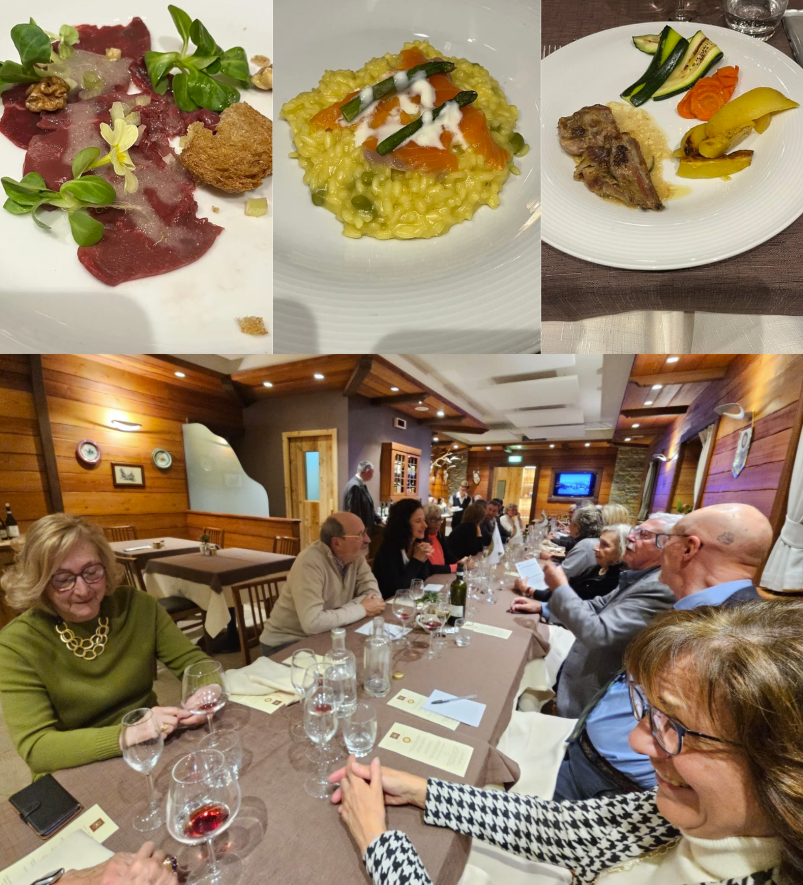 Piacevole riunione conviviale presso il ristorante Edelweiss Lare Spa della famiglia Facciola, situato nel cuore della Valle Antigorio, alle porte del Parco Naturale Veglia-Devero, che vanta 60 anni di gastronomia locale. Sono infatti tre le generazioni di cuochi che si sono succedute nel corso degli anni, mantenendo sempre alta la proposta di piatti a base di carni, selvaggina e altri prodotti del territorio. Ottimo il carpaccio di cervo della Val d’Ossola con sedano e noci; delicato il risotto agli asparagi con trota fumé dell’allevamento “Mittag” di Domodossola; eccellente il capretto della Valle Vigezzo al forno; gradita la fiocca con coulis di fragole. Molto apprezzata la presenza del sindaco di Crodo, Pasquale Folchi, e della signora Laura Lazzaroni, organizzatrice della manifestazione “I presepi sull’acqua”.