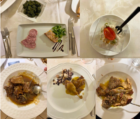 La Delegazione del Monferrato si è riunita per la Conviviale Ecumenica a Casale Monferrato, ospitata dall’accogliente Osteria Amarotto, punto di riferimento della cucina tradizionale casalese. Per celebrare l’evento, la Consulta della Delegazione ha scelto di dedicare la serata all’arrosto ed in particolare a tre carni: anatra, faraona e oca, ciascuna arrostita con la medesima procedura ma accompagnate da contorni diversi (radicchio, patate al forno e verza). Il menù comprendeva, oltre al benvenuto della cucina, una terrina di faraona, salame d’oca, friciulin e un delizioso dessert di frappe con crema e frutti di bosco. La degustazione orizzontale dei tre arrosti, apprezzata per originalità e rigore, ha suscitato grande entusiasmo tra Accademici e ospiti, offrendo l’occasione di riscoprire carni tipiche della tradizione monferrina, oggi un po’ desuete. Il Delegato, dopo aver illustrato il menù, ha relazionato sul tema dell’anno e aggiornato i presenti sul recente Forum di Bari, condividendo le preziose informazioni dispensate ai Delegati e Legati di tutto il mondo.