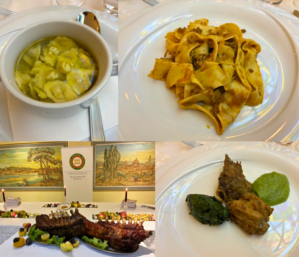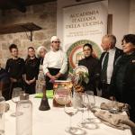 Per celebrare la Cena Ecumenica gli Accademici si sono ritrovati a Villa Cerreto nella frazione di Ronta a Borgo San Lorenzo (FI). Di proprietà della famiglia Marrani che, giunta alla quinta generazione, gestisce l’omonimo ristorante, la villa è stata riservata per l’occasione alla Delegazione. Dopo l’aperitivo di benvenuto, il tema dell’anno è stato pregevolmente illustrato dal Vice Delegato Renzo Bartoloni, membro del Centro Studi Toscana Est, che ha evidenziato le tante preparazioni tipiche del territorio, soprattutto di arrosti e ancor più di umidi, anche come riuso delle carni avanzate. La brigata di cucina ha sapientemente interpretato il tema con un menu comprensivo delle varie gustose preparazioni di carne: dalla lingua bollita con la sua delicata salsa verde al cappone del ripieno della squisita pasta in brodo, dal saporito ragù di capriolo per le pappardelle alla rosticciana in umido con le biete per finire con un sontuoso carré di vitella arrosto. Una serata che ha riscosso l’alto apprezzamento degli Accademici, presenti nella quasi totalità, e dei numerosi ospiti tra cui l’Accademico di Shanghai Maurizio Lupi con la moglie Manuela. Con i ringraziamenti anche per la bellissima accoglienza, la Delegata ha consegnato in dono ai ristoratori il Volume della Biblioteca di Cultura Gastronomica e il piatto dell’anno.