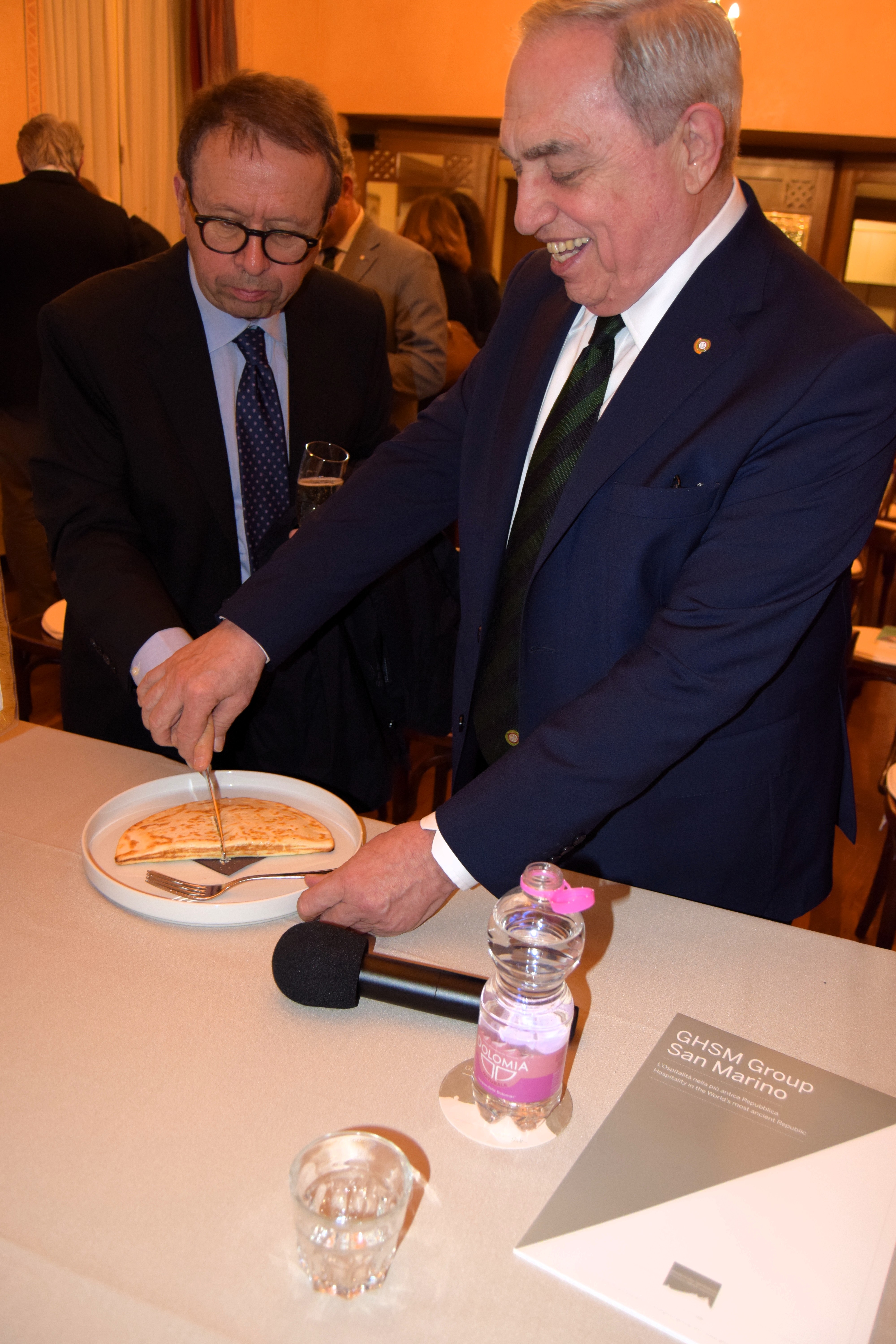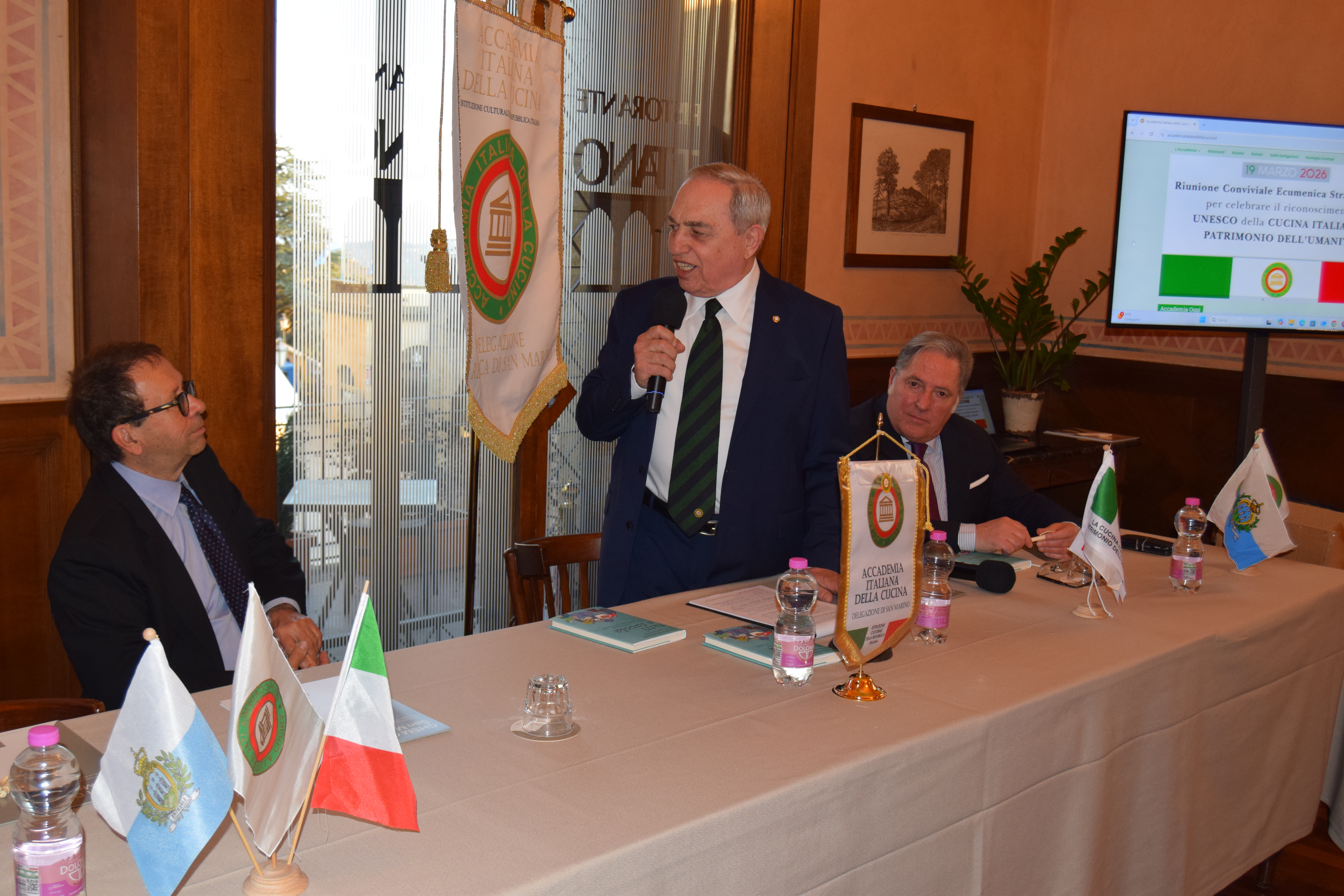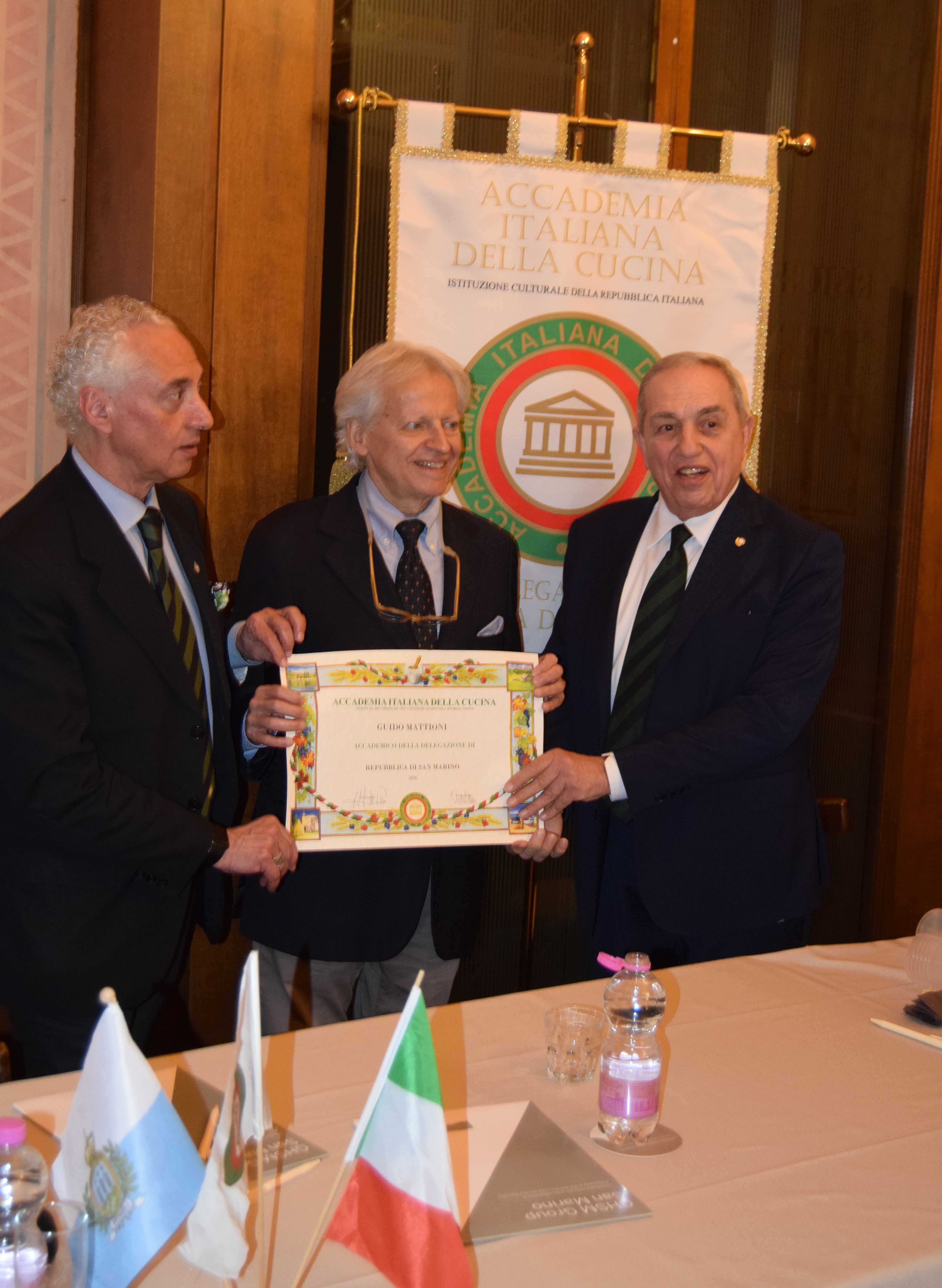 Nel cuore della Città murata di San Marino, nelle sale dell’Hotel Titano e del Ristorante La Terrazza, è stata organizzata, in collaborazione con l’Ambasciata d’Italia a San Marino, la conferenza “La Cucina Italiana Patrimonio dell’Unesco” tenuta dal professor Massimo Montanari, Accademico Onorario della Delegazione di Imola e Presidente del Comitato Scientifico che ha presentato la candidatura della cucina italiana all’UNESCO. L’evento si è concluso con un aperitivo, durante il quale è stata accolta ufficialmente la nomina del neo Accademico Guido Mattioni. A seguire, il convivio ecumenico dedicato ai piatti della tradizione, espressione dell’identità gastronomica del territorio. Presente anche il Segretario di Stato per l’Istruzione, la Cultura, l’Università, la Ricerca Scientifica e le Politiche Giovanili, Teodoro Lonfernini, che ha ringraziato la Delegazione per le iniziative volte a valorizzare la cultura della buona tavola, promuovendo tradizione, innovazione e prodotti tipici di qualità, evidenziando il ruolo delle Delegazioni quali custodi dell’autenticità dei sapori locali. Nel menu non potevano mancare i cascioni con le rosole e le erbe di campagna, tradizionalmente presenti sulle tavole sammarinesi il 19 marzo. Ringraziamenti finali del Delegato Stefano Valentino Piva all’Ambasciatore d’Italia a San Marino, S.E. Fabrizio Colaceci, per la preziosa collaborazione, e a tutti i presenti per la partecipazione, con augurio di sereno rientro.
