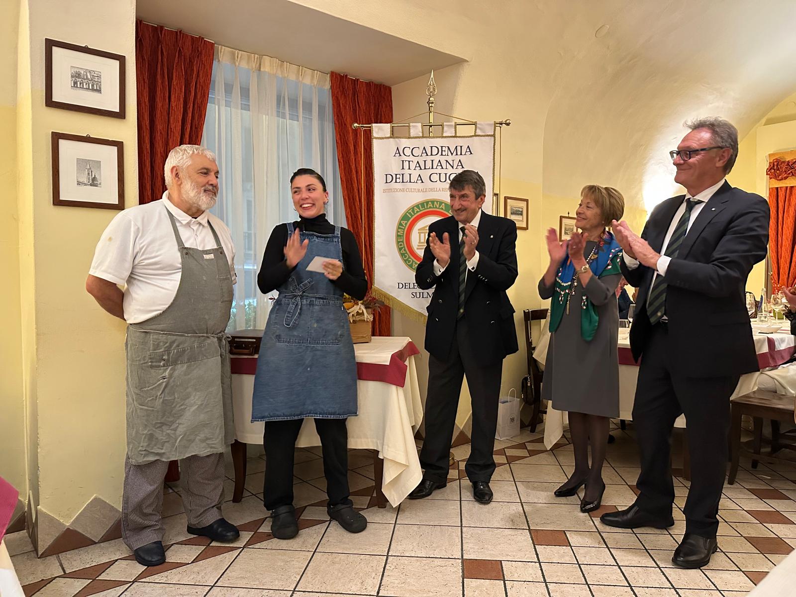 In un’atmosfera di amicizia, allegria e convivialità, si è svolta la Cena Ecumenica 2025 della Delegazione di Sulmona presso il ristorante "Clemente". L’ambiente era ben curato e il menù, in linea con il tema ecumenico, è stato preparato con maestria dai cuochi Martina e Clemente. Il Simposarca Antonio Santilli ha illustrato le pietanze spiegandone origini e preparazione. I due antipasti e l’innovativo tortello scrigno di antichi sapori sono stati apprezzati da tutti gli Accademici. La giovane cuoca Martina ha realizzato un dolce in cui diversi sapori e consistenze si armonizzavano bene. Il relatore Attilio D’Antuono, discendente di una famiglia di macellai dal 1885, ha raccontato storie che vanno dalle tradizioni antiche ai cambiamenti moderni nella commercializzazione e nel trattamento delle carni.