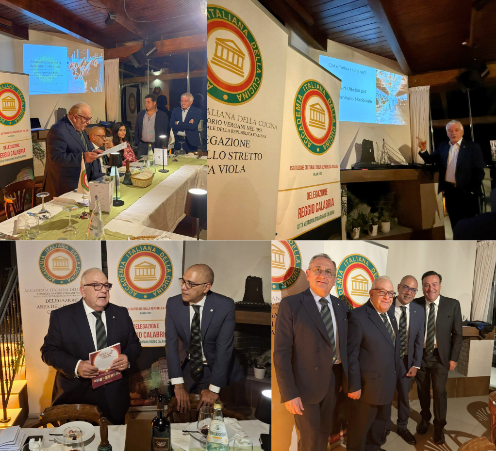 La Cena Ecumenica si è svolta a Bagnara Calabra, presso il ristorante Santabarbara 1789, che si è confermato una location di alto livello per accoglienza e qualità gastronomica. L’evento, organizzato congiuntamente dalle Delegazioni Area dello Stretto-Costa Viola e Reggio Calabria, con la partecipazione del Delegato di Gioia Tauro-Piana degli Ulivi, Ettore Tigani, si è tenuto alla presenza della quasi totalità degli Accademici delle Delegazioni reggine e di numerosi rappresentanti delle altre Delegazioni calabresi. La serata ha rappresentato un significativo momento di incontro tra le diverse realtà accademiche del territorio, all’insegna della condivisione e della valorizzazione delle tradizioni culinarie calabresi. Il Dott. Mario Marroni, Direttore del Servizio Veterinario dell’ASP di Reggio Calabria, ha illustrato le qualità e la sicurezza delle carni consumate nella regione, collegando la tradizione gastronomica alle moderne esigenze di tutela della salute pubblica. La serata si è conclusa in un’atmosfera di convivialità e di apprezzamento generale, confermando il valore della Cena Ecumenica come momento di cultura, dialogo e valorizzazione tradizione enogastronomica italiana.