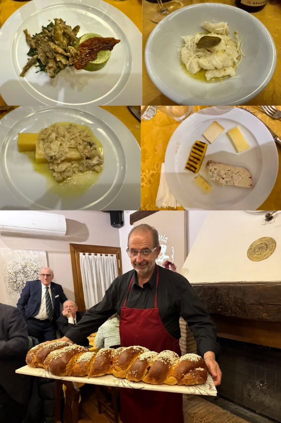 In occasione della Cena Ecumenica Straordinaria, la Delegazione si è riunita presso il Ristorante Clemente, insignito del Premio Nuvoletti. Dopo i saluti iniziali del Delegato e del Sindaco Luca Tirabassi, l’Accademica Chiara Buccini ha trasmesso il messaggio del Presidente Paolo Petroni e ha poi tenuto una relazione approfondita e coinvolgente sulle motivazioni del riconoscimento UNESCO alla cucina italiana. La cena, ideata dal Simposiarca Gianvincenzo D’Andrea insieme ai cuochi Clemente e Martina, si è rivelata un grande successo: un percorso gastronomico costruito nel rispetto della stagionalità e dei piatti cardine del territorio. Ogni portata è stata presentata con cura, raccontandone storia e preparazione, e ha riscosso ampio apprezzamento, con una menzione speciale per le "sagnette", espressione autentica di antichi sapori. La serata si è conclusa con i saluti del Sindaco e del Delegato, lasciando un ricordo particolarmente significativo tra i presenti.
