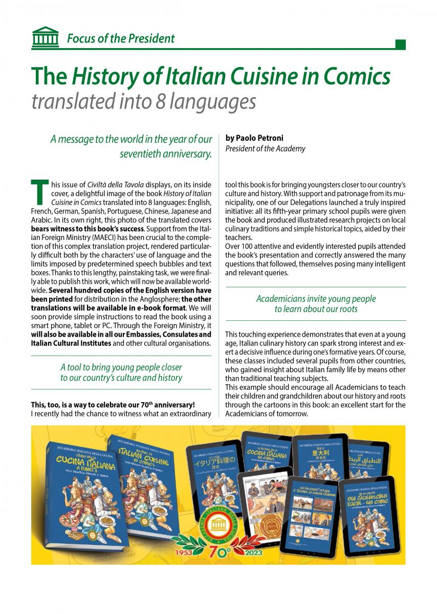 The "History of Italian Cuisine in Comics" translated into 8 languages