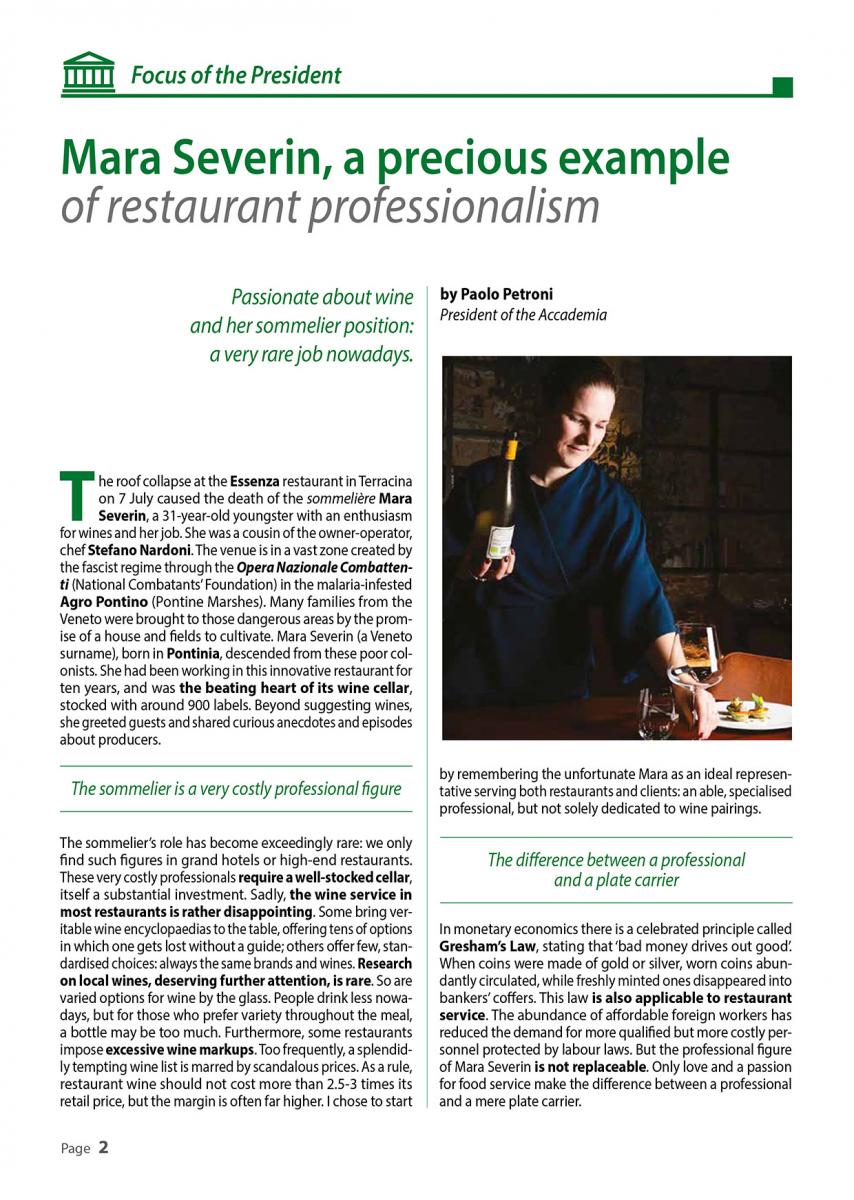 Mara Severin, a precious example of restaurant professionalism
