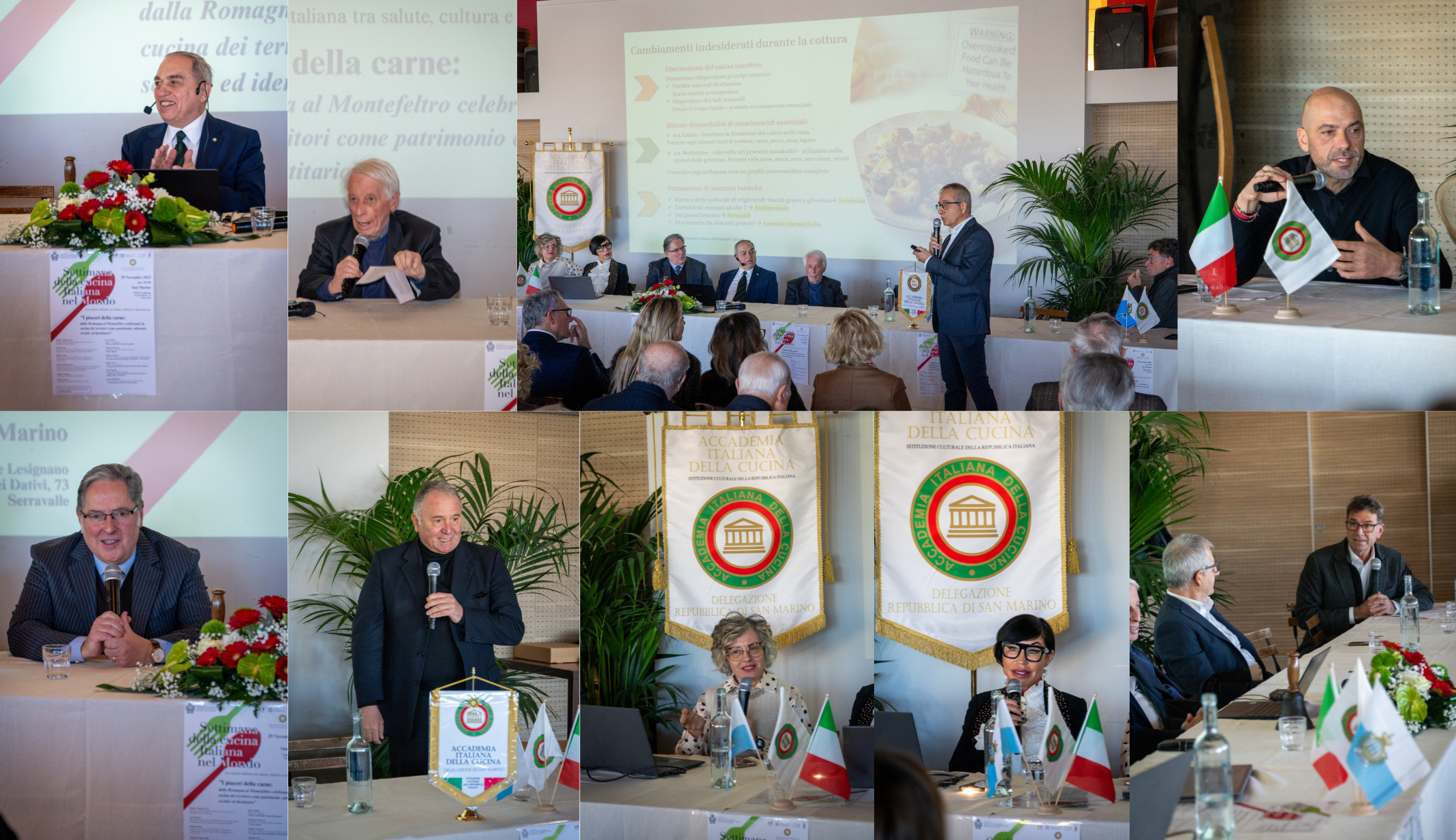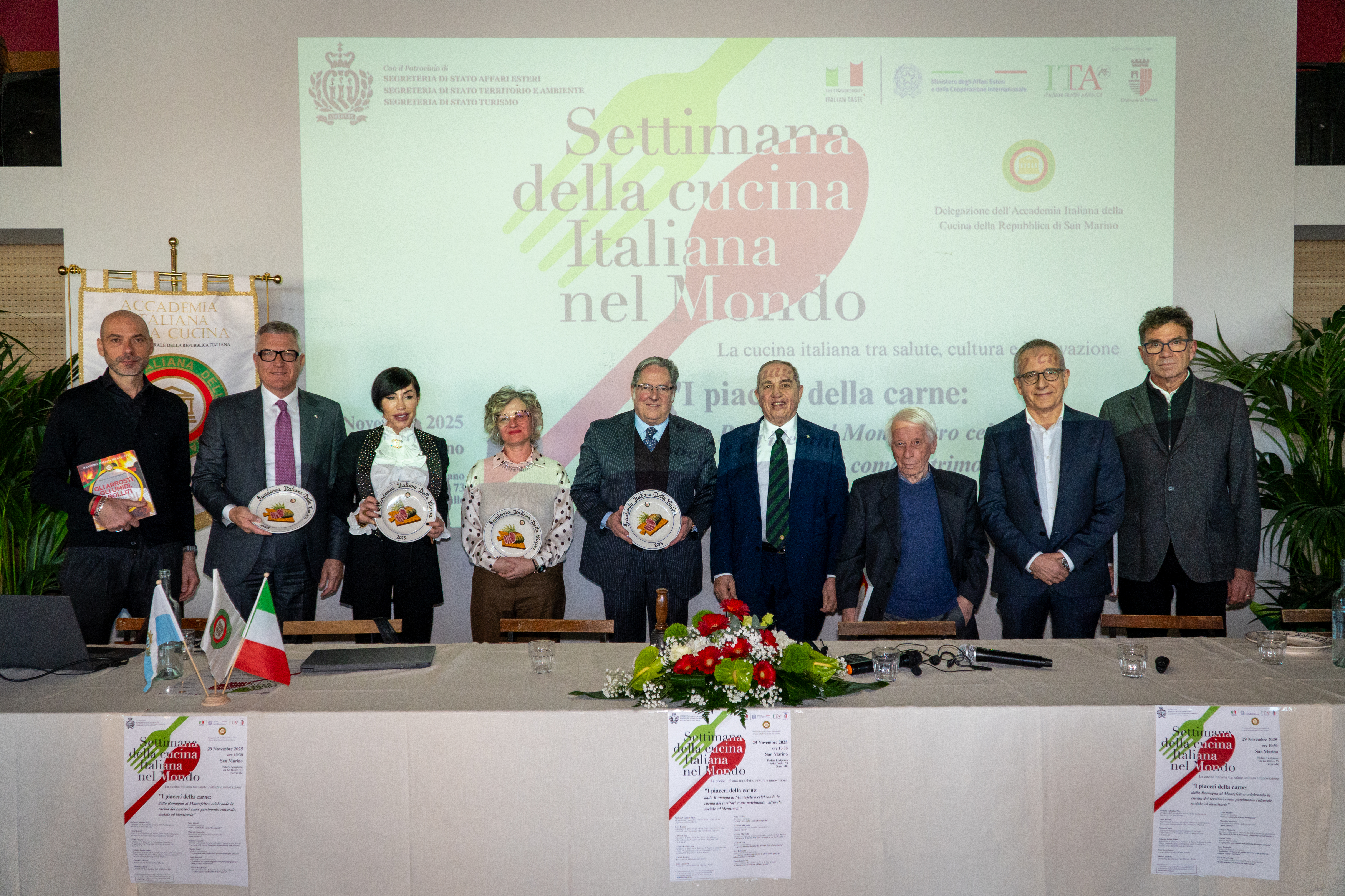 Nell’ambito delle celebrazioni della X SCIM, la Delegazione della Repubblica di San Marino dell’Accademia Italiana della Cucina, in collaborazione con l’Ambasciata d’Italia in San Marino, ha organizzato il convegno “I Piaceri della carne: dalla Romagna al Montefeltro celebrando la cucina dei territori come patrimonio culturale, sociale ed identitario”, dedicato alla valorizzazione della cucina come patrimonio culturale, sociale e identitario dei territori. Dopo l’introduzione del Delegato Stefano Valentino Piva e il saluto di S.E. l’Ambasciatore Fabrizio Colaceci, è intervenuto il Dr. Denis Cecchetti, Presidente dell’Associazione San Marino-Italia e della Camera di Commercio di San Marino, che ha sottolineato il ruolo strategico del settore agroalimentare italiano, pari al 15% del PIL considerando l’intera filiera, e la sua forte vocazione all’export e alla tutela dell’identità culturale attraverso le denominazioni di origine. Il Dr. Giovannino Conti ha portato il saluto del Segretario di Stato per gli Affari Esteri Luca Beccari, evidenziando l’importanza dell’iniziativa per la promozione delle tradizioni gastronomiche romagnole, montefeltrine e sammarinesi. Tra gli interventi più apprezzati, quello del Prof. Piero Meldini sulla storia della cucina romagnola, del Dr. Maurizio Marocco sul tema “Sano è buono”, di Michele Margotti sul rapporto tra carne e vino nei territori, della Dr.ssa Marina Corsi sulle proteine animali e della Dr.ssa Sara Ranocchi sul legame tra carne, salute e cultura. Ha concluso il Dr. Flavio Benedettini raccontando l’evoluzione degli allevamenti locali. Il convegno si è chiuso con un convivio curato dallo chef stellato Luigi Sartini, momento di confronto e convivialità tra gli Accademici delle diverse Delegazioni.