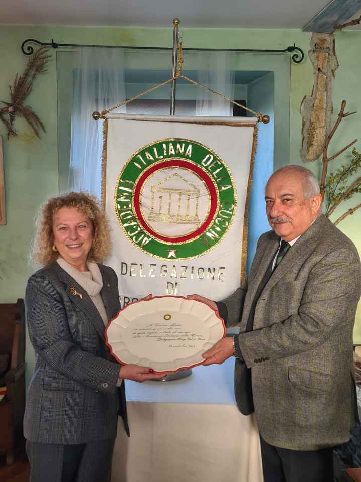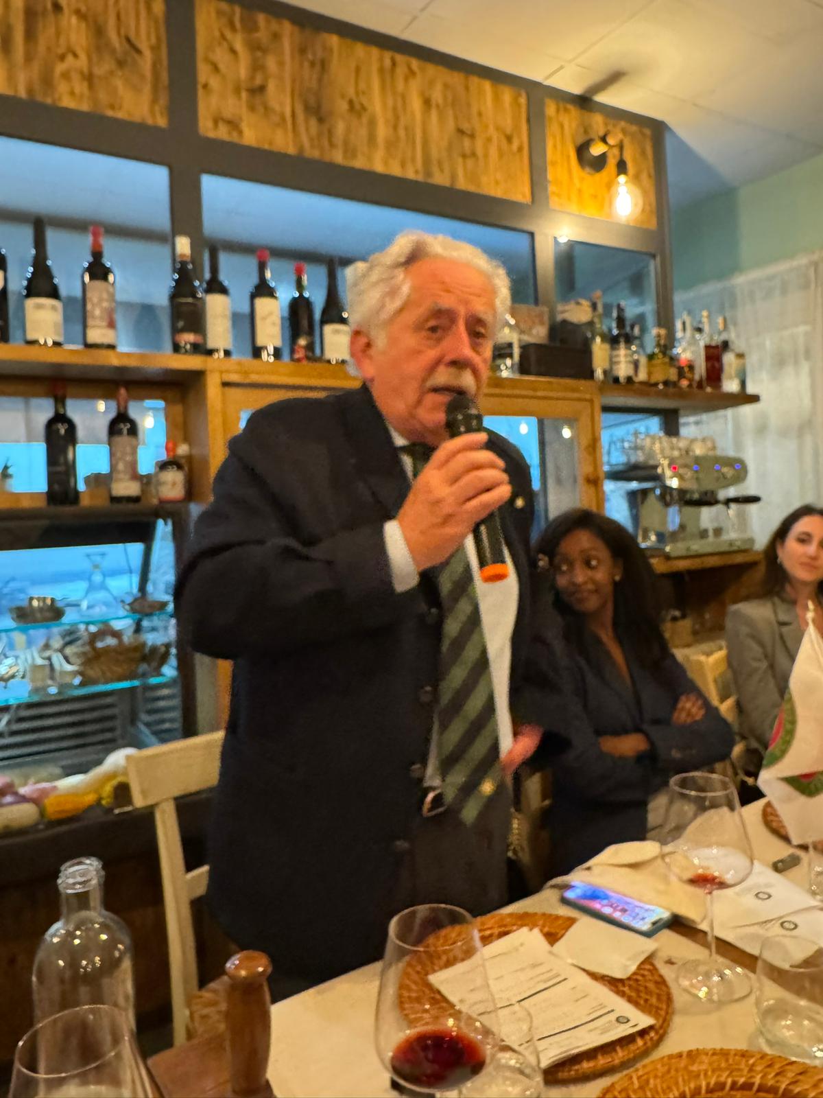 La riunione conviviale di novembre si è svolta alla “Locanda Toscana” nel cuore di Valletta, con un menu tipico dell’omonima regione e materie prime italiane di grande qualità. Il ristorante è gestito da Giulia e Andrea Gentili: lei ai fornelli, lui in sala a raccontare storie sui piatti. Mentre viene servito il tagliere, Andrea parla di una cucina povera ma “degna della tavola di un re”, come la pappa al pomodoro, nata per recuperare il pane “sciocco” citato da Dante. Racconta dei salumi della Val d’Orcia, della cinta senese, del pecorino di Pienza prodotto da pecore sarde che pascolano su terreni argillosi. Con i pici fatti a mano e la cacio e pepe nel cestino di parmigiano ha riportato i presenti ai tempi degli etruschi, mentre il cinghiale alla maremmana richiamava antiche scene di caccia. Presente l’ambasciatrice S.E. Valentina Setta, che ha apprezzato lo spirito della serata, animata dall’ironico intermezzo dell’Accademico Giovanni Costantino, ispirato a “Toscano per caso” di Giammaria Vassallo. La serata si è chiusa sulle note di “Volare”, suonate al violino da Snizhana Lityahina, con un sentito grazie a Giulia e Andrea per l’accoglienza.
