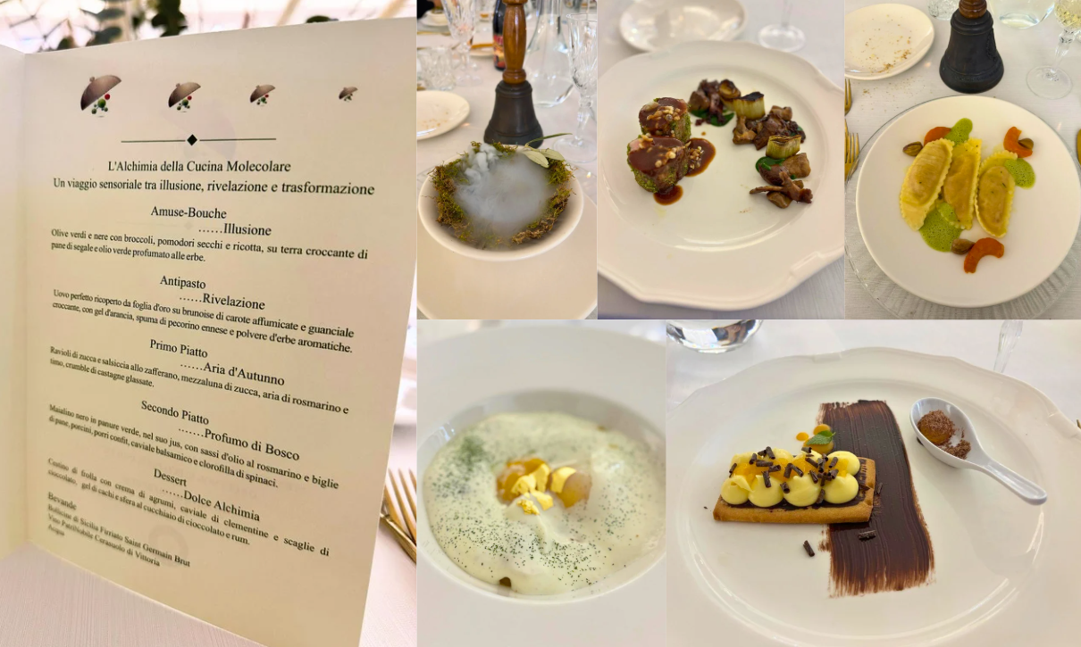 Si è svolta al Ristorante Garden di Pergusa la riunione conviviale intitolata “Tradizione e innovazione: l’Alchimia della cucina molecolare”. L’incontro ha proposto un percorso sensoriale che ha messo a confronto storia gastronomica, scienza e pratiche contemporanee, valorizzando la cucina locale e la ricerca applicata alla tavola. A introdurre la serata è stata la Simposiarca Maria Rosa Platino, che ha ricordato come la cucina molecolare non sia una rottura con la tradizione, ma uno strumento per rinnovarla. La relazione ha illustrato i principi della gastronomia molecolare, spiegando come lo studio delle trasformazioni fisico-chimiche degli alimenti offra nuove possibilità espressive senza negare il valore delle radici culinarie. Il menu, ideato e realizzato dagli chef Angelo Di Dio, Sebastiano D’Urso e Angelo Laurino, ha accompagnato gli ospiti in un viaggio tra illusioni e rivelazioni gustative (amuse-bouche, antipasto con uovo in foglia d’oro, ravioli di zucca e salsiccia allo zafferano, maialino nero in panure verde e dessert “Dolce Alchimia”), abbinato a bollicine Firriato Saint Germain Brut e vino PatriNobile Cerasuolo di Vittoria. La serata è stata moderata e presentata dalla Delegata di Enna, Marina Taglialavore, e si è conclusa con i ringraziamenti agli chef e alla famiglia Di Serio, titolare della struttura.