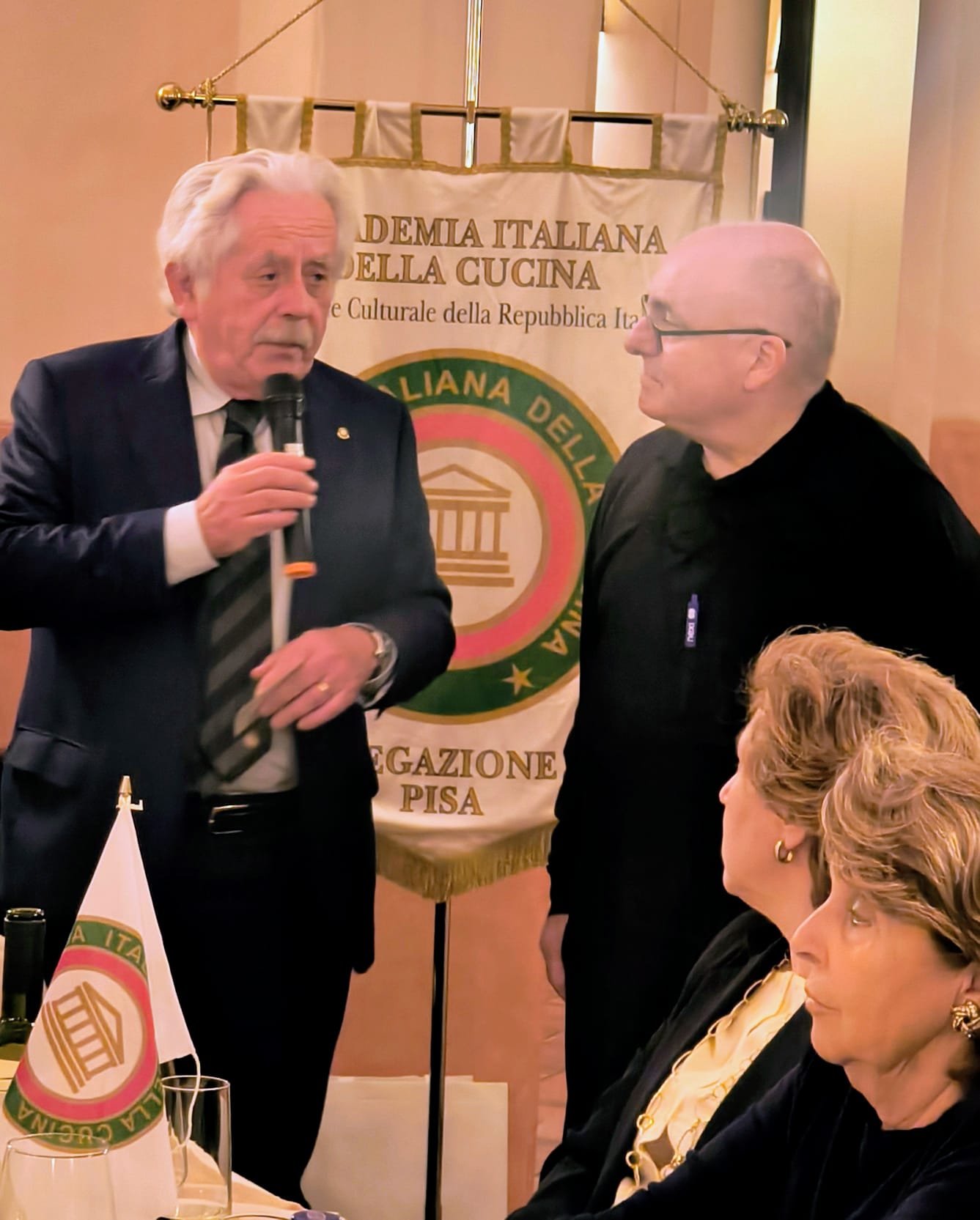 La Cena Ecumenica, magistralmente organizzata dal Simposiarca Ernesto d’Amico presso il ristorante Cantina Battisti di Vago di Lavagno, si è svolta in un clima di grande convivialità e partecipazione. La sua relazione, dedicata al tema dell’anno, è stata condotta con notevole capacità espressiva, coinvolgendo l’intera Delegazione con conoscenza, autorevolezza e simpatia. La serata è stata ulteriormente impreziosita dalla cerimonia di consegna delle insegne accademiche al nuovo Accademico Tony Pagone. Un caloroso e prolungato applauso lo ha accolto, testimoniandogli fin da subito l’affetto e la stima di tutti i presenti. Uno straordinario carrello fumante di bolliti e arrosti, accompagnato dalla amata salsa Pearà, ha coronato una serata davvero gioiosa e gustosissima.