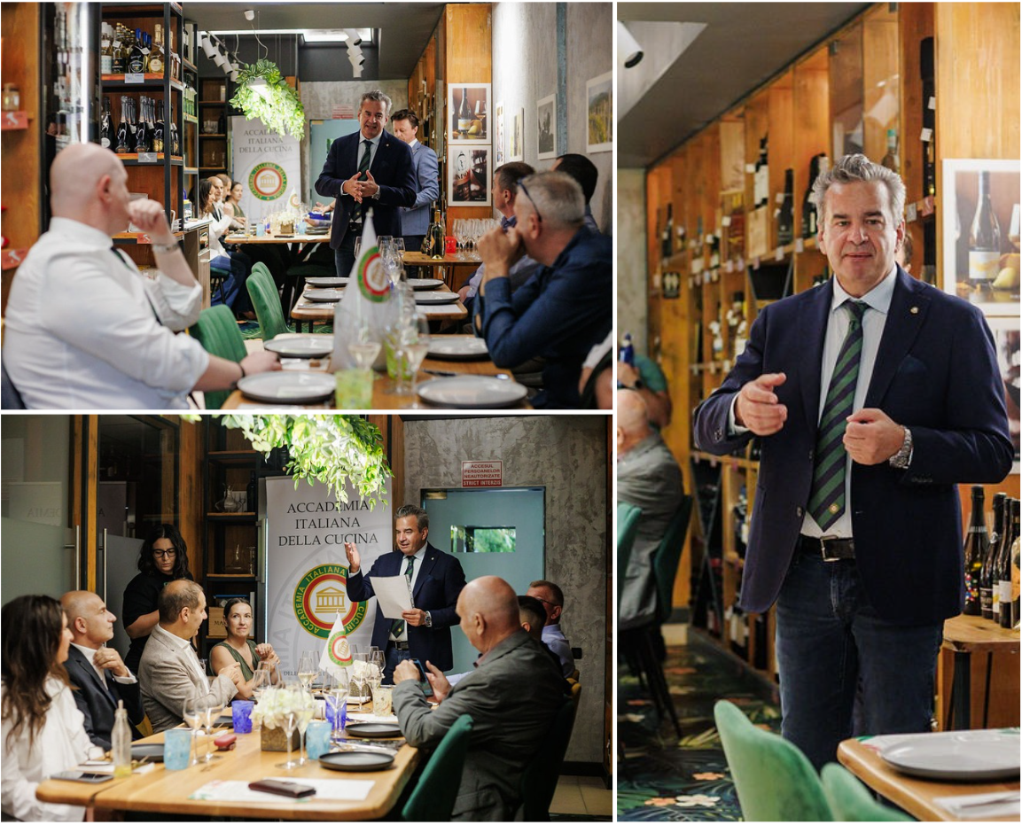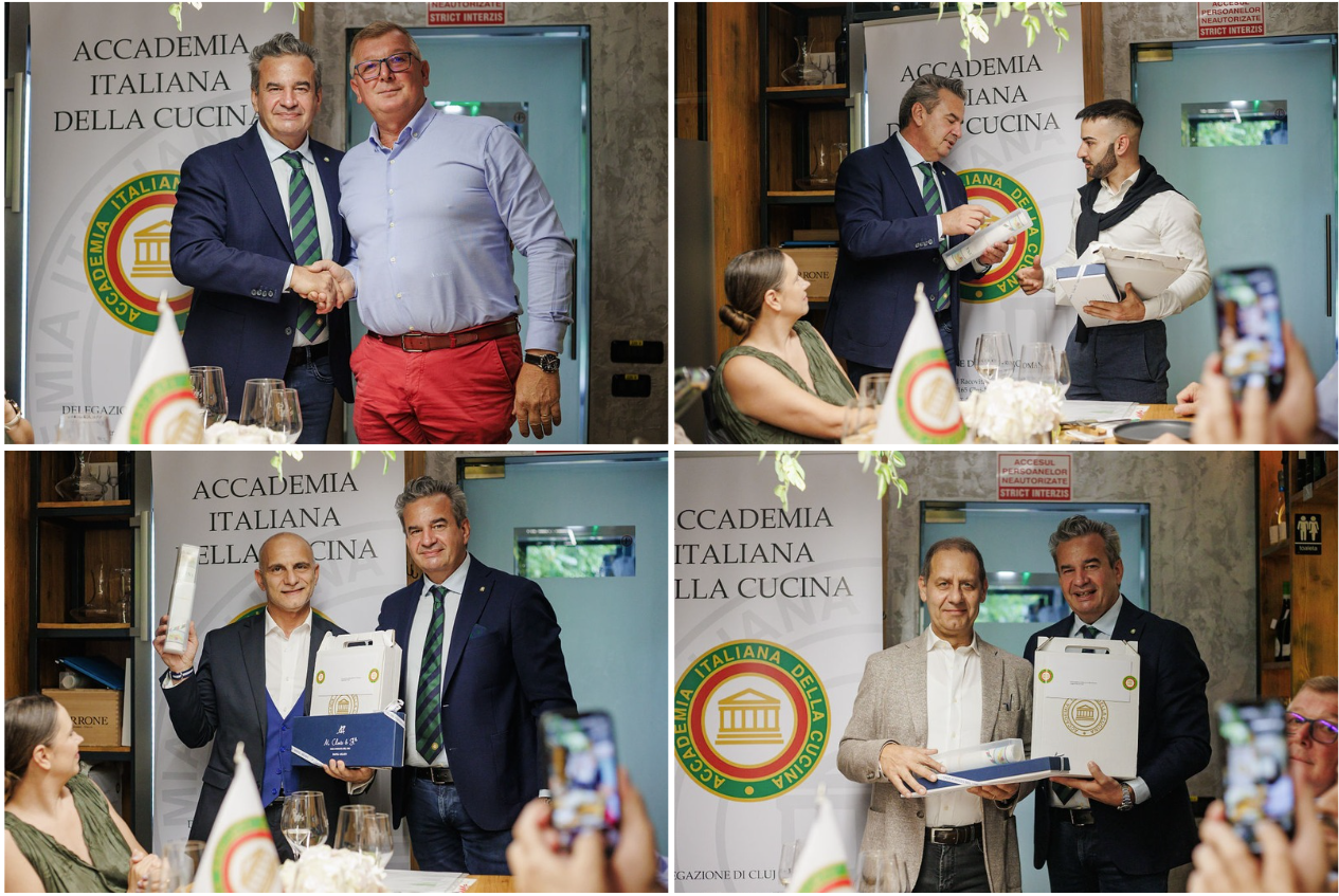 La Legazione di Cluj si è ritrovata al ristorante Bacana Italo’s. Il termine ‘Bacanie’, in lingua romena, ha un significato complesso, indica un luogo dove si cucina, si vendono preparati della nostra gastronomia italiana, si commercializzano i prodotti tipici, ed infine, si effettua il servizio di ristorazione. In effetti, questa gastronomia con ristorante nel suo interno, offre prodotti di eccellenza italiani rigorosamente selezionati dai proprietari Italo e Diana. Il ristorante, composto da pochi tavoli per circa 30 commensali, è circondato da scaffali ricolmi di prodotti freschi importati settimanalmente da tutt’Italia. L’antipasto, una tartare di branzino servita su un letto di crema di piselli verdi, arancia e menta, accompagnato da uno spumante metodo classico DOCG, ha aperto la cena in maniera sublime. I tagliolini freschi, con salsa di pomodorini e tartare di gamberi freschi di Mazzara del Vallo, servita con un Sauvignon Zorzettig friulano ha deliziato i palati dei più esigenti. Il tonno fresco perfettamente cotto con crosta esterna e quasi crudo nella parte centrale accompagnato da una salsa di pomodorini gialli , abbinato con insalatina di finocchio ed un vino rosso (scelta azzardata per molti, ma ben riuscita) pinot noir cantina di Peter Zemmer, ha avuto i massimai voti. Il dolce servito, una cheescake al limone abbinata ad una malvasia della cantina Giorgi DOCG, ha completato un’ottima cena. Ambiente raffinato, servizio attento e curato, camerieri pronti e professionali, fanno di questo ristorante nella capitale della Transilvania, Cluj Napoca, un punto di riferimento.