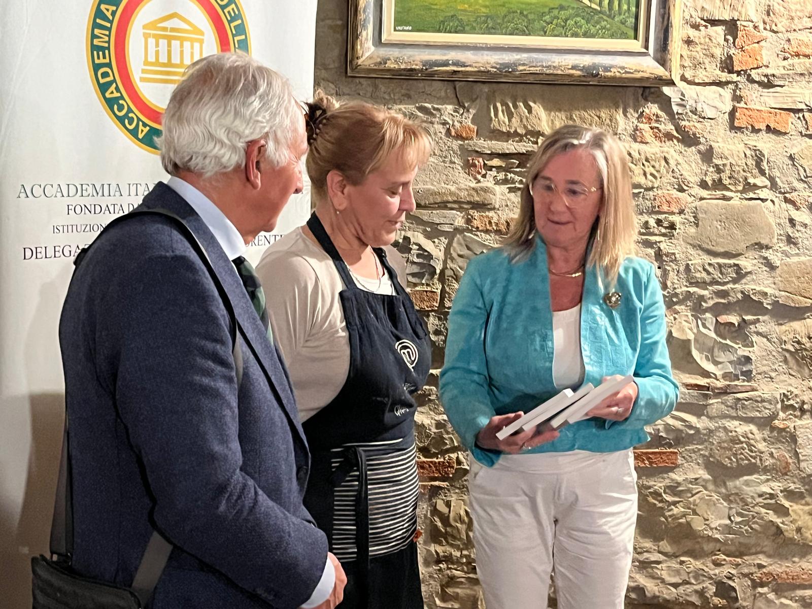 "Storie di Cucine tra la Val d’Illasi e Valtramigna”: un’opera della scrittrice Daniela Noli, una sapiente ricerca storico, sociale, ambientale e umana. La presentazione del libro, apprezzatissima dagli Accademici, dona un quadro di vita vissuta nella lotta quotidiana alla penuria dei mezzi alimentari. Pubblicazione impreziosita dalle immagini pittoriche di alto livello artistico di Mariano Dal Forno. Oltre ai due sopracitati, erano presenti i Delegati Isabella Jone Beretta (Bolzano) e Germano Berteotti (Rovereto e del Garda Trentino), il Sindaco di Colognola ai Colli Giovanna Piubello ed il maestro d’arte orafa Zucchetta Alberto. Sede dell’incontro il ristorante Al Donzellino, espressione di forte legame al territorio e di tutela delle tradizioni locali. Un plauso per la perfetta regia e organizzazione alla Simposiarca Linda Ratti.