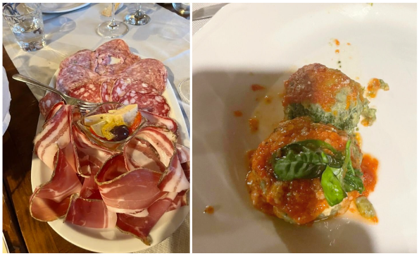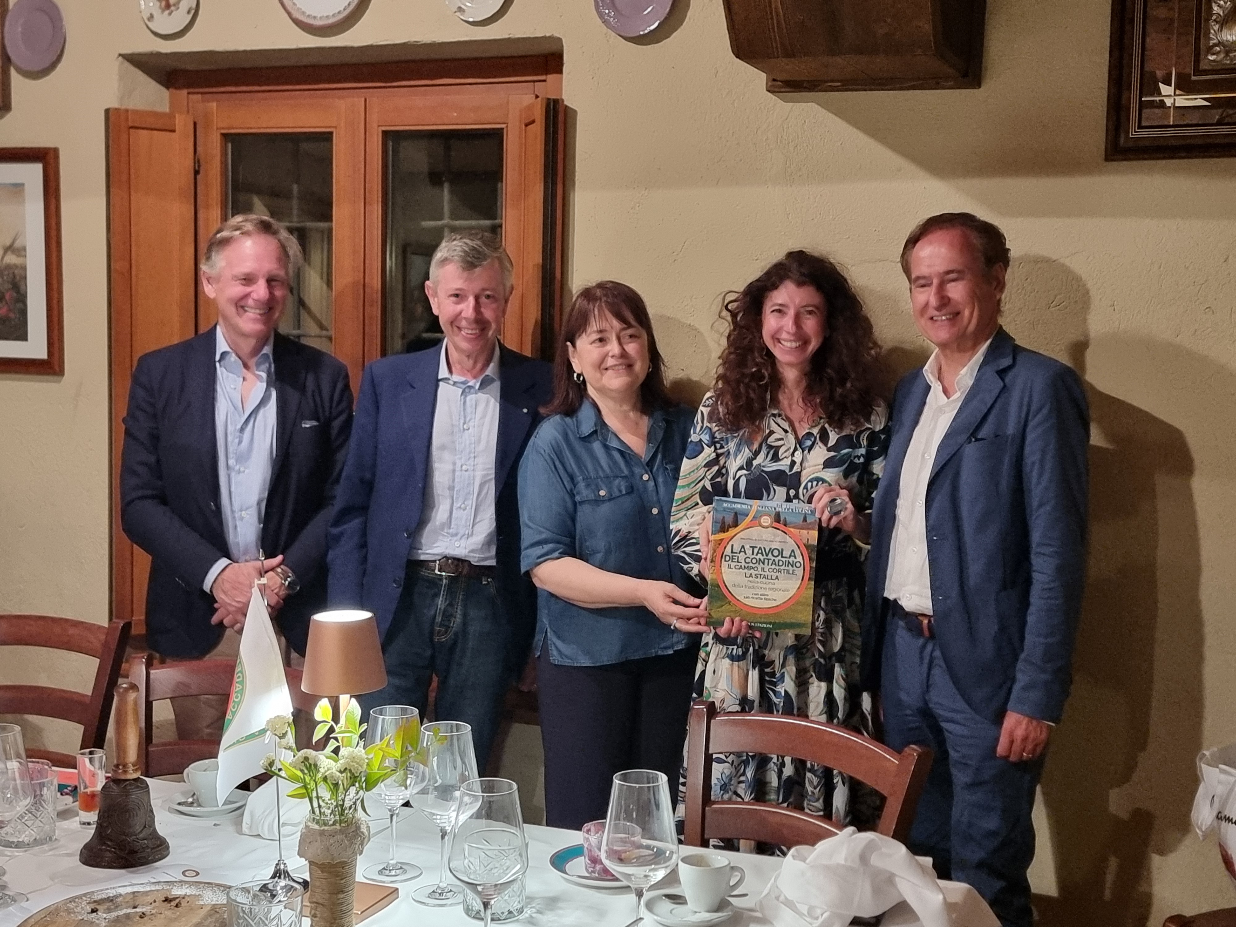 Riunione conviviale al ristorante Casavecchia, posto all’interno dell’omonimo agriturismo che sorge fra il Valdarno e il Chianti Classico, immerso nelle colline della cosiddetta Conca d’Oro, caratterizzata da un eccellente olio extravergine biologico (da olivi di tipo leccino e frantoiano) e da vini pregiati prodotti dalla azienda agricola interna all’agriturismo stesso, oltre a verdure, frutta e uova fresche. La struttura che dà vita all’attività nasce intorno al 1400 come casale di un’antica famiglia contadina, negli anni ristrutturato e reso fruibile ai clienti. La Delegazione è stata accolta dal titolare Mario Lepri in un ambiente riservato del ristorante che si presenta in un’atmosfera rustica e accogliente. La cucina è basata su ingredienti freschi e di alta qualità, con un’attenzione particolare alle produzioni locali. Durante la serata la Vice Delegata Roberta Ceppatelli e il Simposiarca Mario Morganti (foto 1) hanno illustrato con dovizia di particolari i cibi presentati, la loro origine e alcune curiosità della cucina, gestita dalla cuoca Raffaella Billi. I piatti, tipici della tradizione toscana: antipasto della casa, gnudi gratinati al forno, tagliatelle con sugo di cinghiale, arrosto girato classico, bistecca alla fiorentina, patate arrosto, insalata mista e fagioli conditi, torta di mele con gelato alla crema (foto 2 e 3). Tutto il menù ha avuto un ottimo apprezzamento da parte dei commensali. Al termine della piacevole serata la Vice Delegata e il Simposiarca hanno ringraziato la chef con una collezione di volumi dell’Accademia (foto 4).