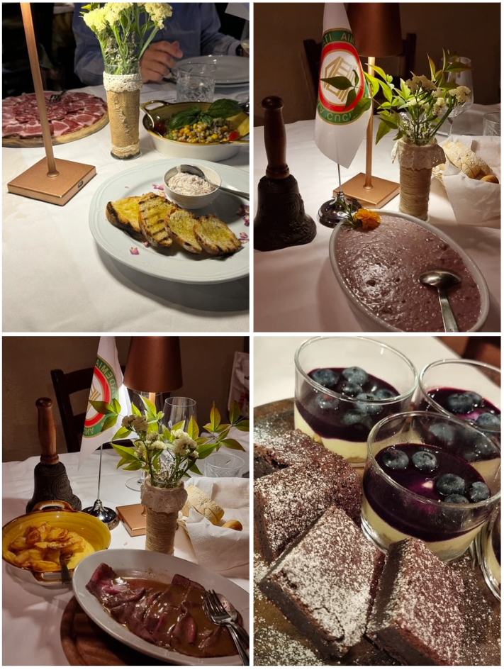 Il consueto convivio di inizio estate si è svolto al Circolo Le Piane di Pratetto, situato nei pascoli sotto le pendici della rinomata Oasi Zegna. Tappa tradizionale durante le escursioni in montagna, il Circolo è stato proposto dall'Accademico Renato Zorio per la sua posizione incantevole e per la scelta di tipici piatti biellesi. La giovane figlia dei gestori, Clara Caneparo, ha preparato dei gustosi antipasti seguiti da un delicato risotto alle verdure di stagione e da un morbidissimo maialino iberico. Un tris di dolci piemontesi ha concluso la cena. La serata è stata allietata dai racconti del Simposiarca Zorio sulla storia del Circolo, da quasi cento anni punto di ristoro per coloro che si avventurano ai pascoli. Nel salutare tutti i presenti e nel consegnare alla signora Paola, mamma della chef, un omaggio accademico come ringraziamento, la Delegata Bertotto ha dato appuntamento a settembre con il prossimo convivio.