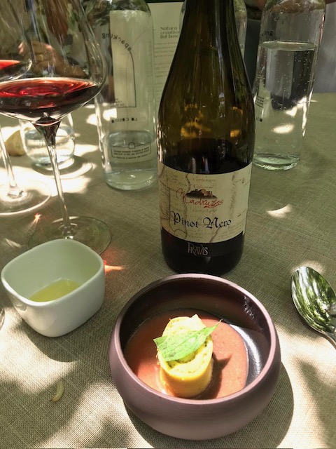 Splendido e molto partecipato pranzo conviviale, prima della pausa estiva, organizzato a Drena (TN) presso il ristorante “La Casina”, con sede presso un antico maso, sotto i tralci vitati ed attorniati dai castagneti, in un clima di vera ed allegra amicizia. Ospiti il Sindaco del Comune di Dro e Presidente della Comunità di Valle Alto Garda e Ledro Claudio Mimiola, l’Assessore del Comune di Drena Gabriella Pedrotti ed il Presidente dell’Azienda per il Turismo Garda Dolomiti SpA Silvio Rigatti (foto 1, con il Delegato ed il Simposiarca Filippo Tranquillini al brindisi finale e, foto 2, a tavola). Fra le pietanze servite, tutte molto apprezzate, una menzione speciale ha meritato la girella farcita con ricotta ed agretti, su gazpacho di pomodoro, erbe di campo e lamponi, accompagnata da un ottimo Pinot Nero della Cantina Pravis (foto 3). Al termine, un sentito ringraziamento da parte di tutti alla chef e titolare del ristorante Giada Miori (foto 4).
