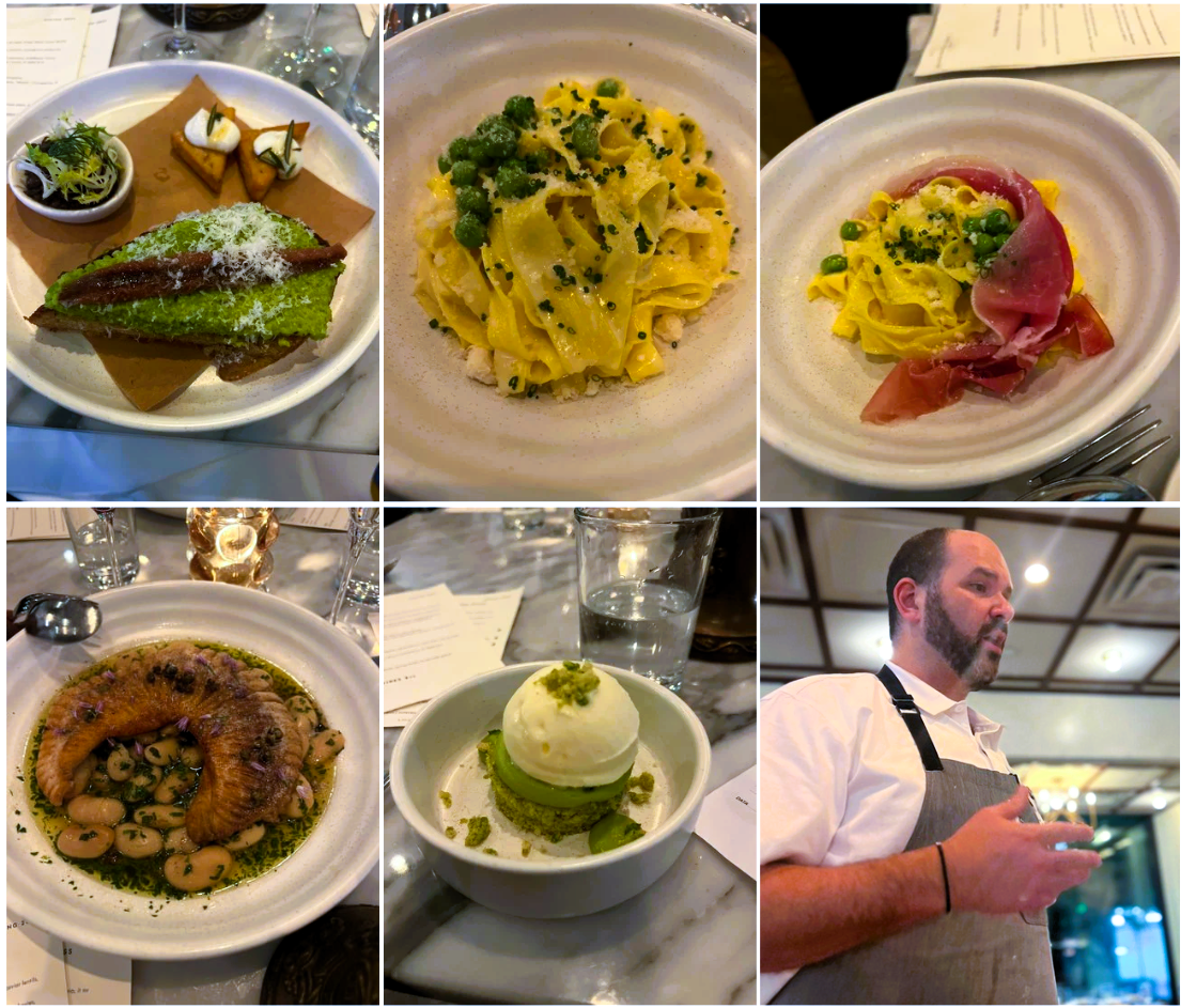 Incontro conviviale della Delegazione al ristorante Aventino. Locale elegante, atmosfera di classe, decor moderno ed art deco. Lo chef Mike Friedman è proprietario di 5 ristoranti in città, incluse due pizzerie (di cui una adiacente il ristorante visitato). L'antipasto è stato l'highlight della cena, molto gustoso, ben presentato, le tagliatelle hanno soddisfatto meno; il secondo, l'arzilla molto gustosa, i fagioli di accompagnamento buoni e freschi con qualche incertezza sull’eccesso di burro. La torta di piselli, decisamente originale, buona perché la dolcezza dei piselli si calibrava bene con il gelato. Lo chef estremamente disponibile e gentile.