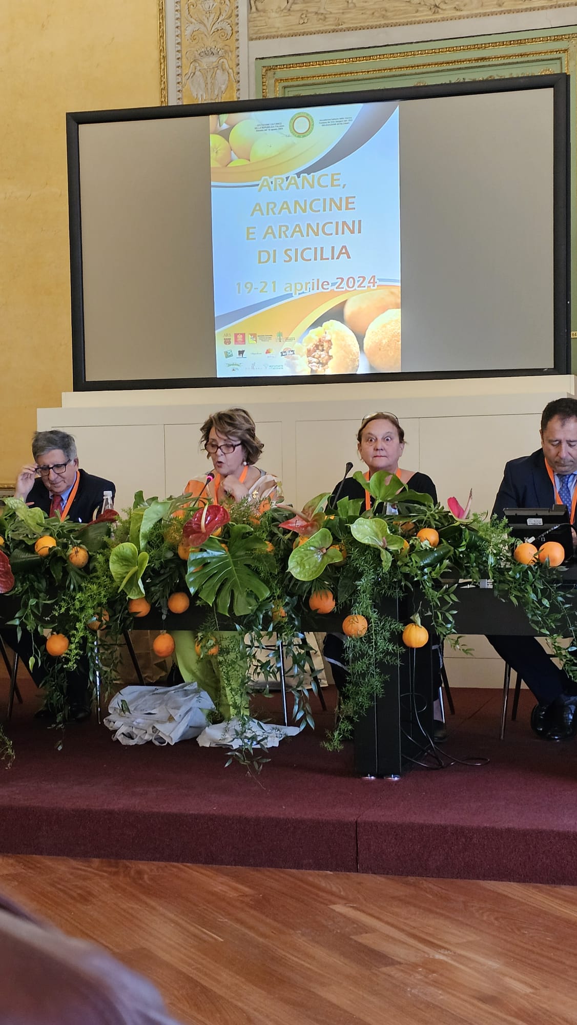 Dal 19 al 21 aprile si è tenuta la tre giorni organizzata dalla Delegazione di Palermo sul tema "Arance, arancine ed arancini di Sicilia". Si è partiti dalla visita alla collezione agrumaria dell’Orto botanico ai momenti conviviali al ristorante del Teatro Massimo e dell’Hotel Borsa. Clou dell’evento, il convegno, nella sontuosa sala “Mattarella” di Palazzo dei Normanni con circa 200 interessatissimi partecipanti. Ha aperto la Delegata Daniela Nifosì con i saluti e i ringraziamenti di rito, introducendo per i saluti istituzionali Gigi Cusimano, direttore del Centro Studi per la Sicilia occidentale e Rosetta Cartella, componente della Consulta Nazionale. Sono seguiti poi gli interventi degli esperti relatori, coordinati dall’Accademica Roberta Messina. L’attenta platea non ha potuto esimersi da domande, piccoli interventi, precisazioni in un simpatico dialogo con tutti i relatori. Cena di gala all’hotel Borsa, dove la convivialità tra i Delegati siciliani e i provenienti da varie regioni d’Italia ha dato vita a nuove amicizie e scambi di idee. La domenica, pranzo leggero e tipico da Gigi Mangia. Una degna conclusione di una tre giorni memorabile.