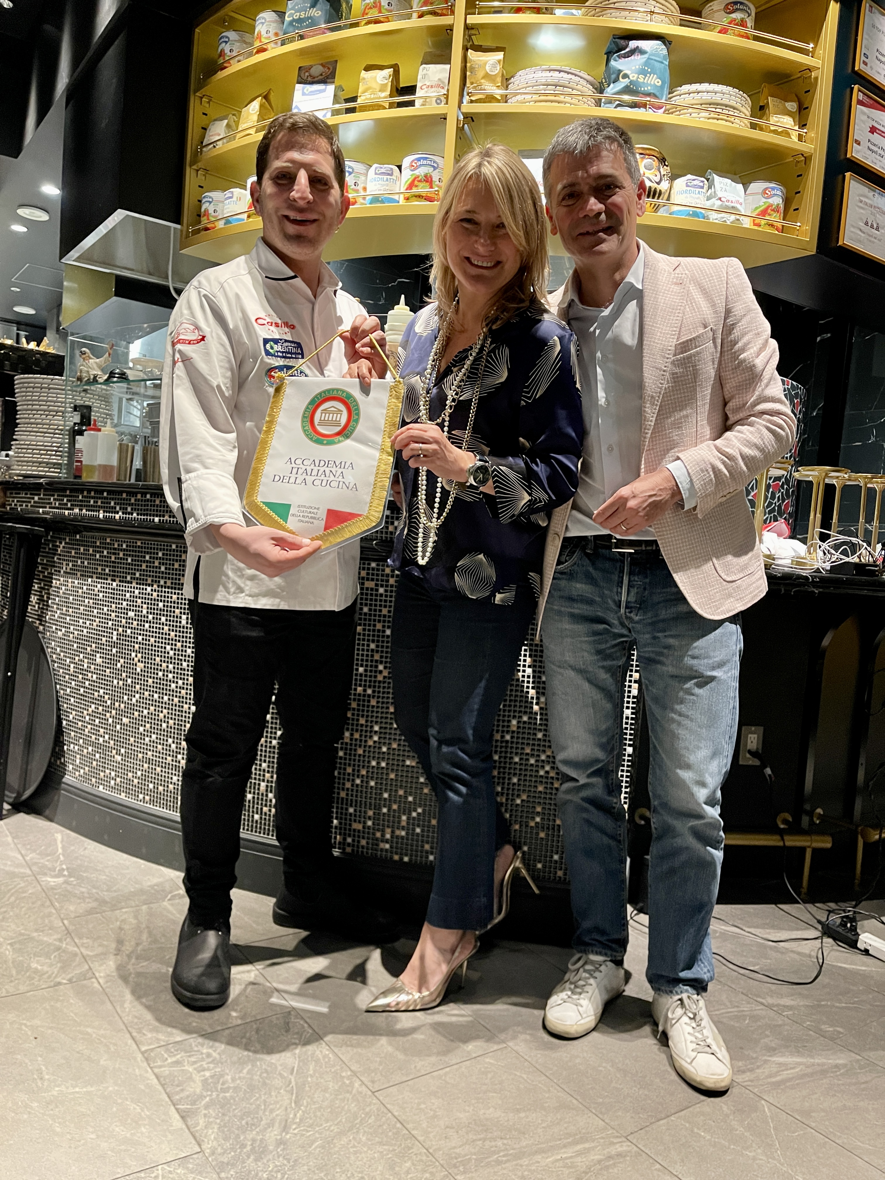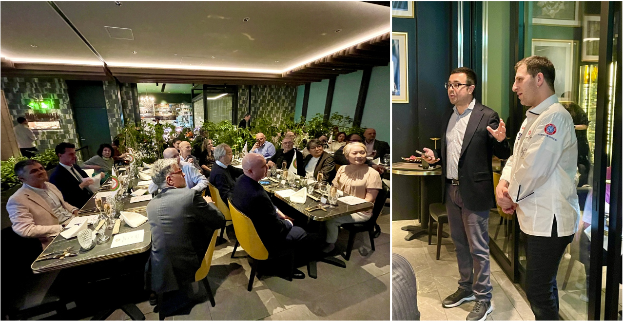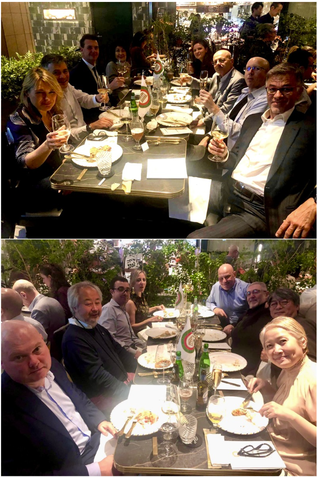 Esiste qualcosa di più “classico” di una pizza e birra con amici nel fine settimana? Solo che questa volta la Legazione di Tokyo, sotto la guida del Simposiarca Matteo Belfiore, si è riunita nel nuovo ristorante di un pizzaiolo di vecchia conoscenza che ha avuto un’idea innovativa. Parliamo di Giuseppe Errichiello e del suo Ristopizza all’interno del nuovo e prestigioso complesso di Azabudai Hills. Un impasto tecnicamente impeccabile, toppings accuratamente studiati e tanta fantasia partenopea. La marinara sbagliata, la pizza psichedelica e poi la margherita in Giappone, il futuro della salsiccia e friarielli, la margherita revolution, per finire in dolcezza con la pizza ricci di mare e fragole che ha davvero sorpreso i presenti. Ma tutto questo non ha scalzato la pizza Margherita che è stato il primo assaggio: buona, rassicurante, come una mamma che ha condotto per mano gli Accademici a provare tutto il resto con la certezza di non rimanere delusi e con l’unica raccomandazione di mantenere la mente aperta e di pensare al futuro. Questo il menù degustazione che Giuseppe Errichiello ha proposto ad un entusiasta gruppo di Accademici che si è complimentato anche per l’abbinamento dei vini e delle birre in accompagnamento.