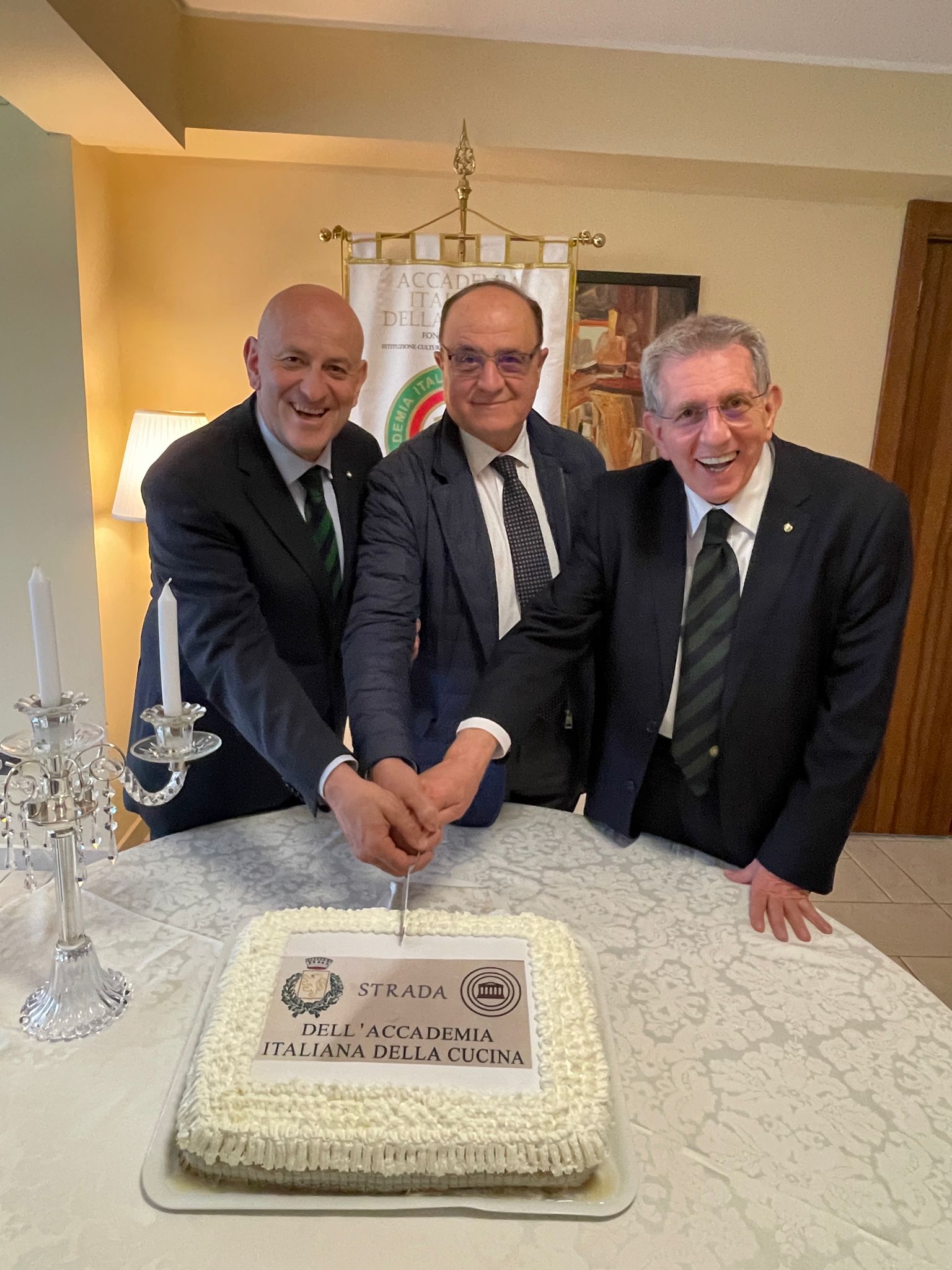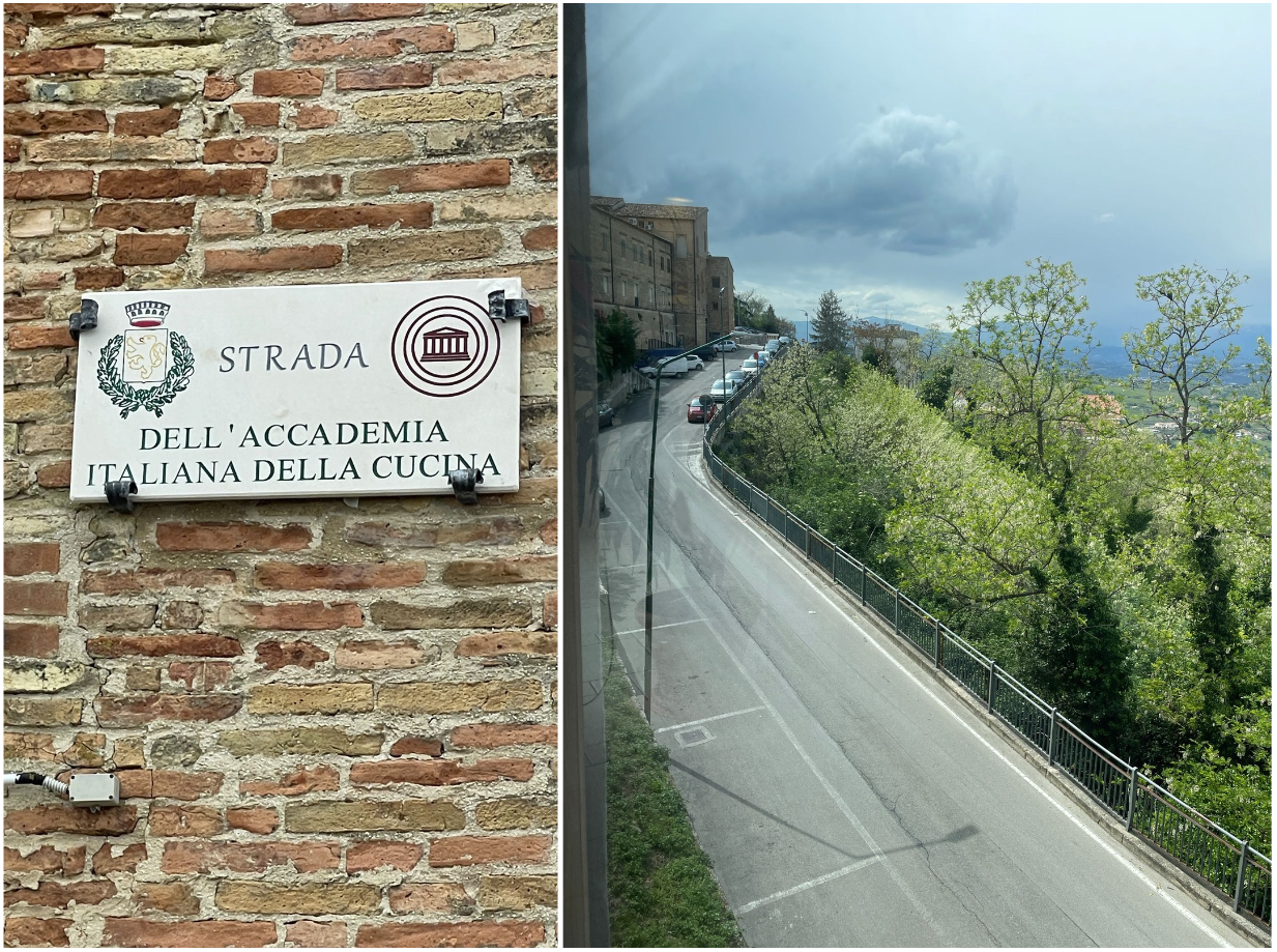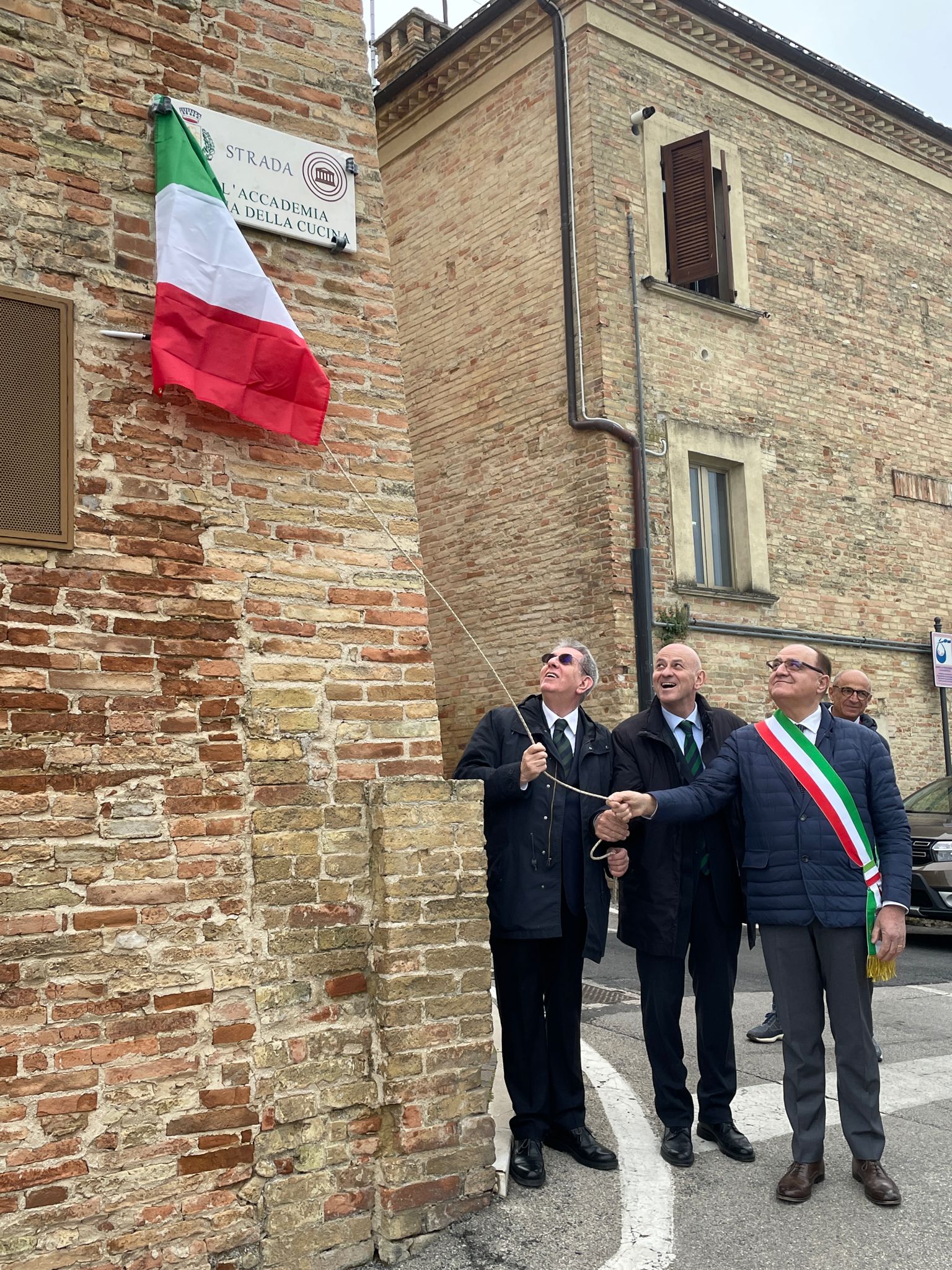Dopo le vie dedicate all’Accademia nei Comuni della provincia di Chieti di Francavilla al Mare (che ha dedicato una via anche ad Orio Vergani) e di Miglianico, dal 20 aprile, la via che costeggia il municipio di Bucchianico e scende fino a ricongiungersi con via Canale - una delle arterie principali del paese natale di San Camillo de Lellis che forma uno splendido belvedere sulla valle dell’Alento - ha assunto la denominazione di “Strada dell’Accademia Italiana della Cucina”, al termine di un lungo iter amministrativo, con il beneplacito del Consiglio comunale e poi della Prefettura di Chieti. All’inaugurazione erano presenti il sindaco, Carlo Tracanna, il vice Presidente vicario dell’Accademia, Mimmo D’Alessio, il Delegato di Chieti nonché Coordinatore Territoriale dell’Abruzzo, Nicola D’Auria, il Direttore del Centro Studi Territoriale, Maurizio Adezio, i rappresentanti delle nove Delegazioni abruzzesi dell’Accademia. Al termine della cerimonia, Accademici e ospiti hanno celebrato l’evento con una speciale riunione conviviale nelle antiche sale del ristorante “Da Silvio”, proprio nel cuore del centro storico, con la vetrata che si affacciava sulla nuova “Strada dell’Accademia Italiana della Cucina”.