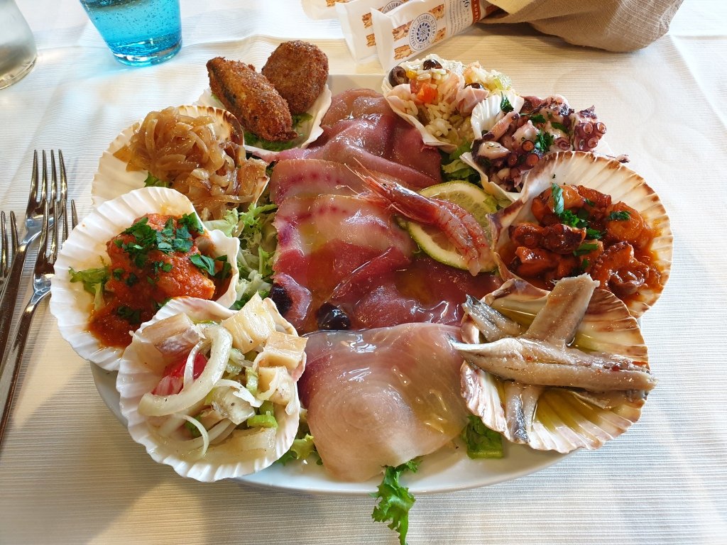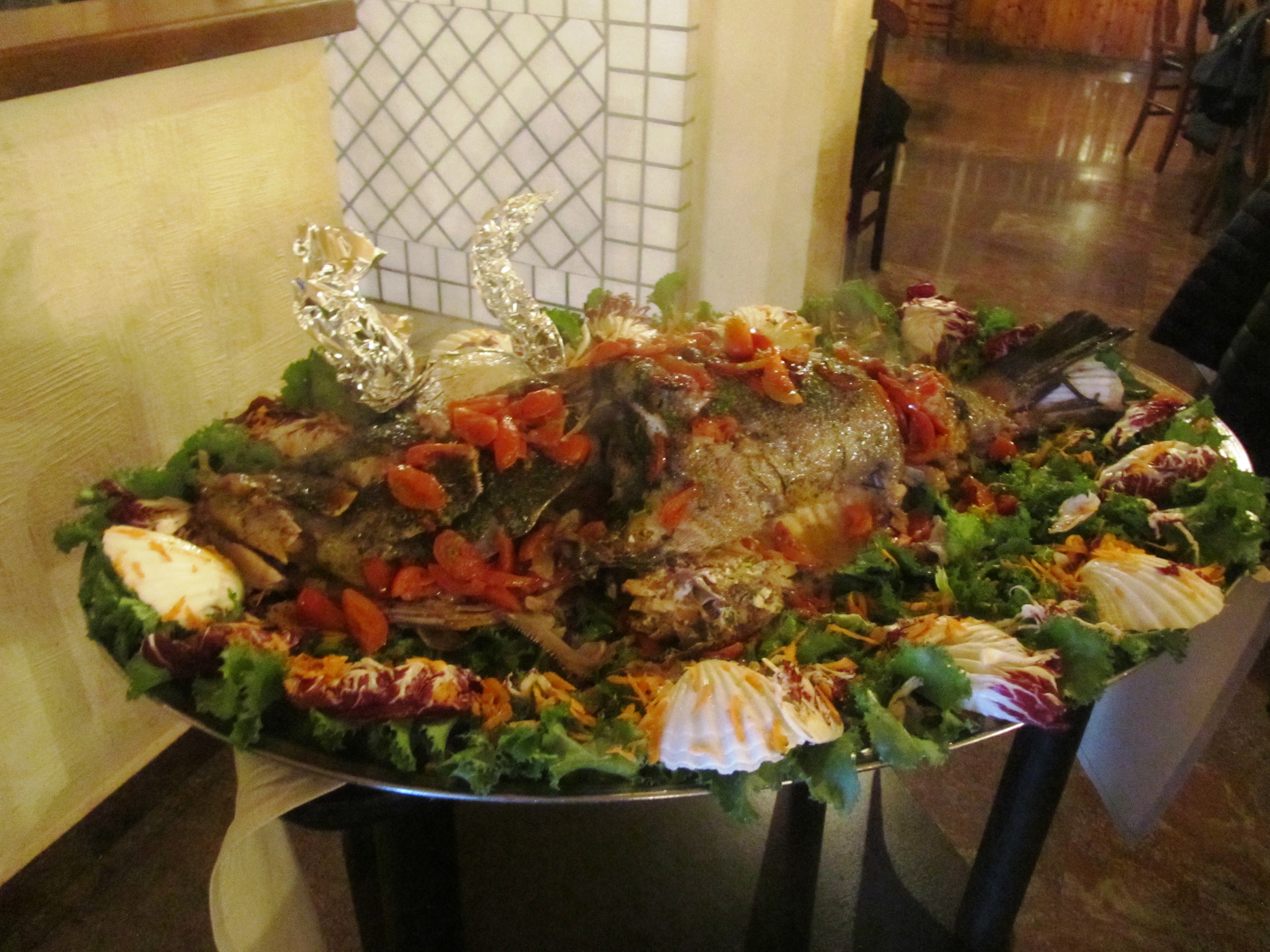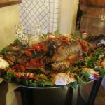 La Delegazione ha visitato La Terrazza, esercizio ormai attivo da molti lustri sulla riva orientale del Lago Grande di Ganzirri, meta ultrasecolare delle gite fuoriporta dei Messinesi. Attorno ai laghi sono attive decine di ristoranti e trattorie, accomunate dalla vocazione alla cucina di mare e dalla cultura della cucina dei mitili (cozze e vongole stabulate nei laghi di acqua salmastra). Il Delegato, anche Simposiarca, ha illustrato ai numerosi Accademici riuniti attorno a un tavolo imperiale con le luci del lago sullo sfondo (foto 1), la filosofia della cucina, che ha servito realmente il pescato del giorno sia nel ricchissimo e variegato antipasto marinato e cucinato (foto 2) sia nell’ottima cernia al cartoccio (foto 3). Cortesia ed efficiente professionalità nel servizio, lealtà nell’offerta reale del pescato del giorno, preparazione espressa di tutti i piatti serviti hanno meritato l’applauso rivolto alla patronne Rossella e alla sua squadra al momento della consegna del guidoncino (foto 4).