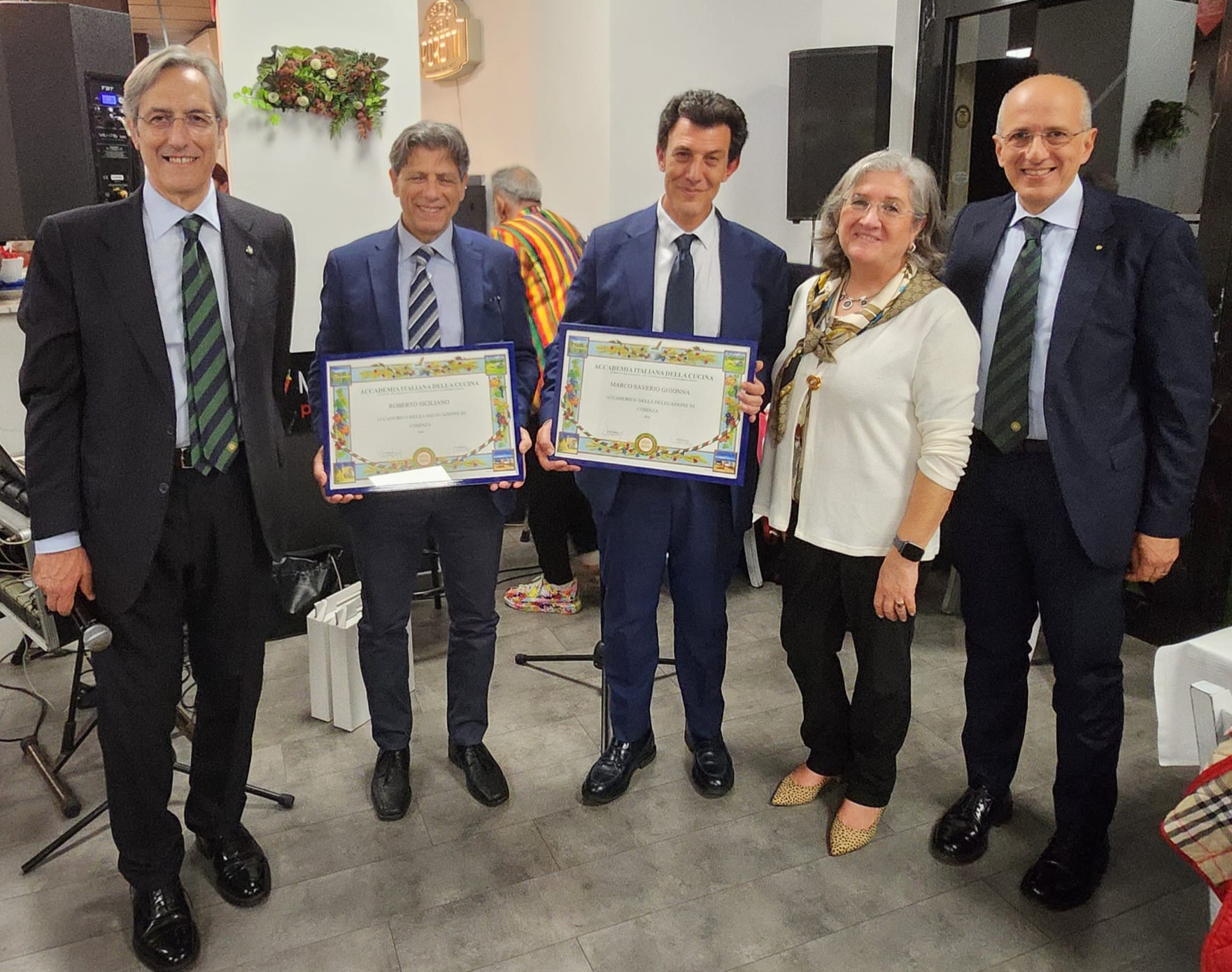 Le origini e le successive evoluzioni della pizza napoletana e gli spumanti metodo classico realizzati da tre cantine della provincia di Cosenza sono stati gli elementi intorno ai quali si è sviluppata la riunione conviviale “Pizza&Bollicine” al ristorante Mammarè. Presente la totalità degli Accademici, il Delegato Rosario Branda ha avuto modo di evidenziare che se le prime tracce del vocabolo “pizza” risultano di poco antecedenti l’anno mille, si deve all’intraprendenza dei napoletani se, a partire dai primi del Novecento, la pizza ha trovato diffusione pressoché universale diventando una delle bandiere della gastronomia italiana. L'occasione è stata arricchita, oltre che dalla manualità dell’arte realizzativa, dagli aneddoti e dalle curiosità che il "maestro pizzaiolo" Luciano Sorbillo ha avuto modo di testimoniare agli Accademici e ospiti. La circostanza si è impreziosita della partecipazione della Delegata di Benevento Danila Carlucci che, oltre ad intervenire con un contributo molto apprezzato, si è affiancata al Delegato Branda ed al Segretario Rogano in occasione della consegna dei Diplomi ai nuovi Accademici Marco Ghionna e Roberto Siciliano. Particolarmente apprezzata la degustazione di cinque differenti gusti di pizza preceduti da un classico “cuoppo di fritti” e da uno spicchio di “montanarina” realizzata in doppia cottura. Il tutto a cura del maestro Sorbillo che ha, tra le altre, proposto una dedica al papà Rodolfo che per primo ha realizzato la pizza con il cornicione ripieno di ricotta. Particolarmente riusciti gli abbinamenti con i 5 spumanti metodo classico selezionati dal sommelier Tommaso Caporale.