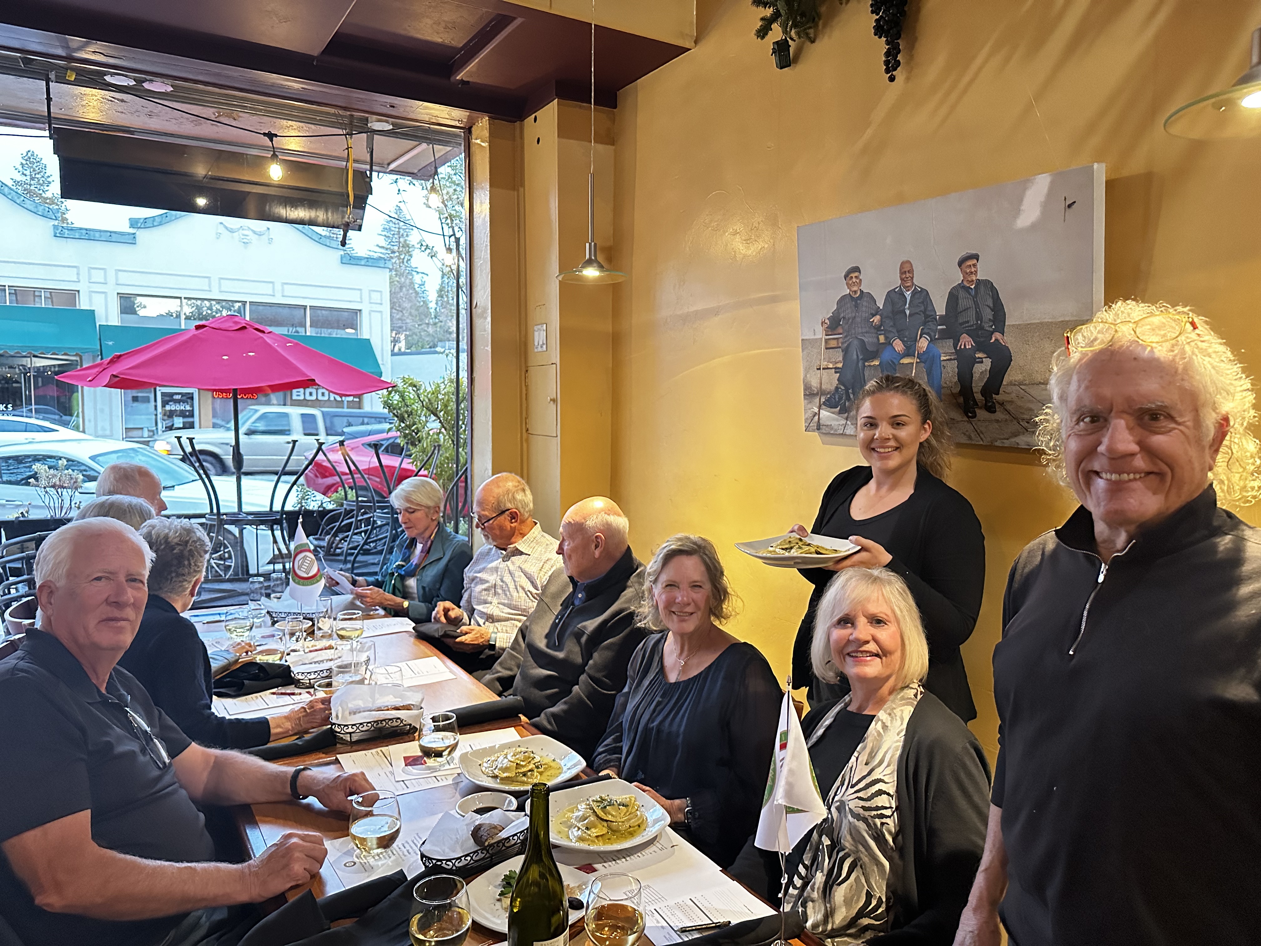 La neo costituita Legazione di Sacramento si è ritrovata per la prima riunione conviviale organizzata ad Auburn alla Trattoria Tre Pazzi. In un clima di amichevole convivialità si è tenuto questo primo appuntamento, molto apprezzato dai presenti, presso il locale dello chef Gary Capps. La famiglia di Capps è originaria di Castelsilano, Calabria, dove lo chef si reca frequentemente per studiare e riproporre nuove ricette e per connettersi con le sue radici. La cucina è prevalentemente siciliana e umbra con apporti toscani e bolognesi. La pasta è prodotta localmente e gli ingredienti sempre freschi di giornata. Il vino è tutto italiano. L'origine del nome Tre Pazzi richiama la famiglia Pazzi di Firenze che mise in atto una congiura, poi fallita, per porre fine al dominio dei Medici.