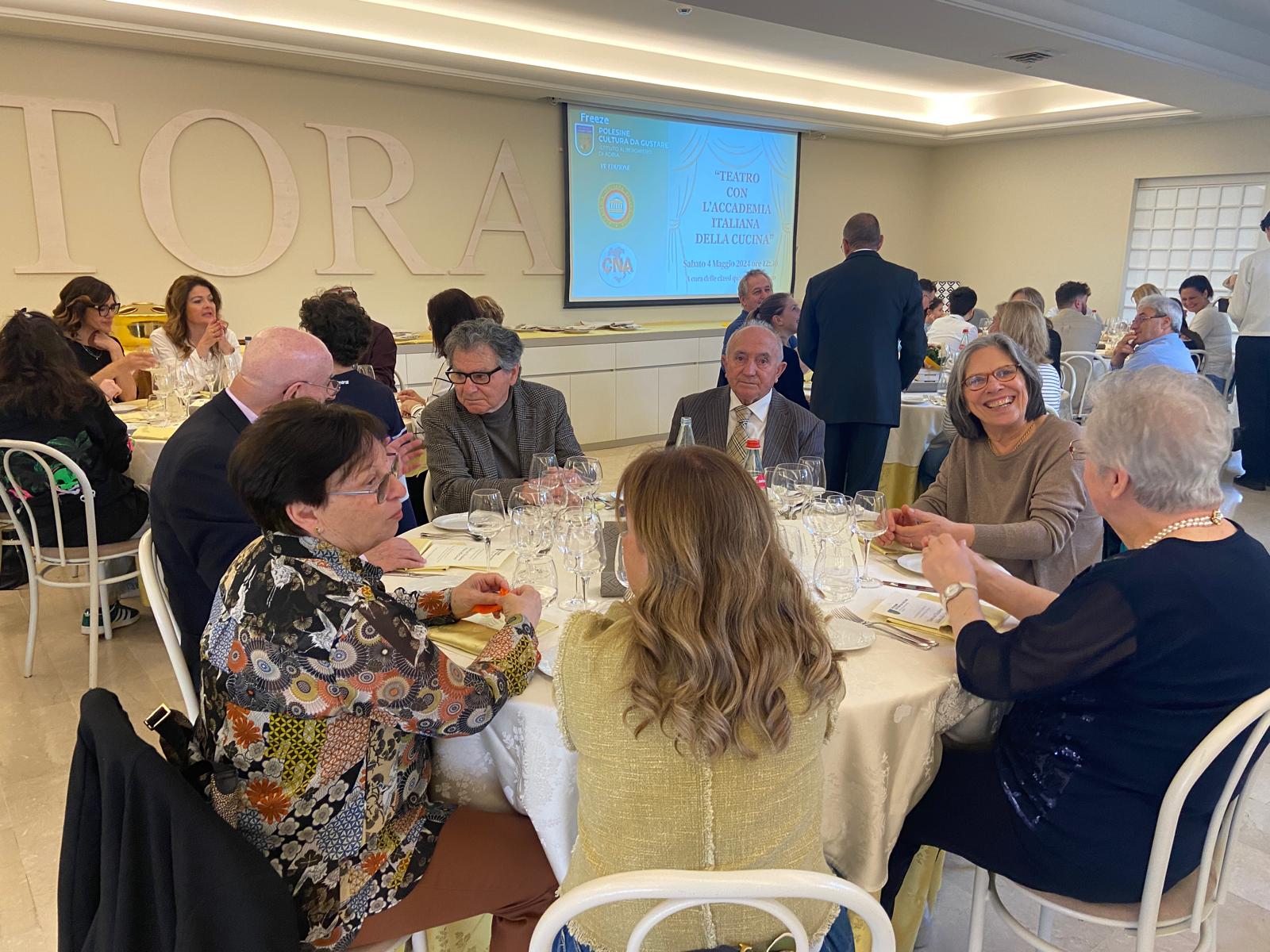 La manifestazione “Polesine cultura da gustare” organizzata dall’ I.P.S.E.O.A. “G. Cipriani” di Adria a cui hanno partecipato circa 130 persone, rappresenta la summa del lavoro dei ragazzi delle quarte classi durante l’anno scolastico ed è stata intitolata quest’anno Teatro con l’Accademia Italiana della Cucina. Teatro in quanto il pranzo è stato immaginato come una rappresentazione teatrale che ogni volta si rinnova, dall’accoglienza degli ospiti alla sala del ristorante, con la regia necessaria per far loro vivere un’esperienza unica e importante, che evochi sapori noti e aiuti a scoprirne di nuovi, tutti ispirati dalla cucina, dai prodotti del territorio e dal tema dell’anno dell’Accademia Italiana della Cucina. Dopo un coreografico e spettacolare buffet iniziale di preparazioni a base dei prodotti tipici del territorio che, attraverso Adria e Rovigo, spazia da Chioggia al veronese, ci si è spostati nell’ampia sala ristorante dell’istituto per il pranzo, preceduto dai saluti della Dirigente Scolastica Lorenza Fogagnolo e del Delegato Giorgio Golfetti. I vari piatti che si sono succeduti, serviti e spiegati ai tavoli con cortesia e precisione dagli alunni, sono stati giudicati, su espressa richiesta della scuola, dagli Accademici presenti con la compilazione della consueta scheda per la valutazione dei ristoranti. Tutti i presenti sono stati comunque d’ accordo nel giudicare col massimo dei voti la qualità del lavoro degli studenti che, ben istruiti dai loro professori, hanno dimostrato passione, cortesia e professionalità sia nell’accoglienza sia nel servizio di sala e cucina.